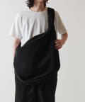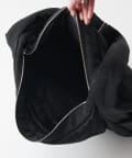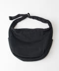 服を身に纏うような、オーバーサイズの三日月型ショルダーバッグ。軽量なアウターを収納できるほど容量です。