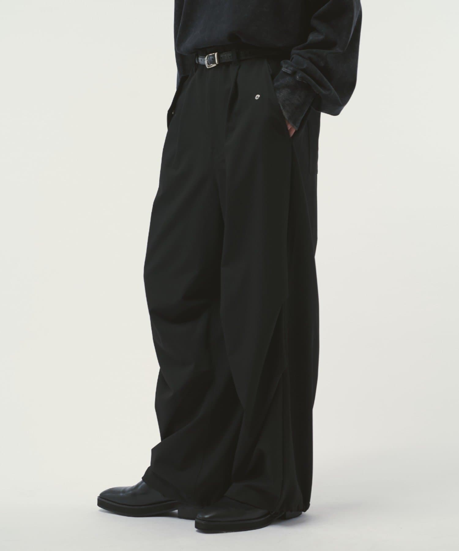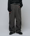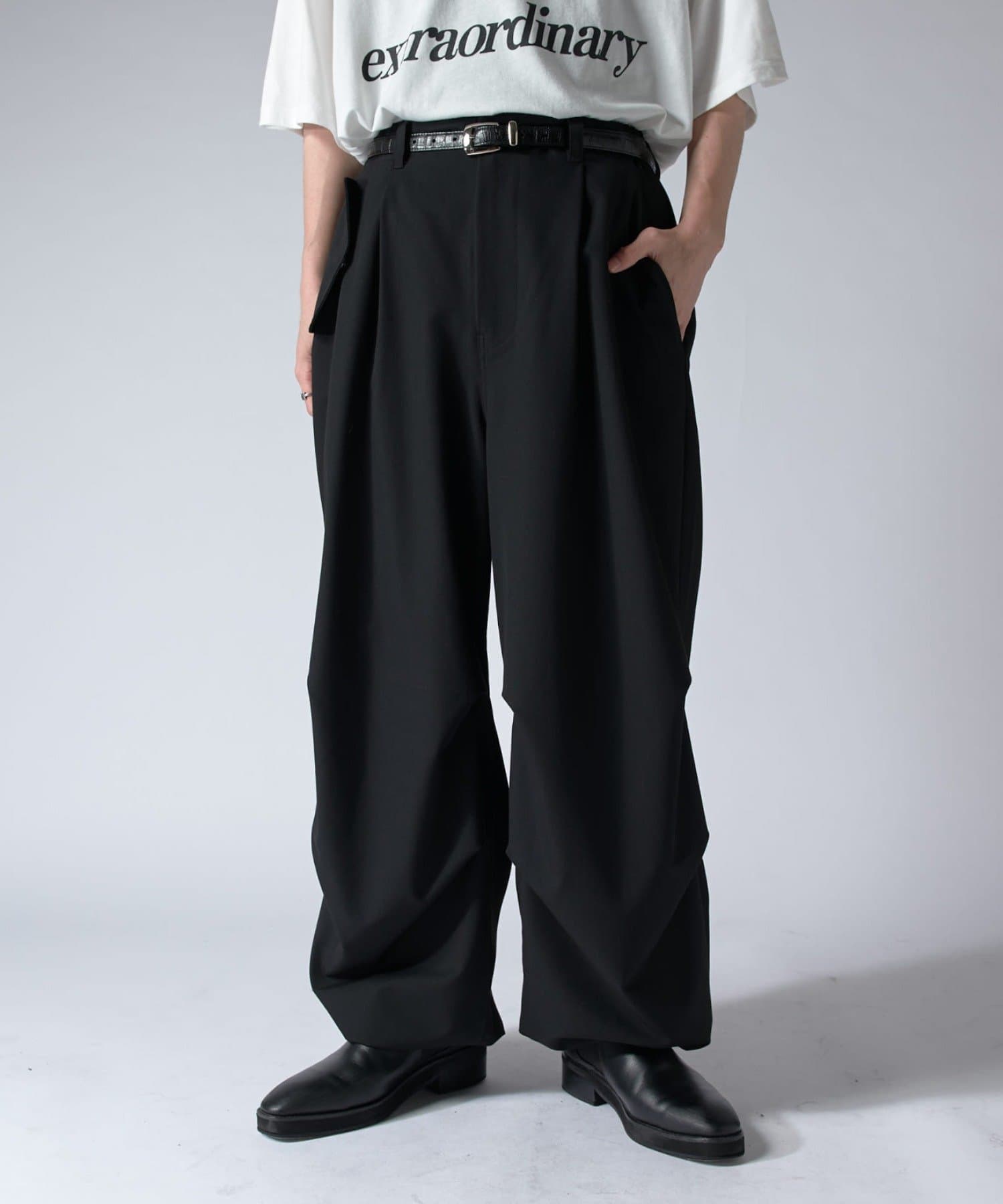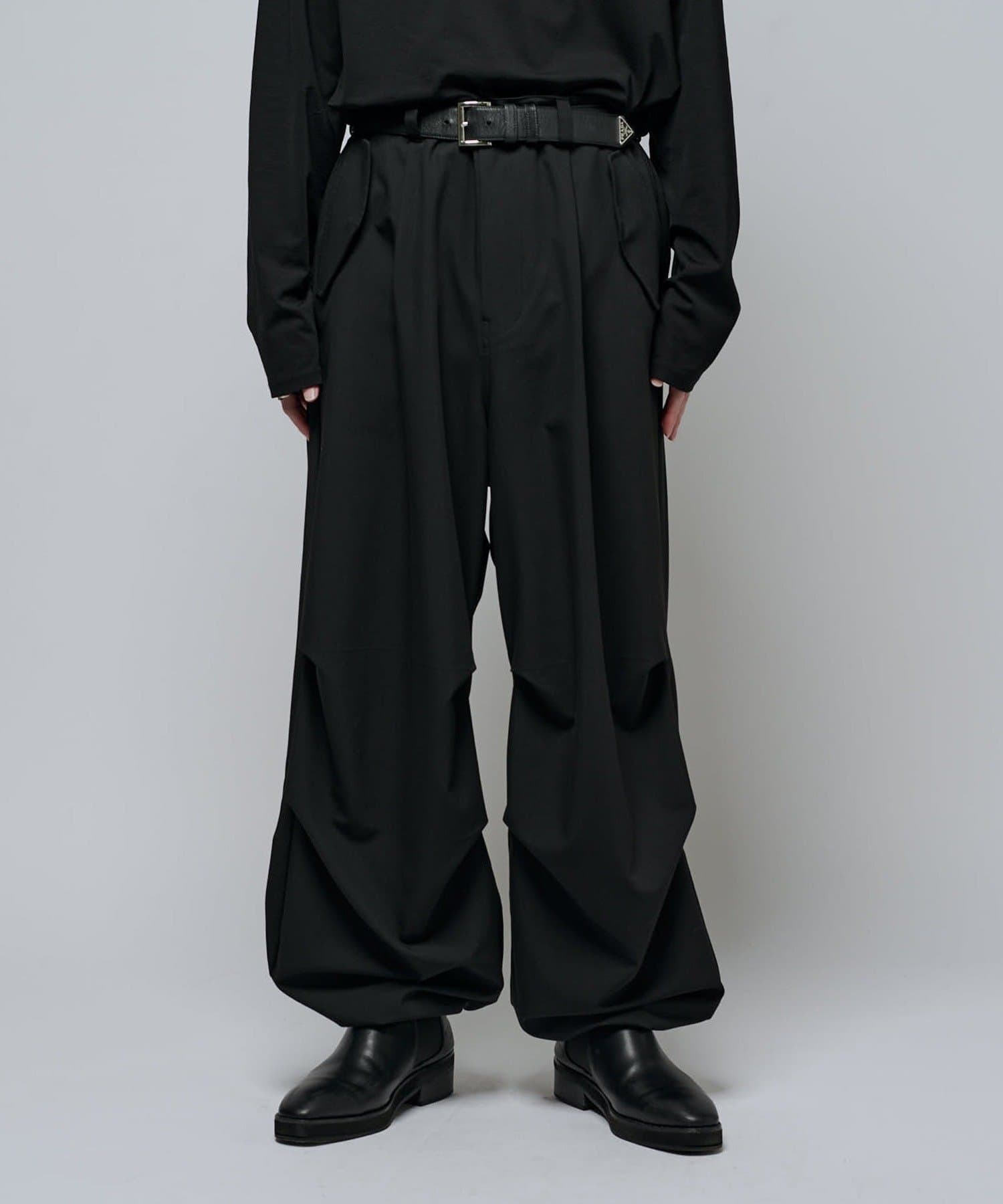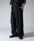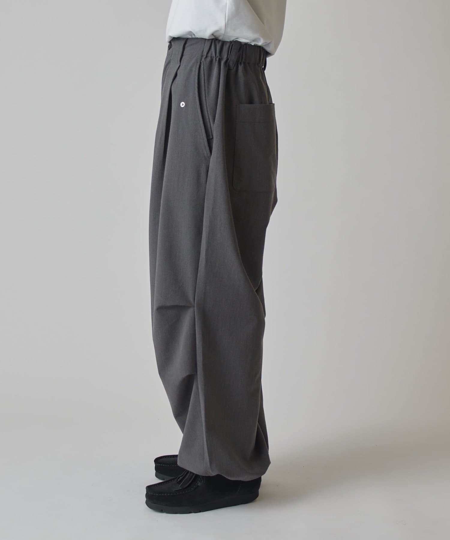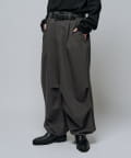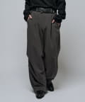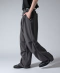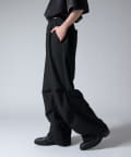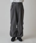 ミリタリーパンツをキレイな素材で表現したこちらのパンツ。ウエストからストンと落ちるワイドシルエット。膝にはタックを施して立体的な見え方に。