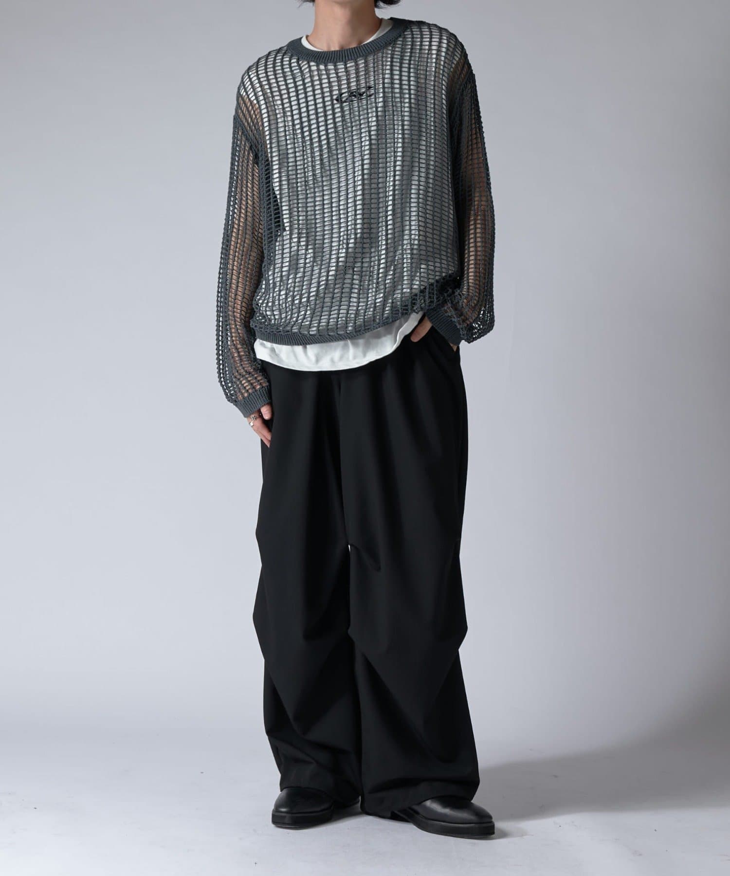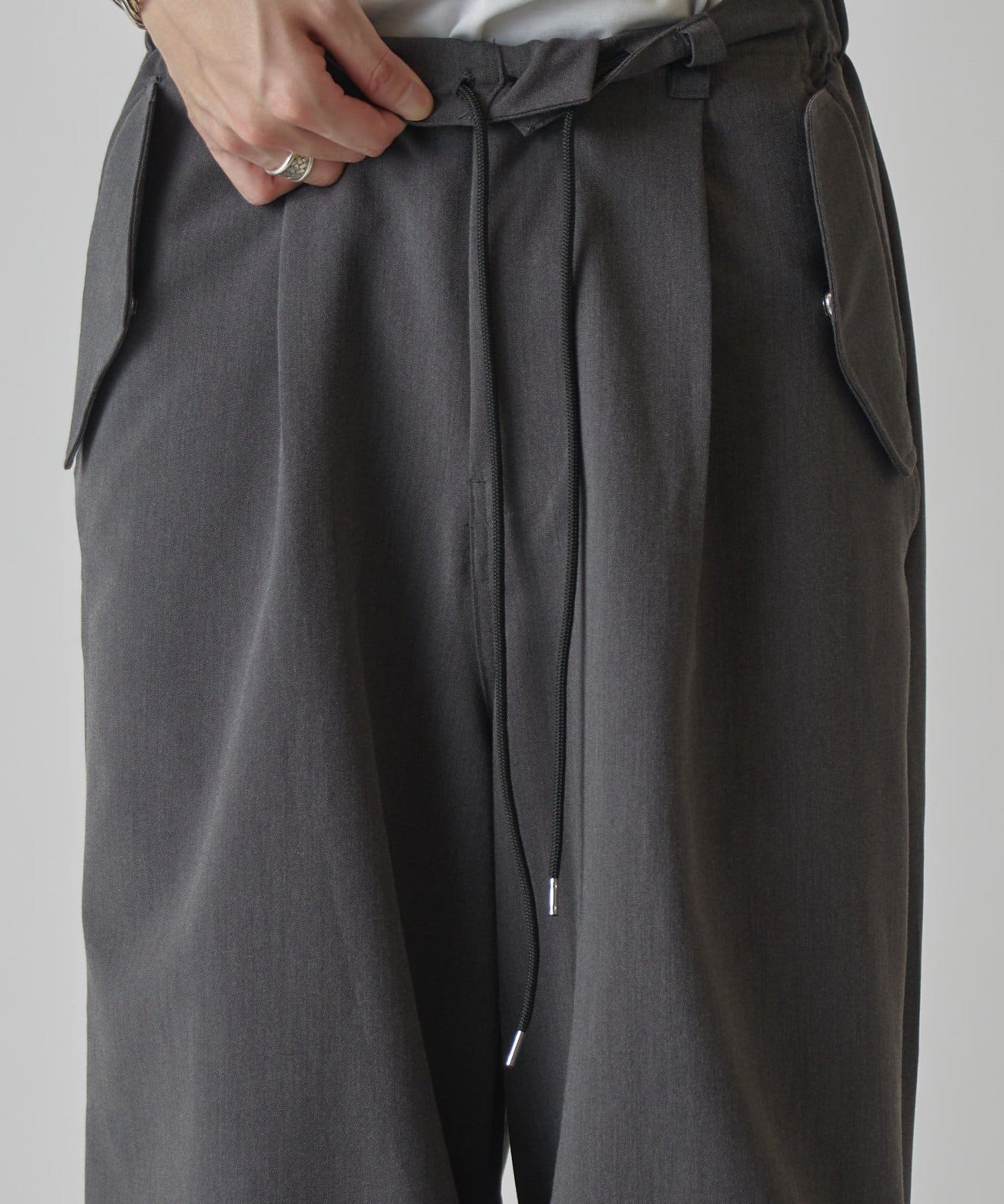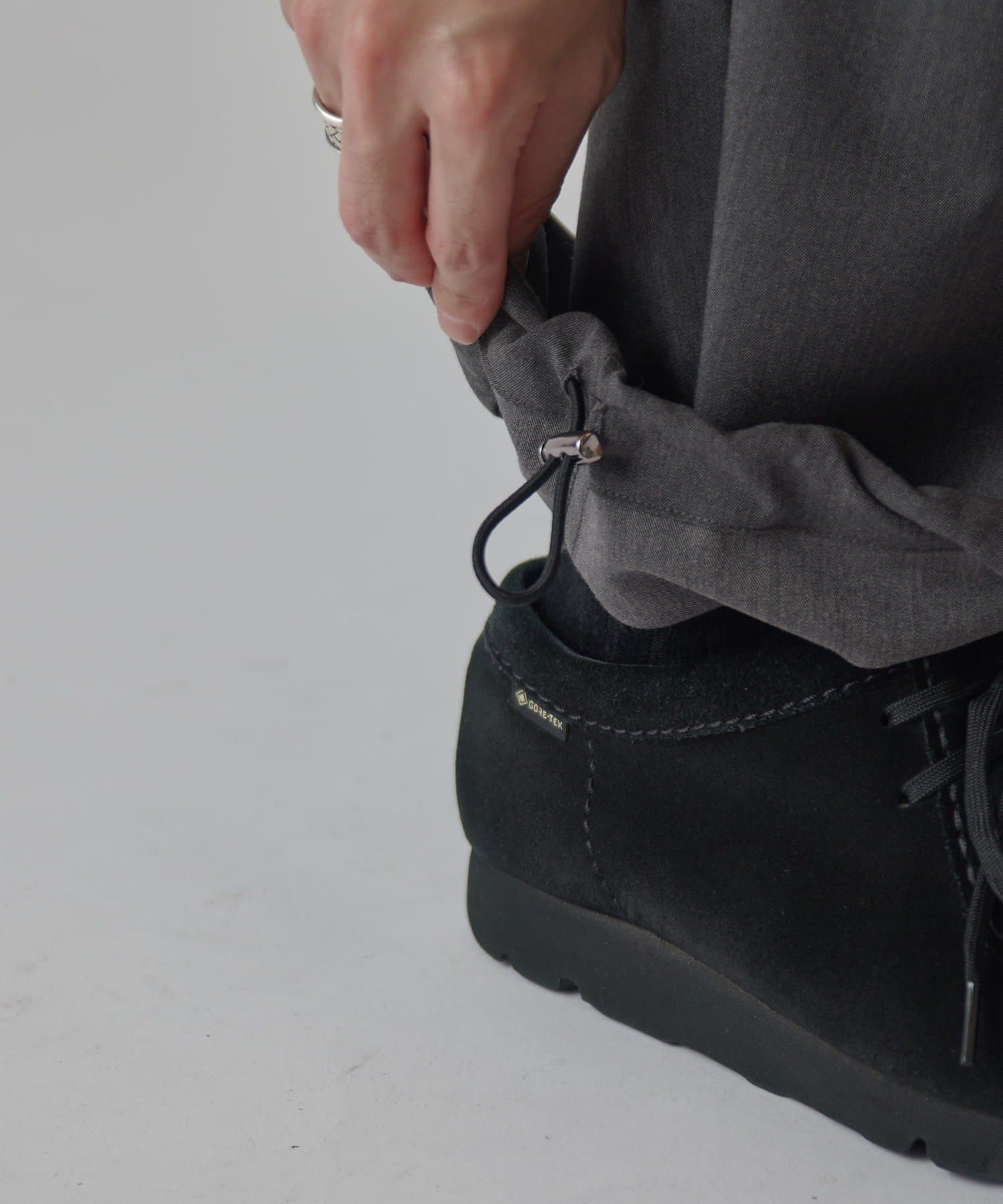 ウエストにはコードを通しており、サイズ調整可能。裾にはドローコードを通しているので、シルエットの調節が可能。キレイめでもカジュアルでも、幅広く着て頂けるアイテムです。