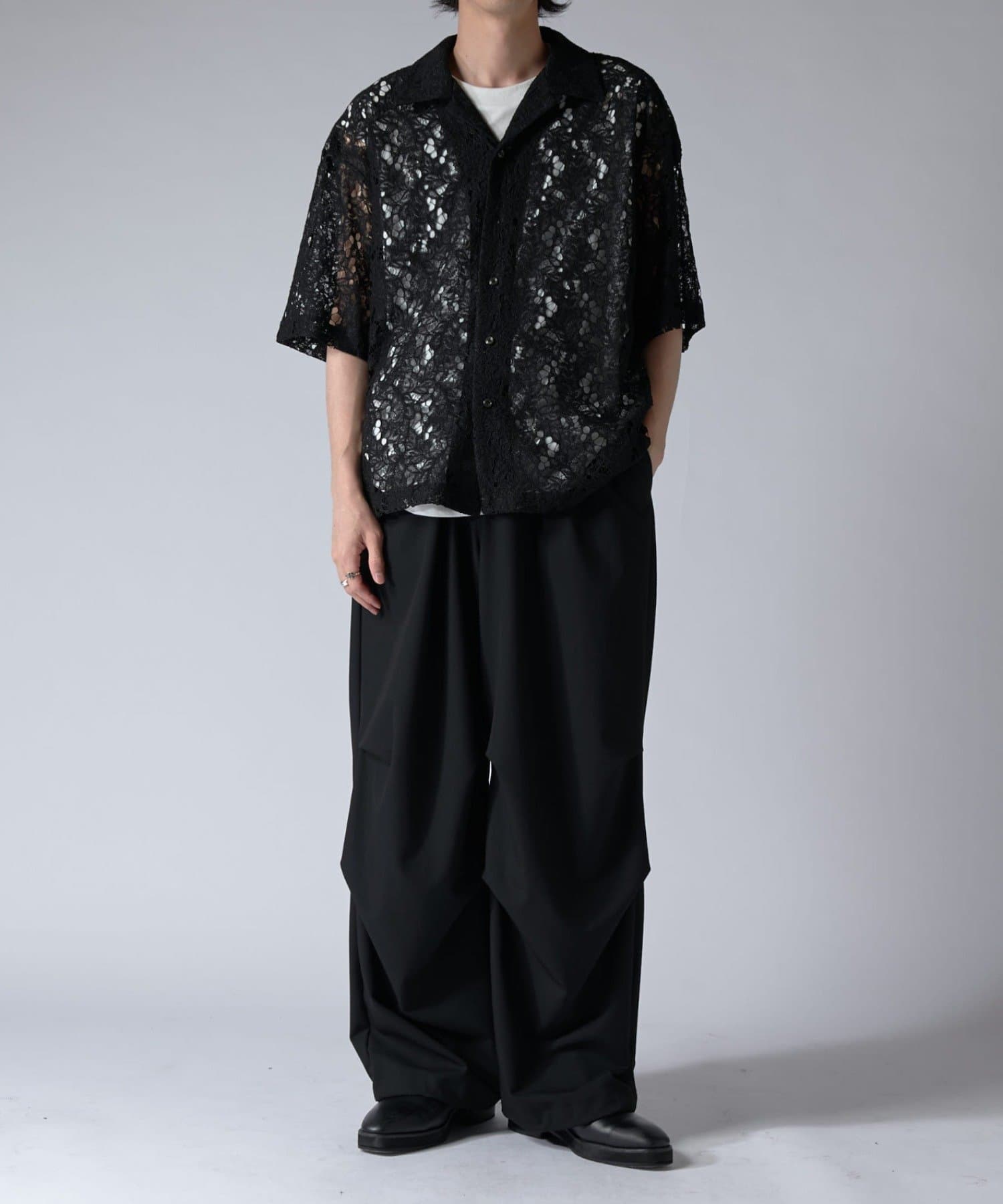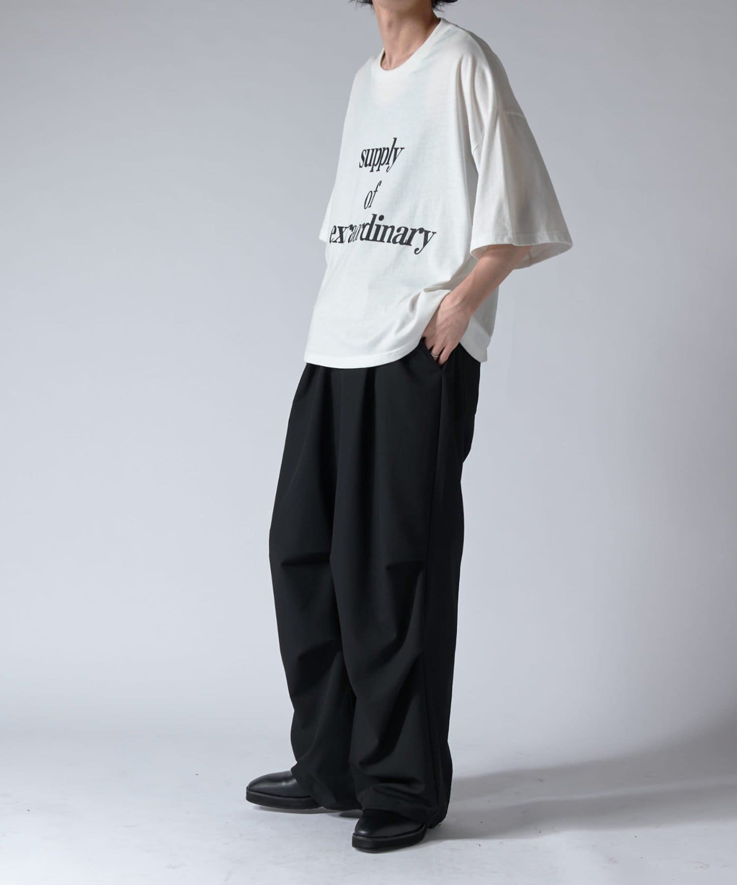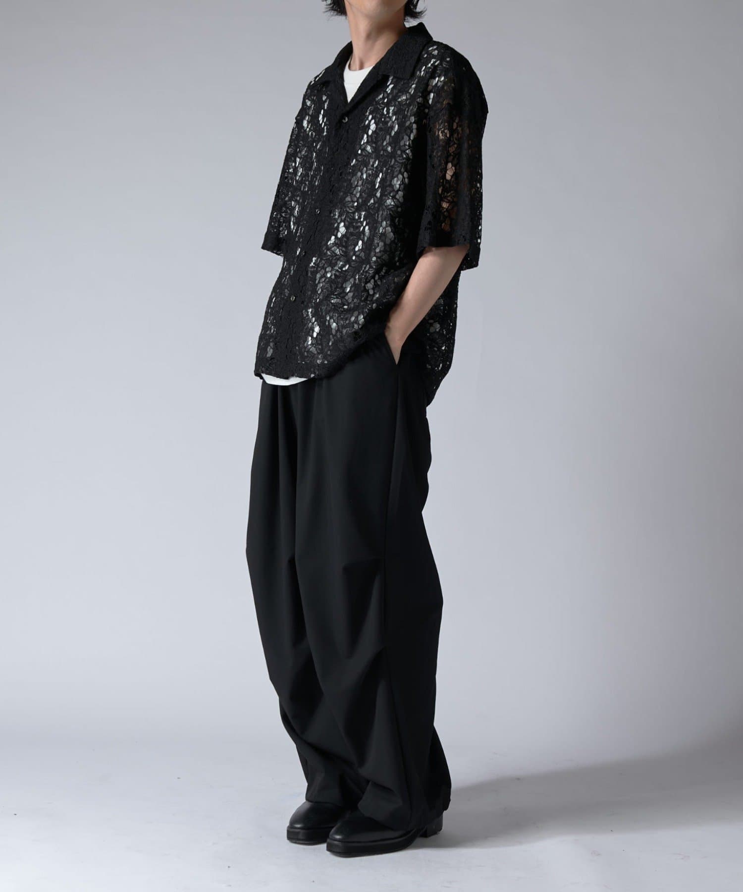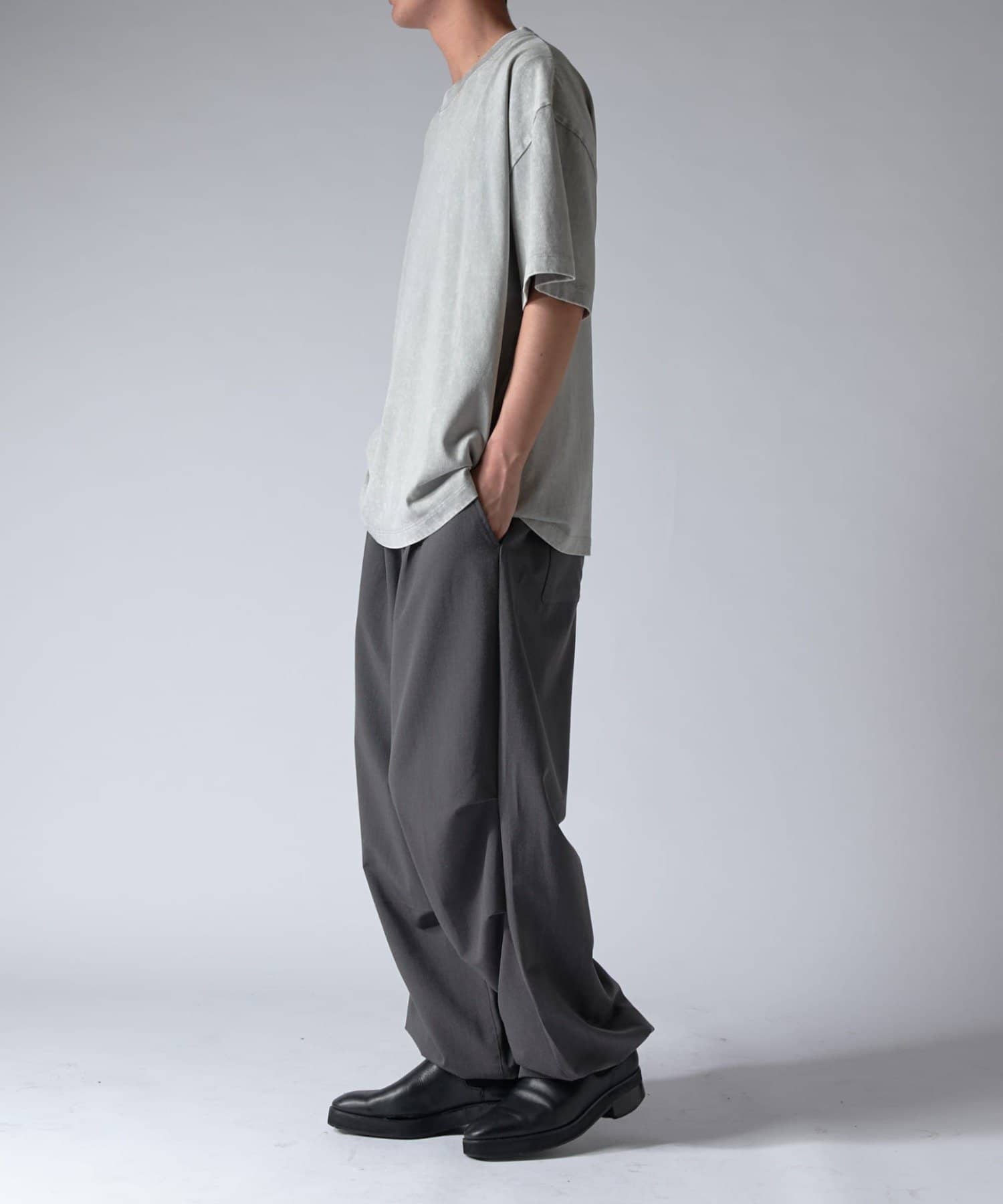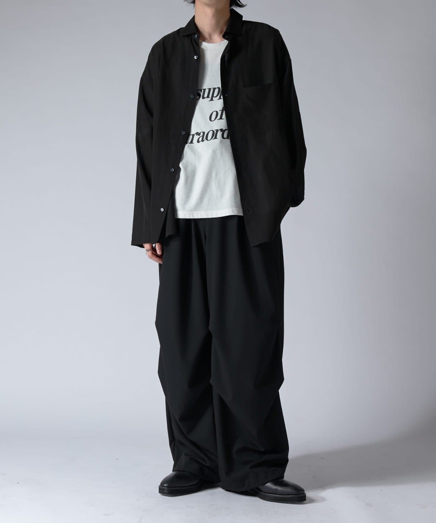 素材には、サラッとした素材感のツイルを使用。上品な見た目とドレープ感がポイントの素材です。