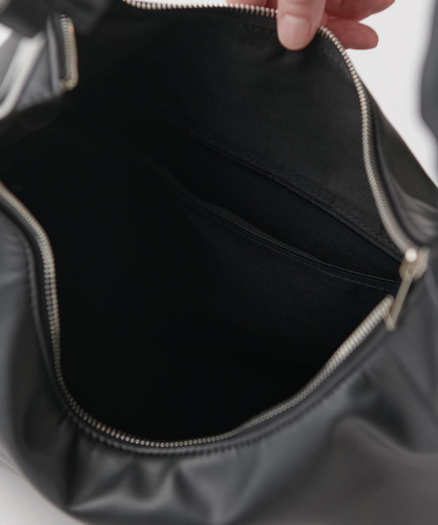 エコバッグからシルエットの着想を得た、縦長シルエット。レザーながらも使い勝手のいいバッグです。