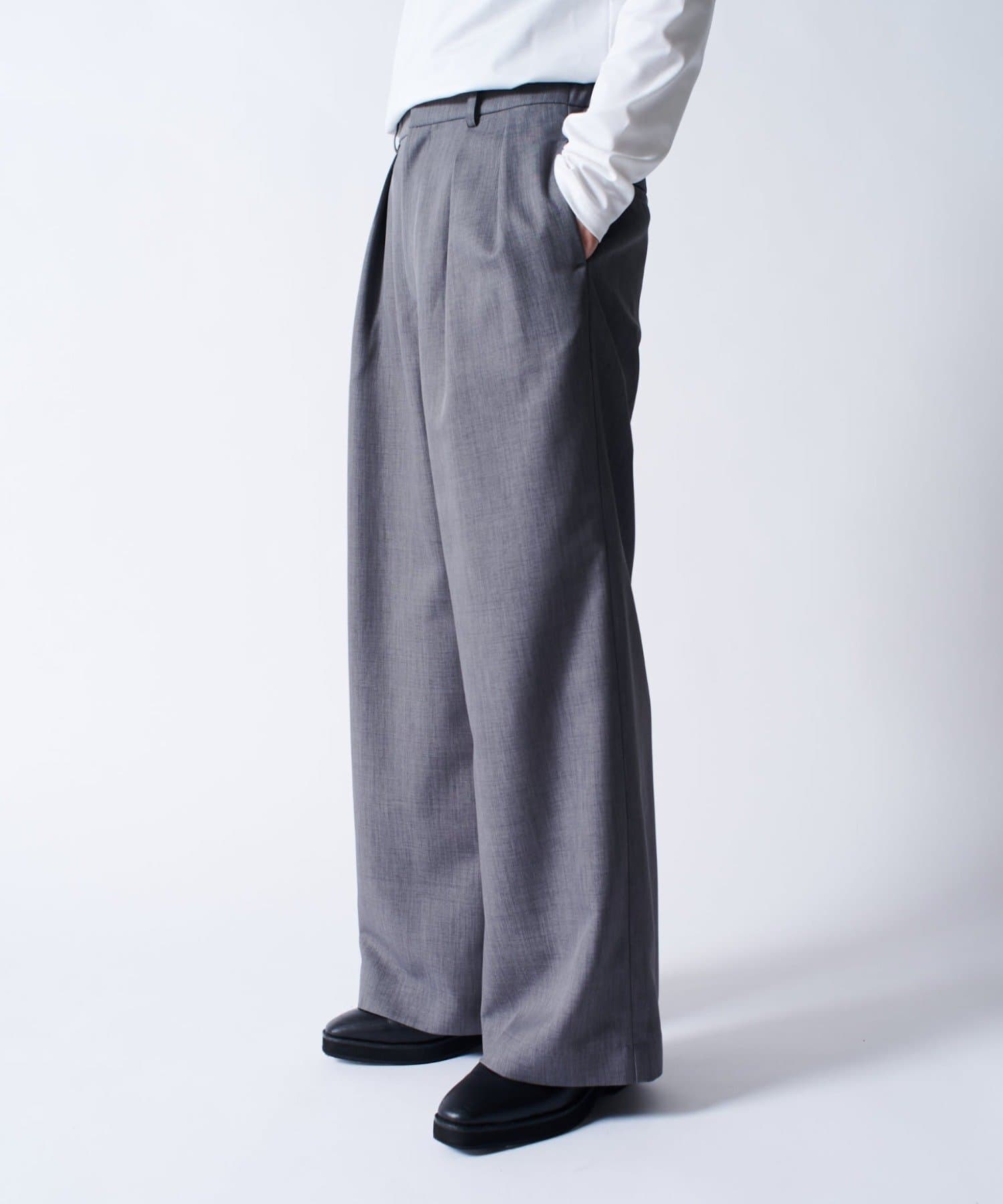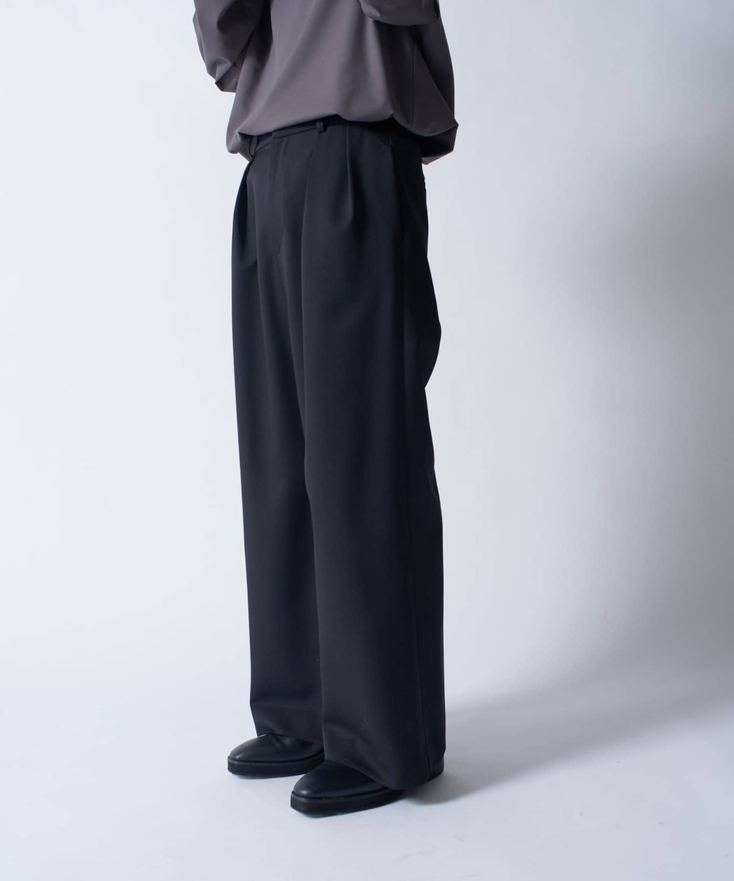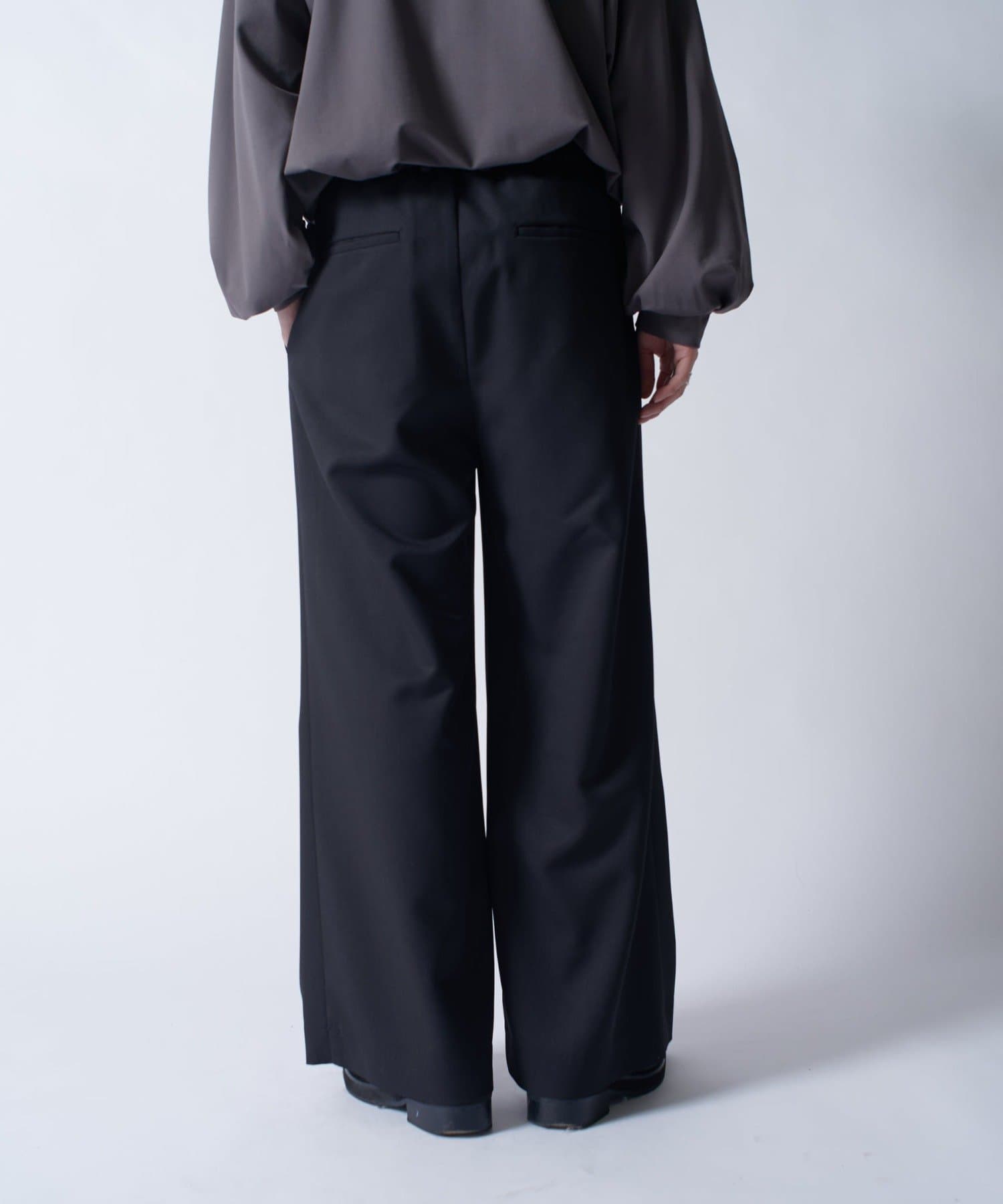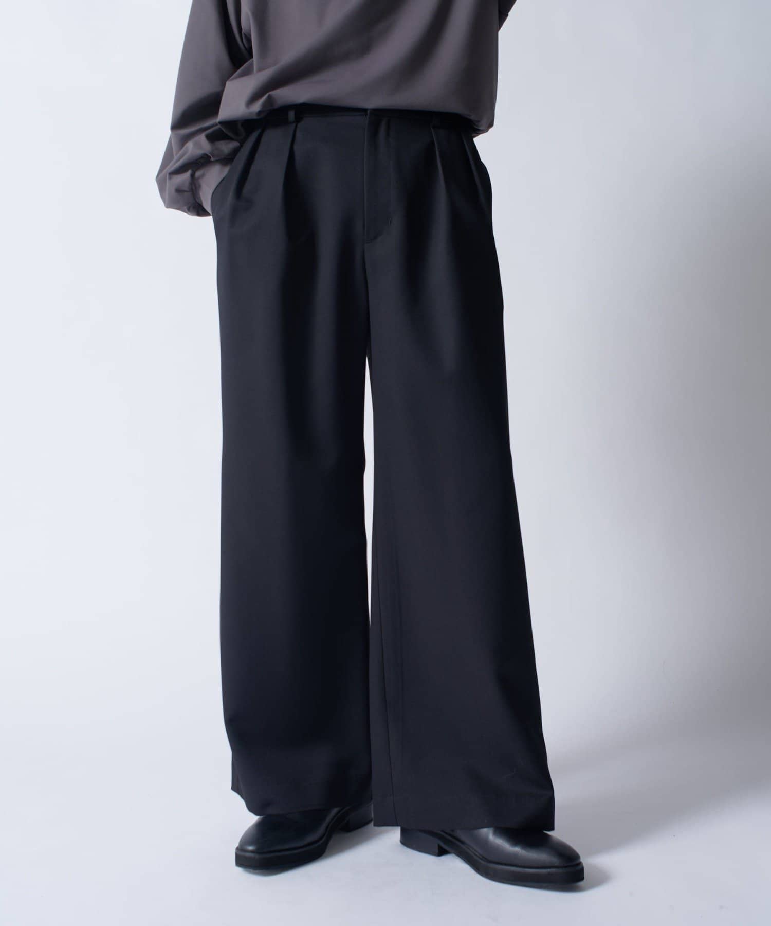 太もも部分を広くとってストンと落ちるワイドシルエット。フロントを内側2タックにすることで、クラシックで立体的なデザインに。