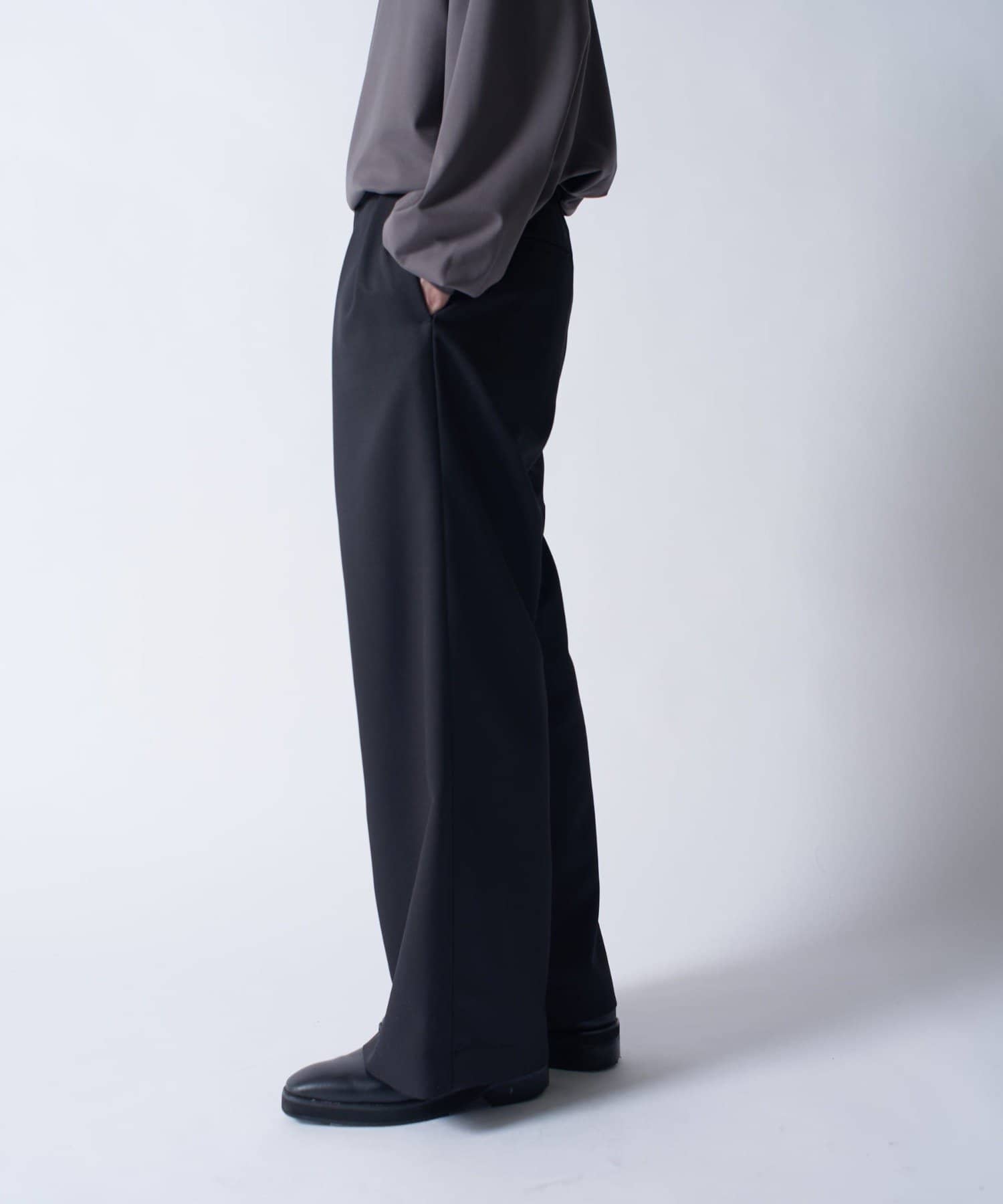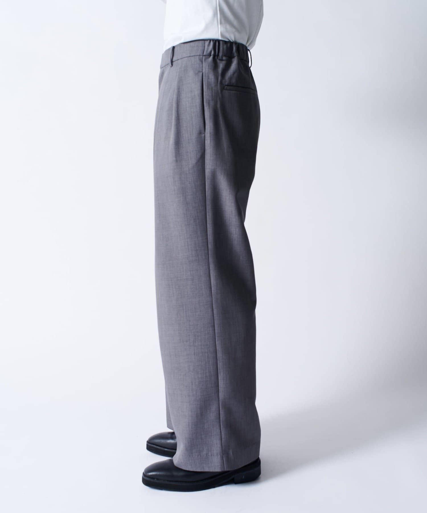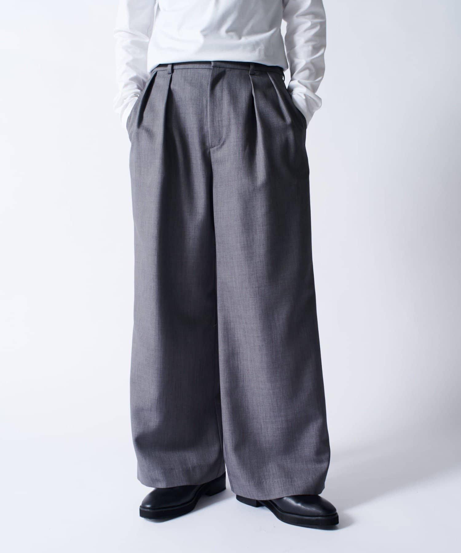 太もも部分を広くとってストンと落ちるワイドシルエット。フロントを内側2タックにすることで、クラシックで立体的なデザインに。
