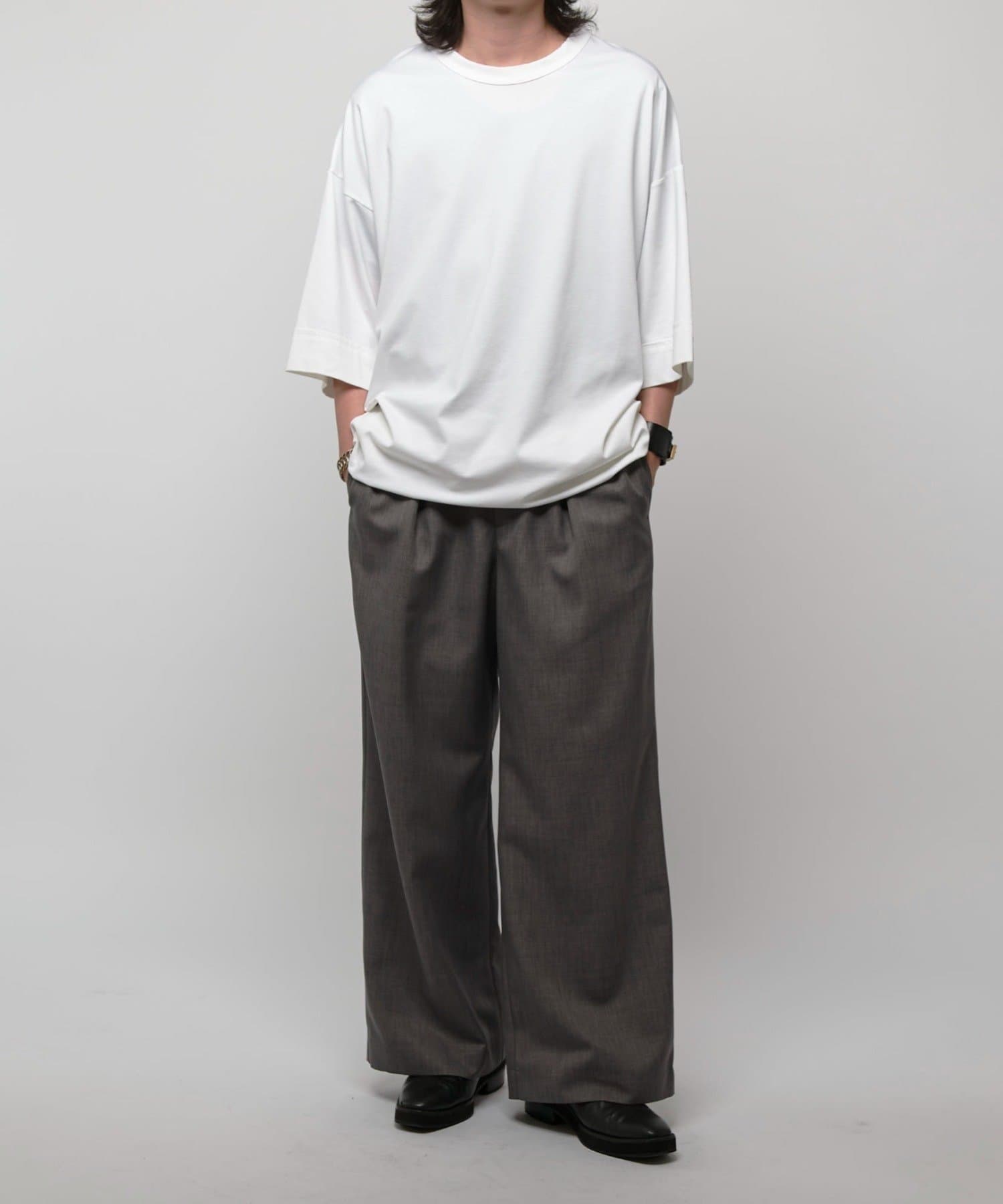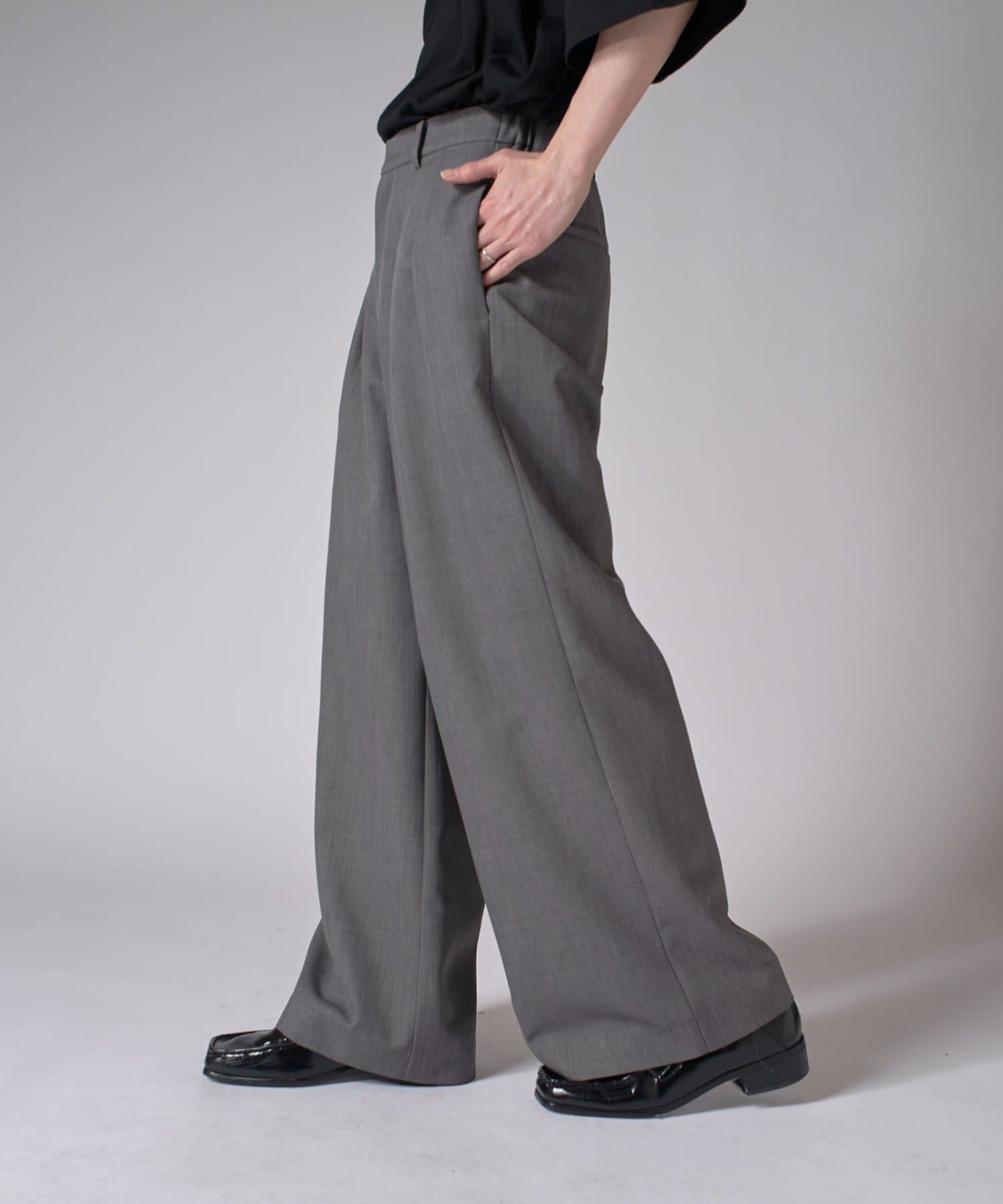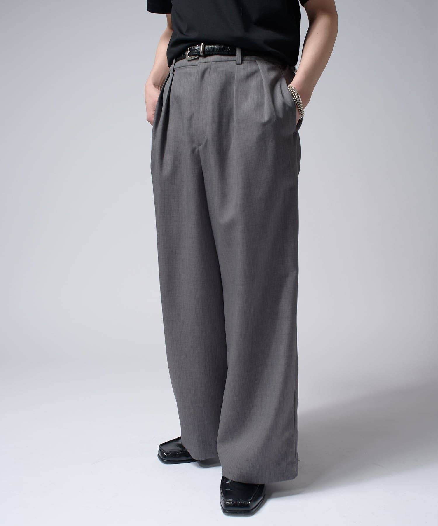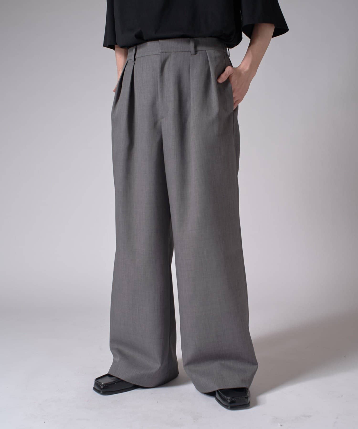 太もも部分を広くとってストンと落ちるワイドシルエット。フロントを内側2タックにすることで、クラシックで立体的なデザインに。