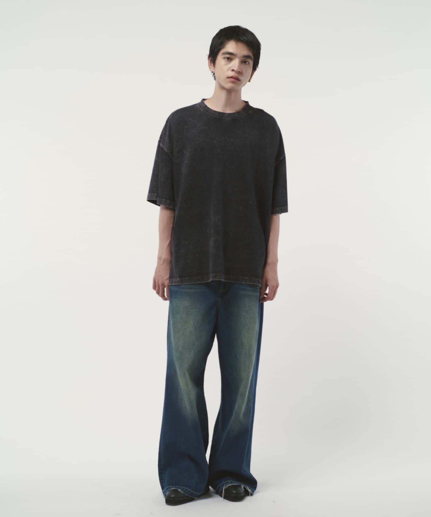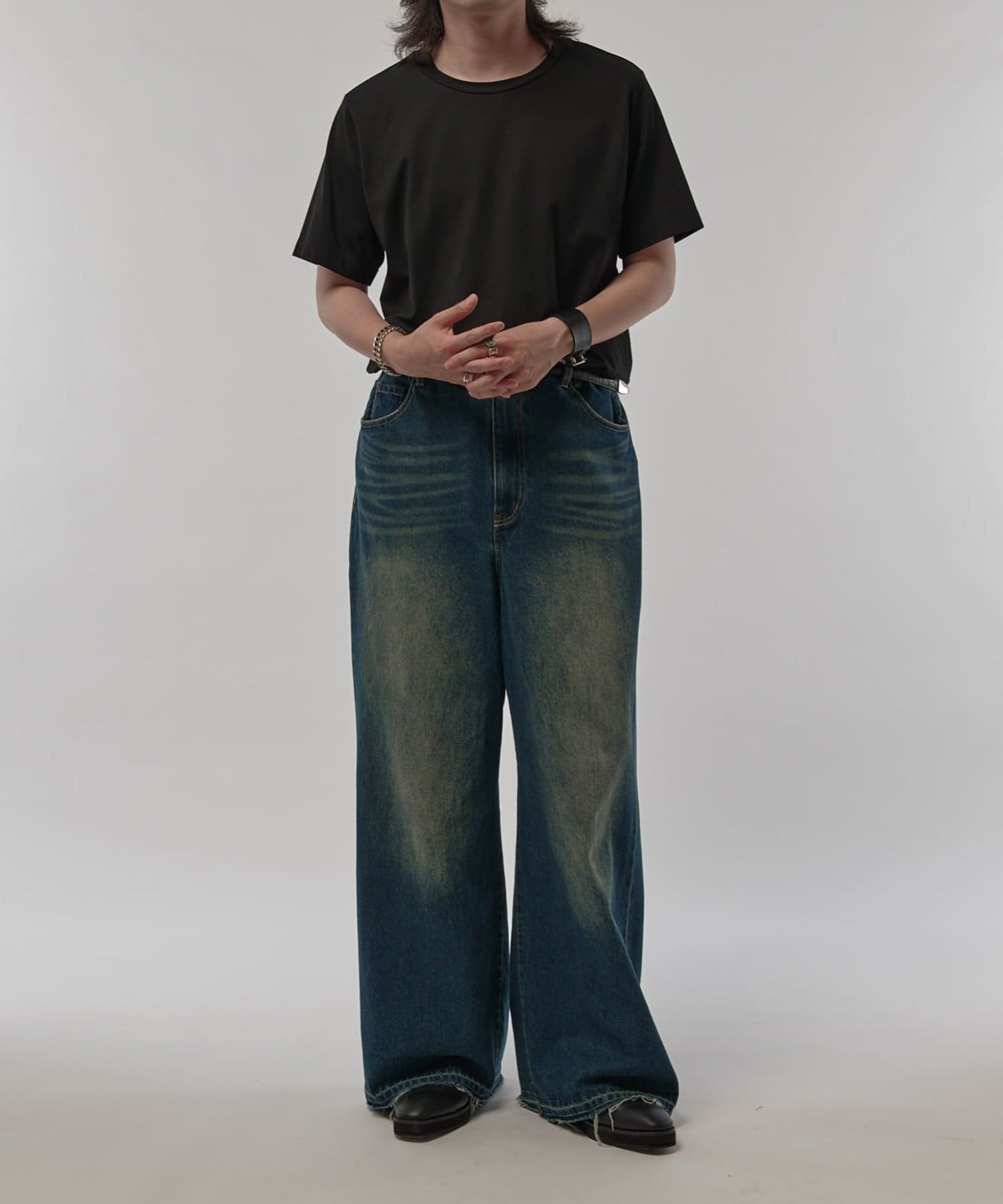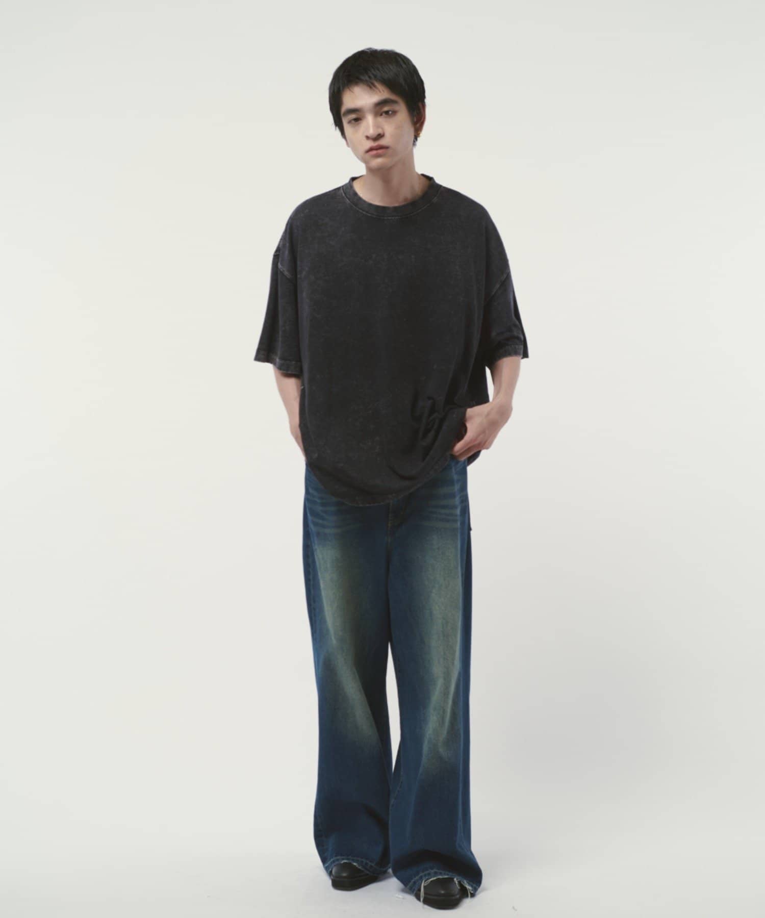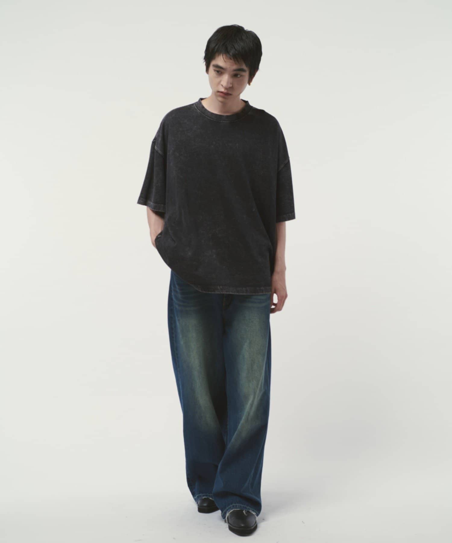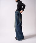 素材には11ozの程よい肉感のコットンデニムを使用。数回洗いをかけて柔らくした後に上からピグメント加工を施しヴィンテージライクな仕上がりに。