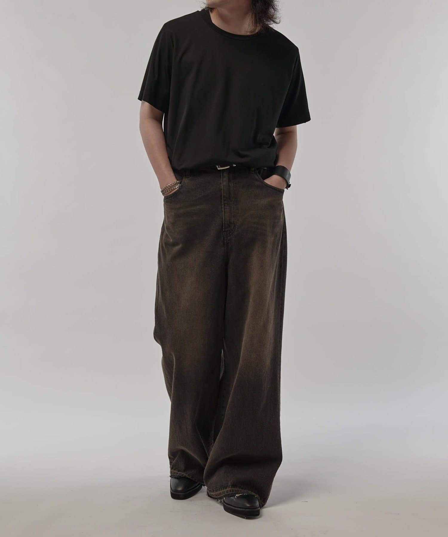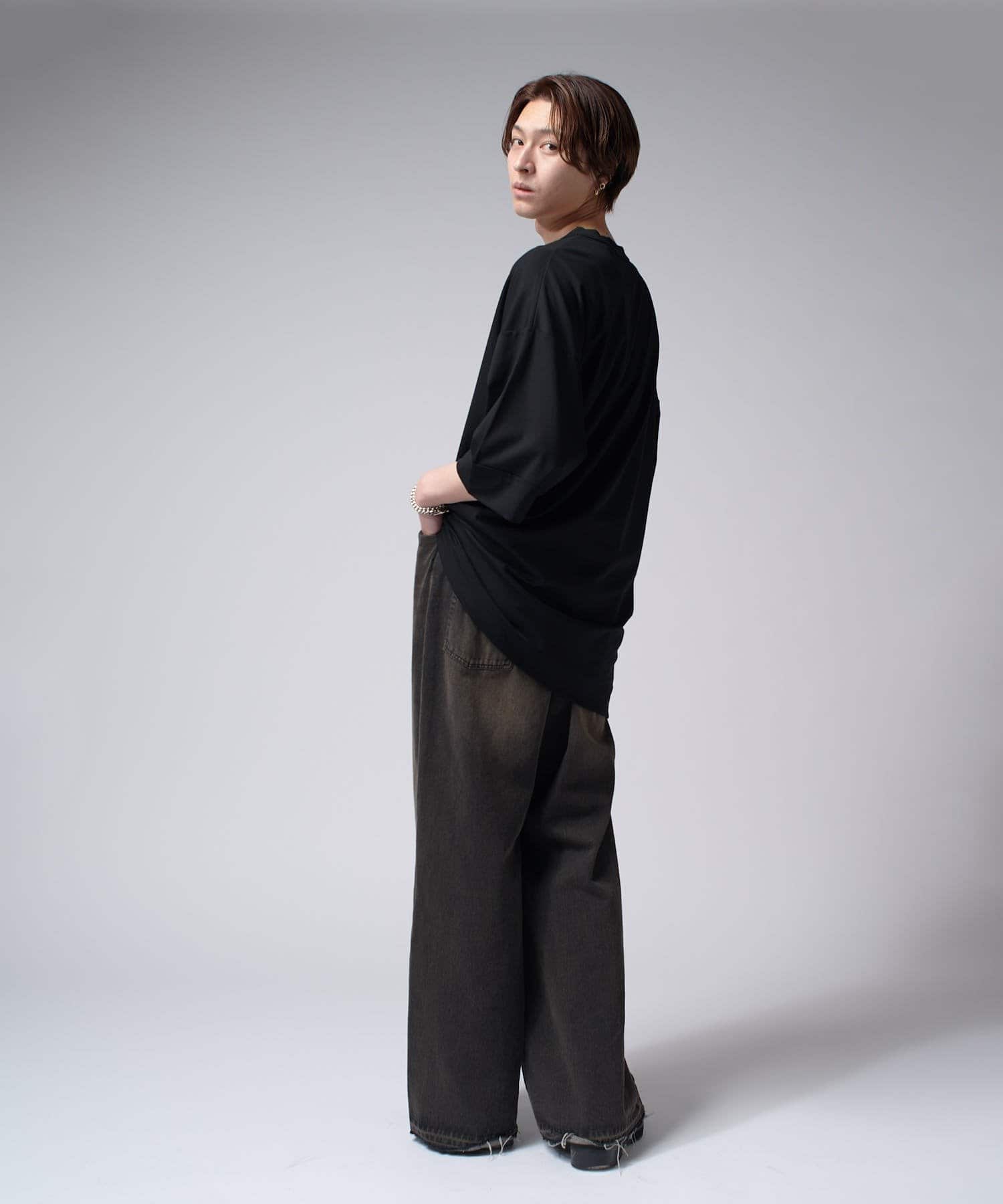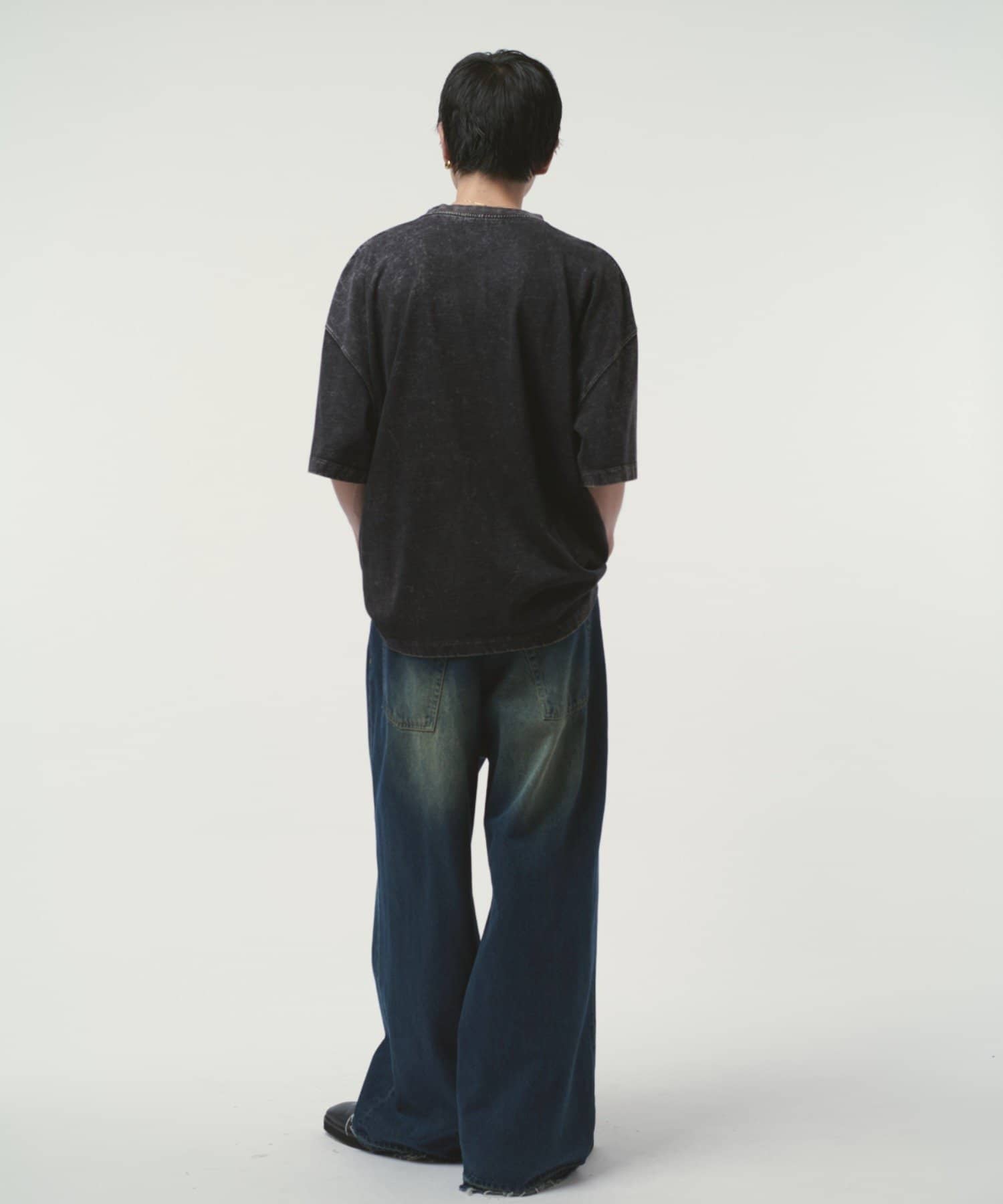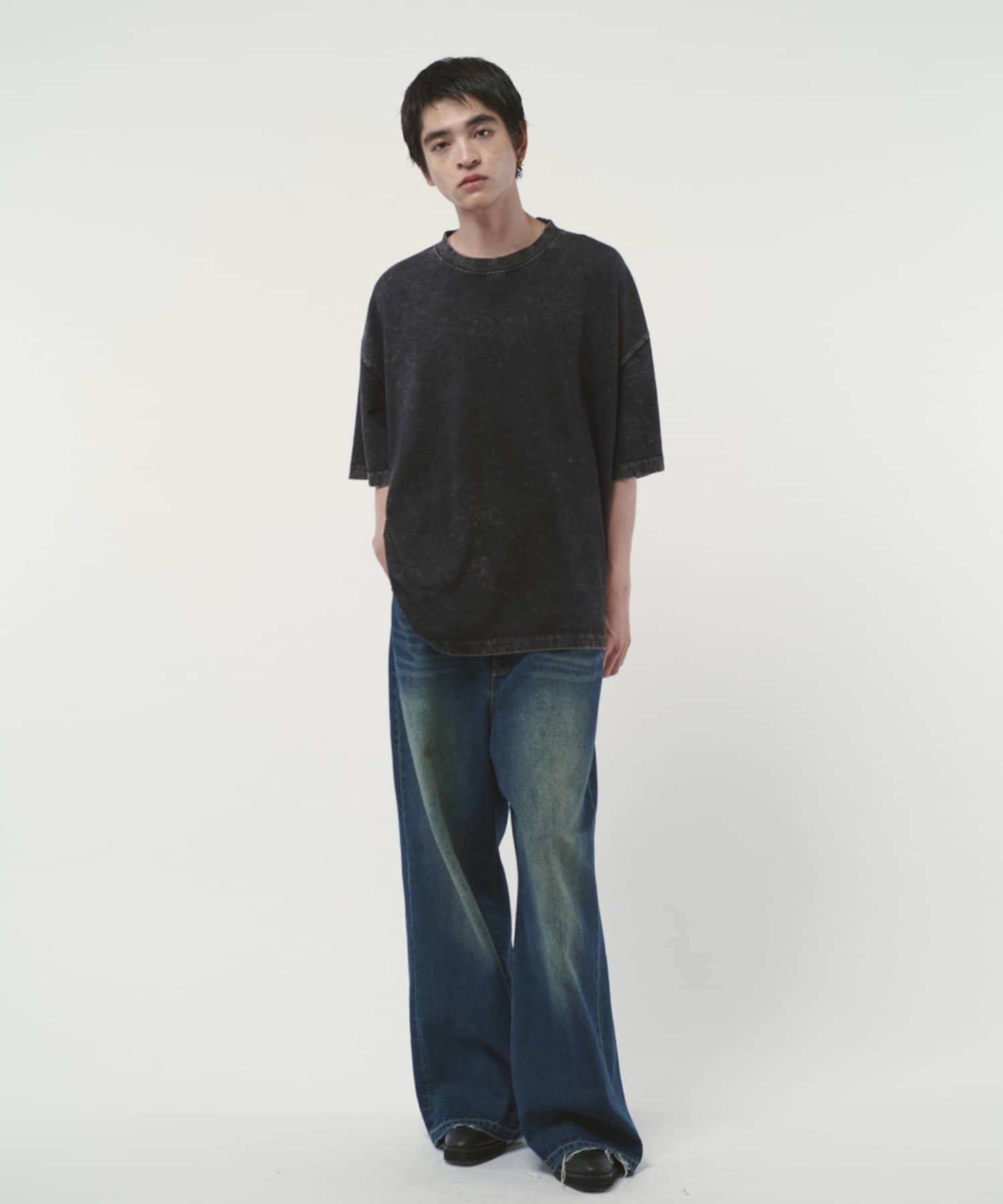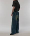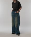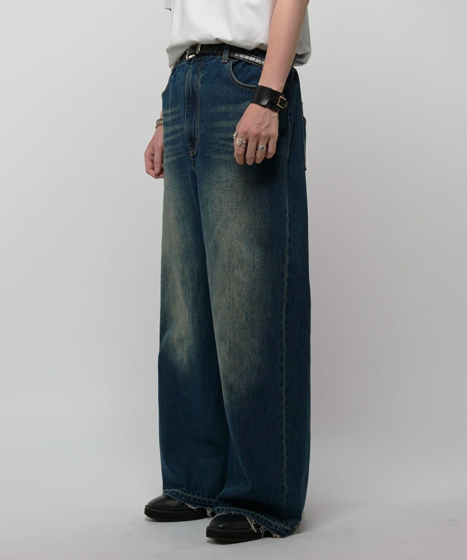 素材には11ozの程よい肉感のコットンデニムを使用。数回洗いをかけて柔らくした後に上からピグメント加工を施しヴィンテージライクな仕上がりに。