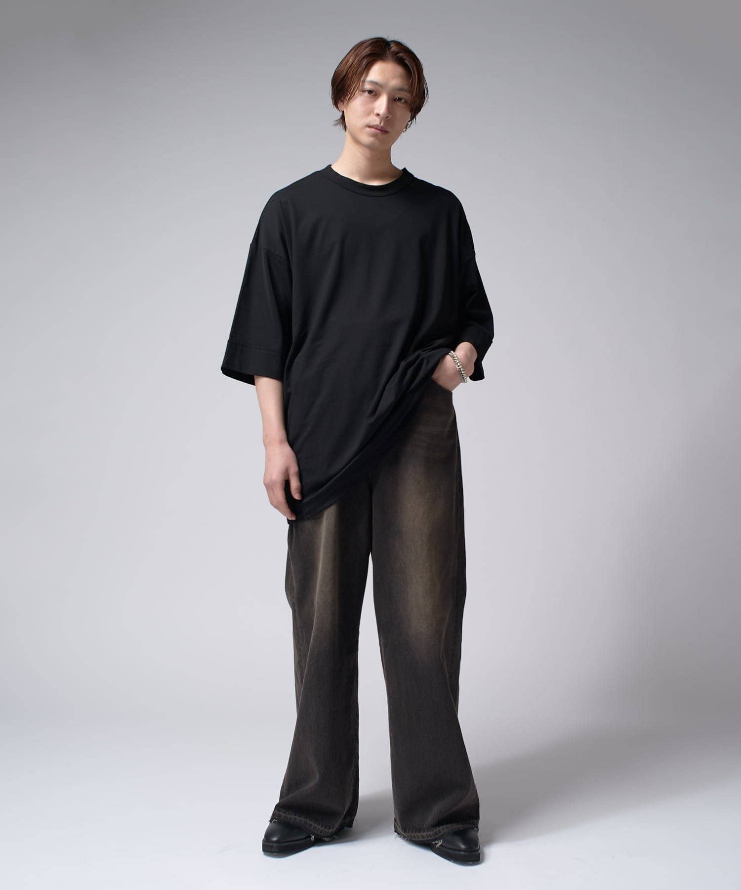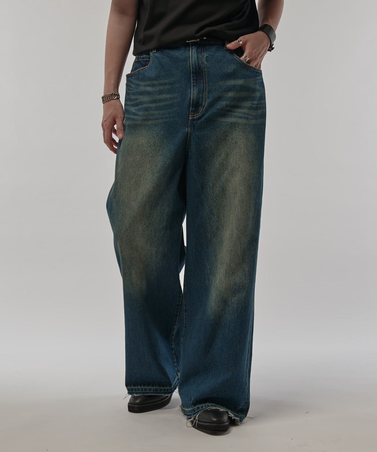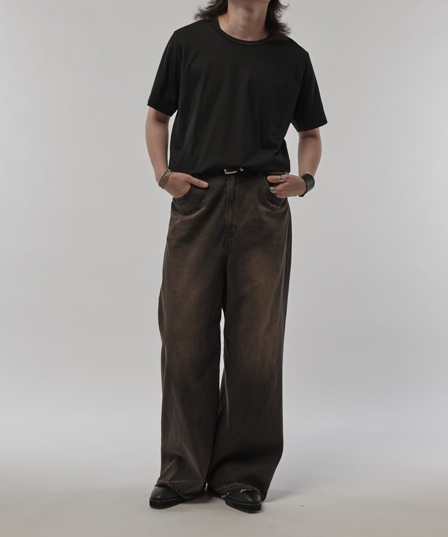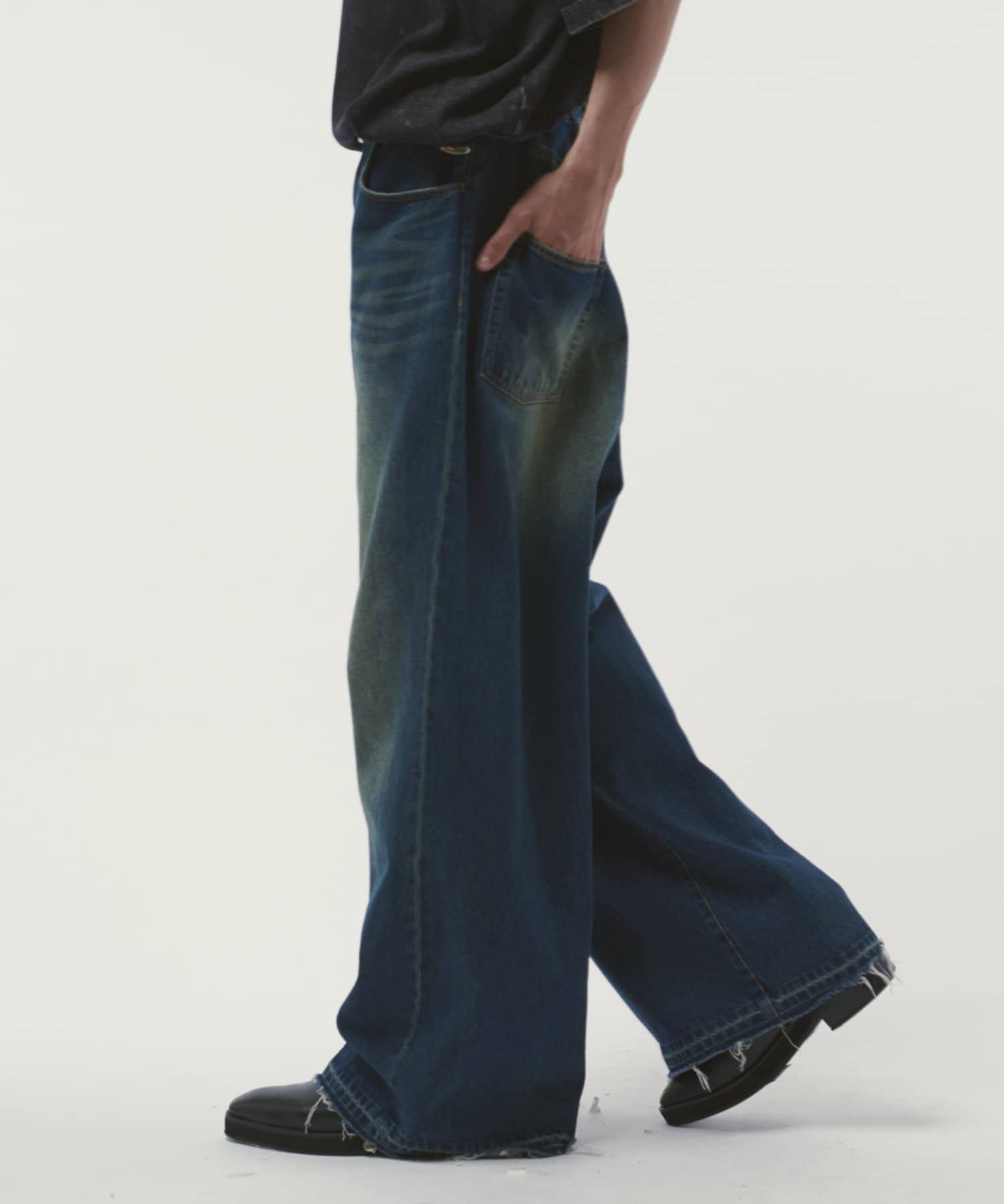 素材には11ozの程よい肉感のコットンデニムを使用。数回洗いをかけて柔らくした後に上からピグメント加工を施しヴィンテージライクな仕上がりに。