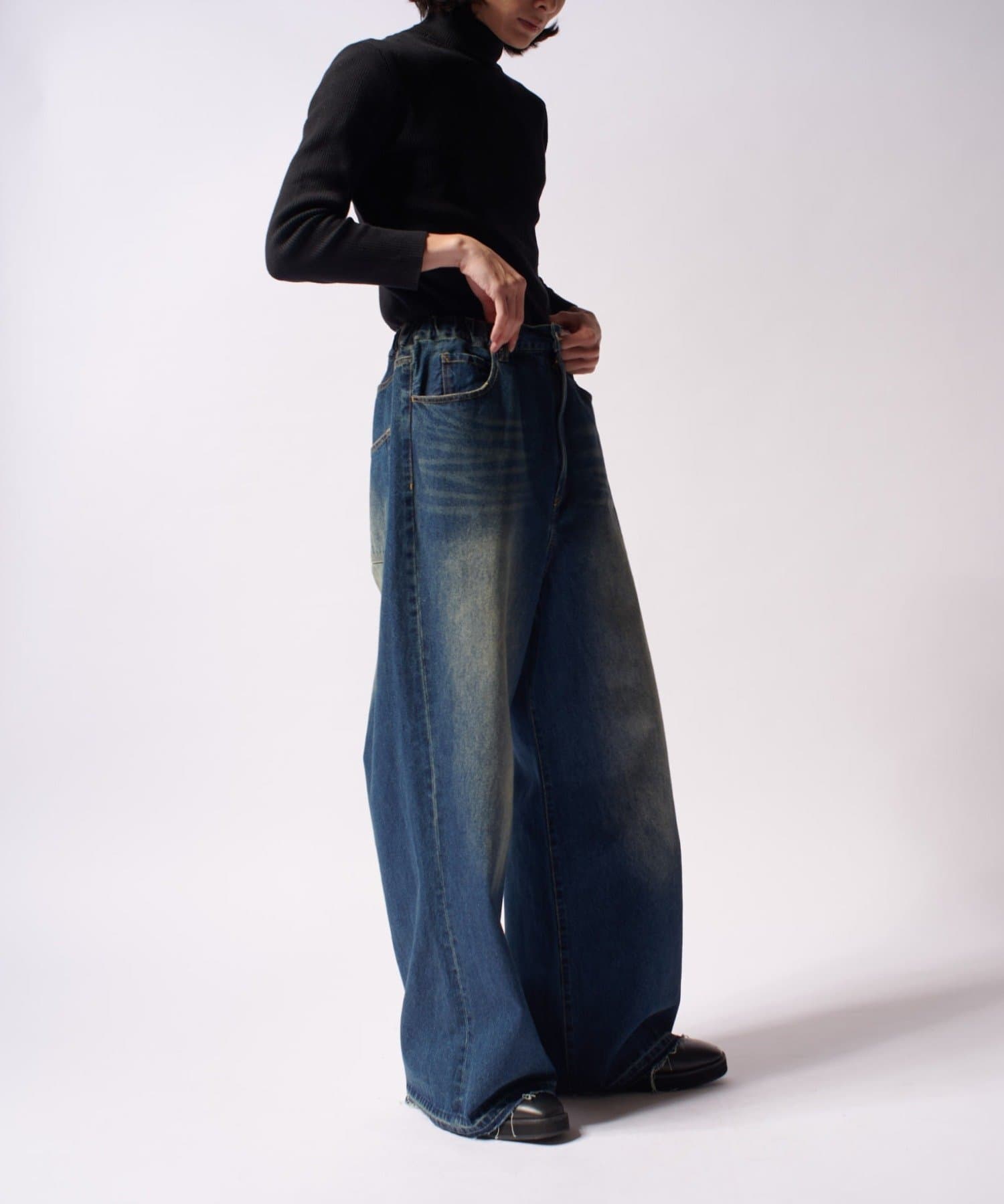 ウエストがイージー仕様になったエレファントジーンズの進化系デニム。通常のエレファントジーンズよりウエストを広くし、イージー仕様に。デニムなのでイージーに穿ける新感覚のデニムです。