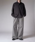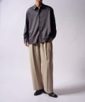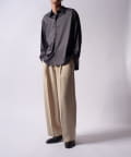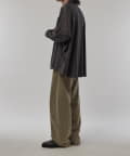 着用した際に横から見るとAラインのシルエットになっており、素材感と相まってモードな雰囲気をさらに演出しております。