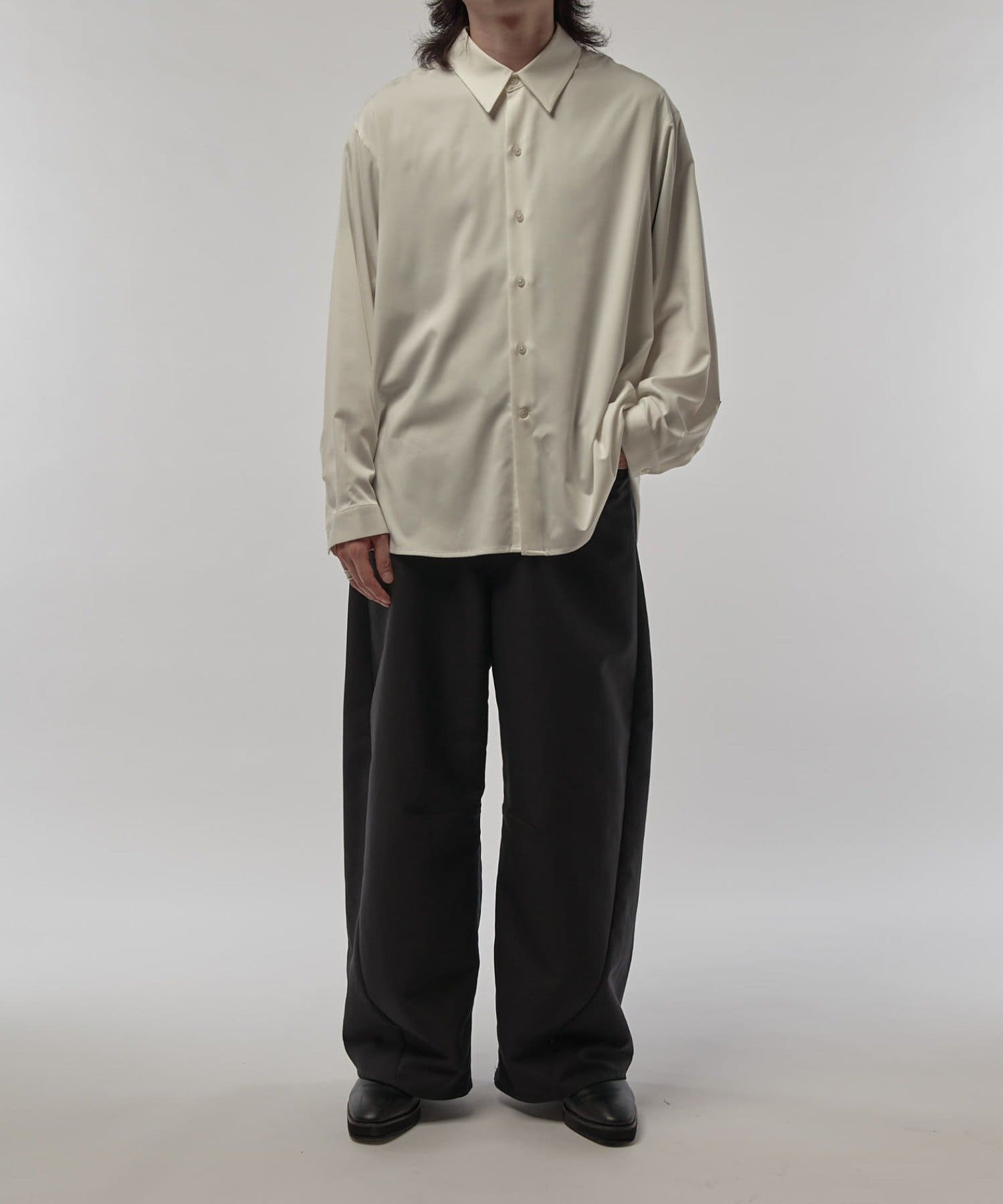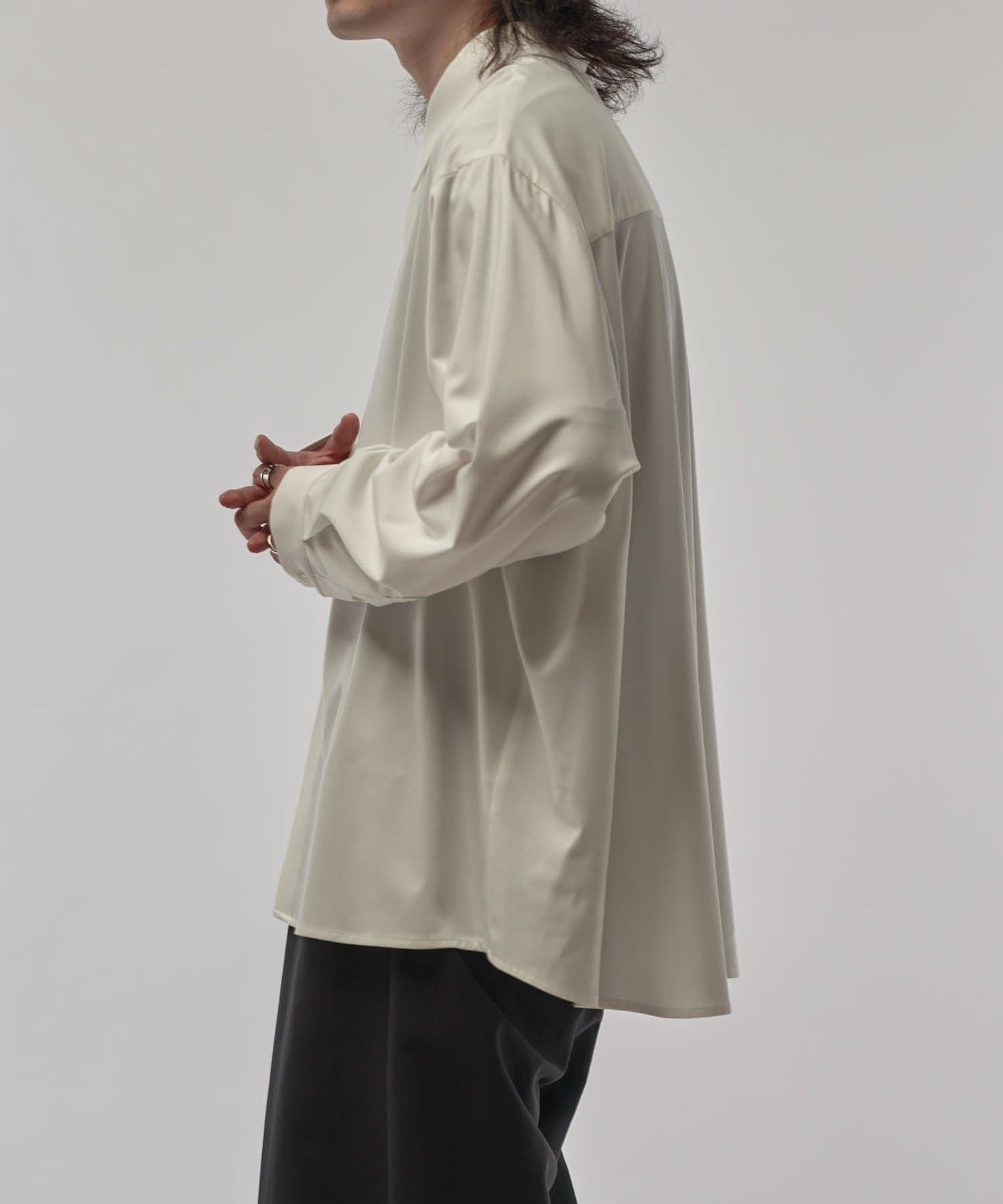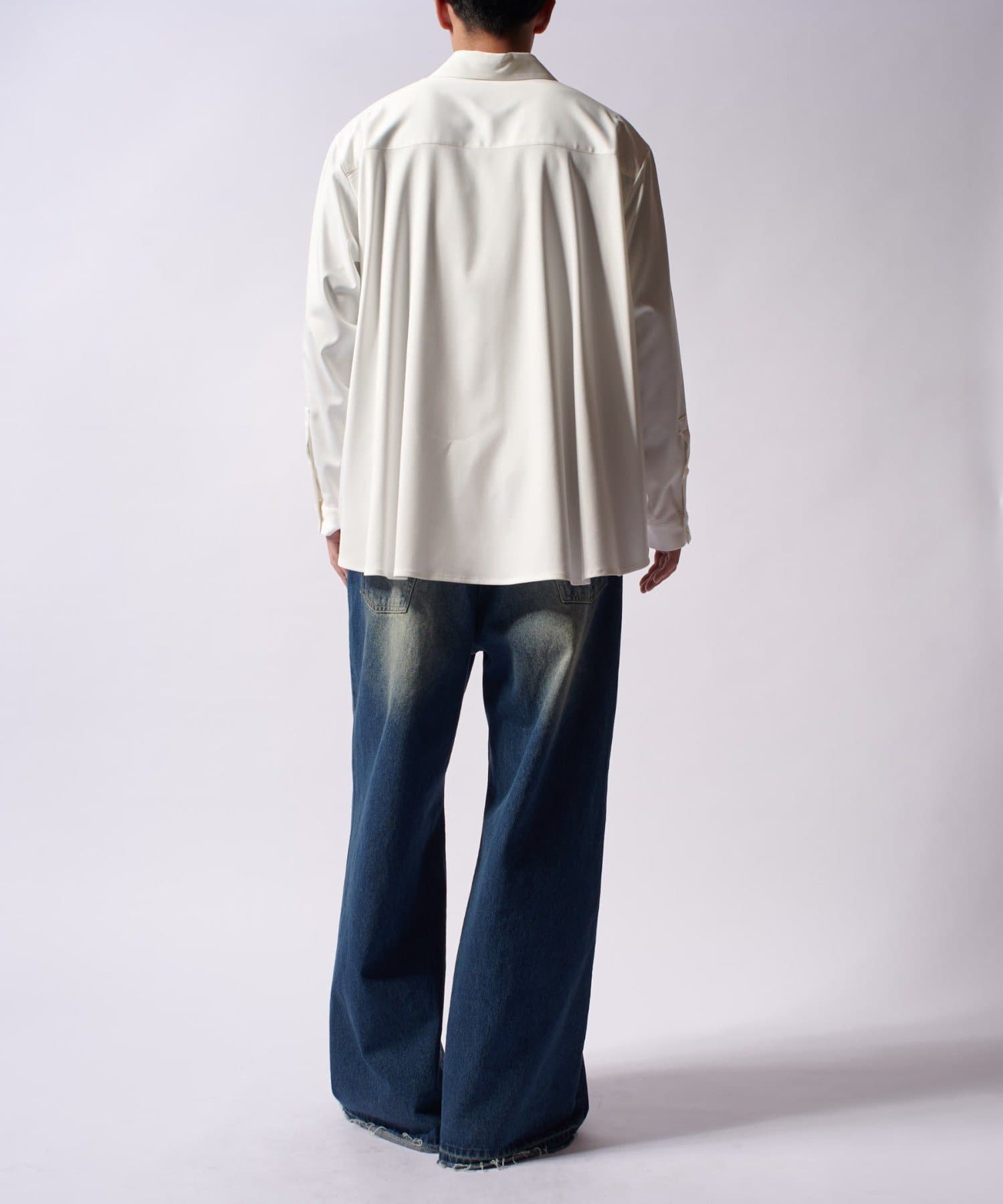 通常のシャツよりも身幅が広く、後ろ身頃がふわっと膨らんだシルエットのシャツ。