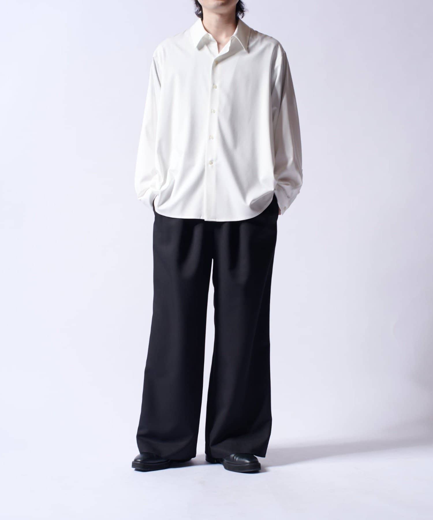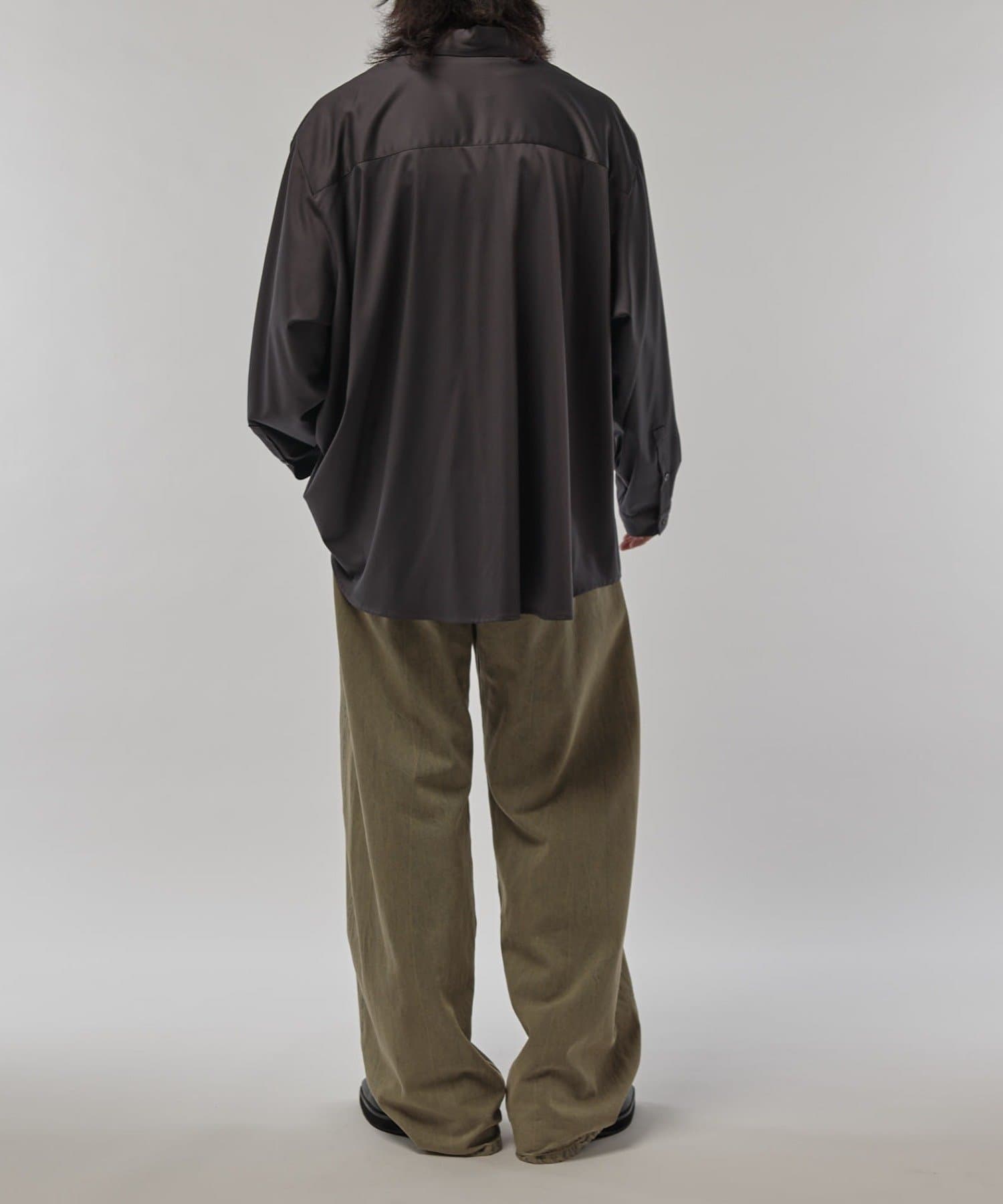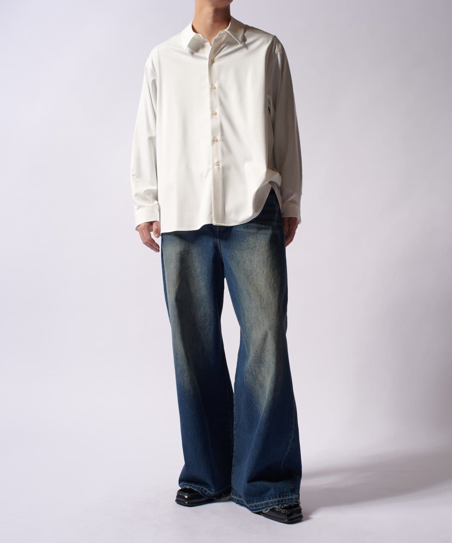 通常のシャツよりも身幅が広く、後ろ身頃がふわっと膨らんだシルエットのシャツ。
