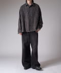 着丈と身幅を広く取ったルーズフィットなサイズ感。プルオーバーや、Tシャツの上からサラッと羽織って頂けるサイズ感なので、羽織りとしても着て頂けます。
