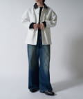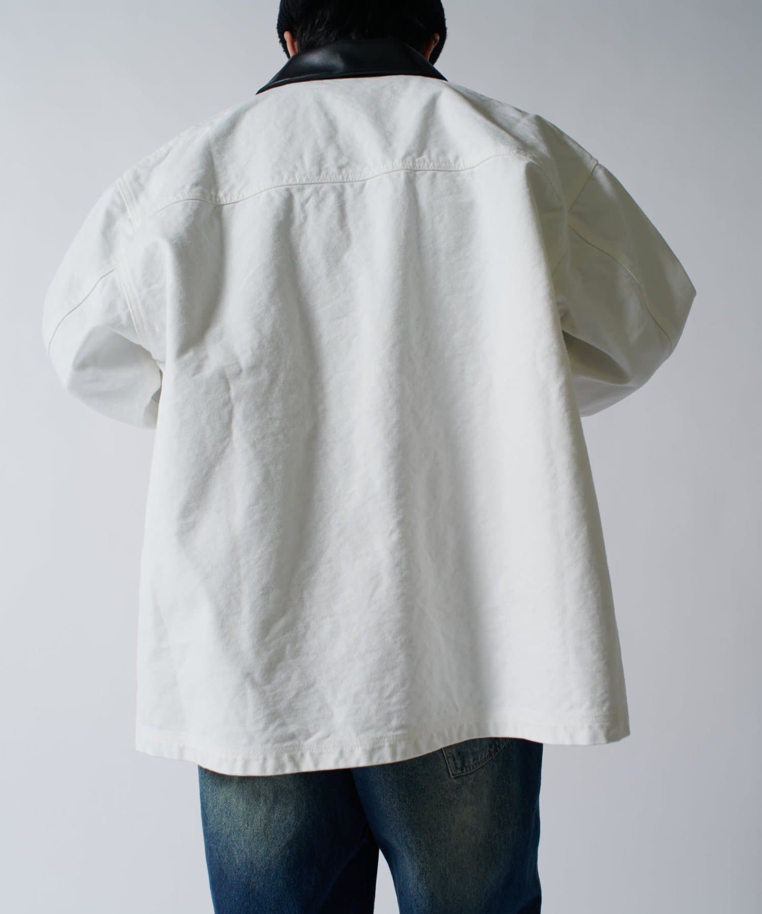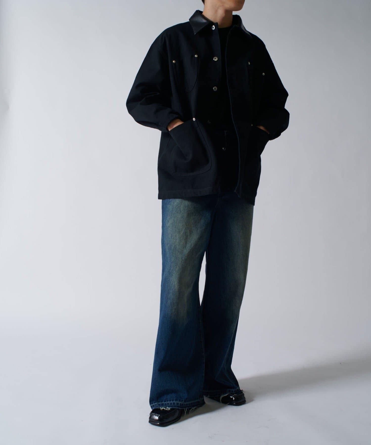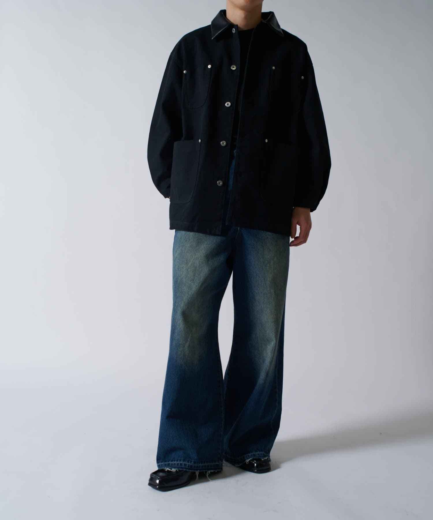さらに、1ウォッシュをして着やすく柔らかい着心地に。フロントには4つのポケットを配置して、衿はレザー切替になっており上品な見た目に。カジュアルなアイテムですが、上品さを兼ね備えている、ユニークなアイテムです。