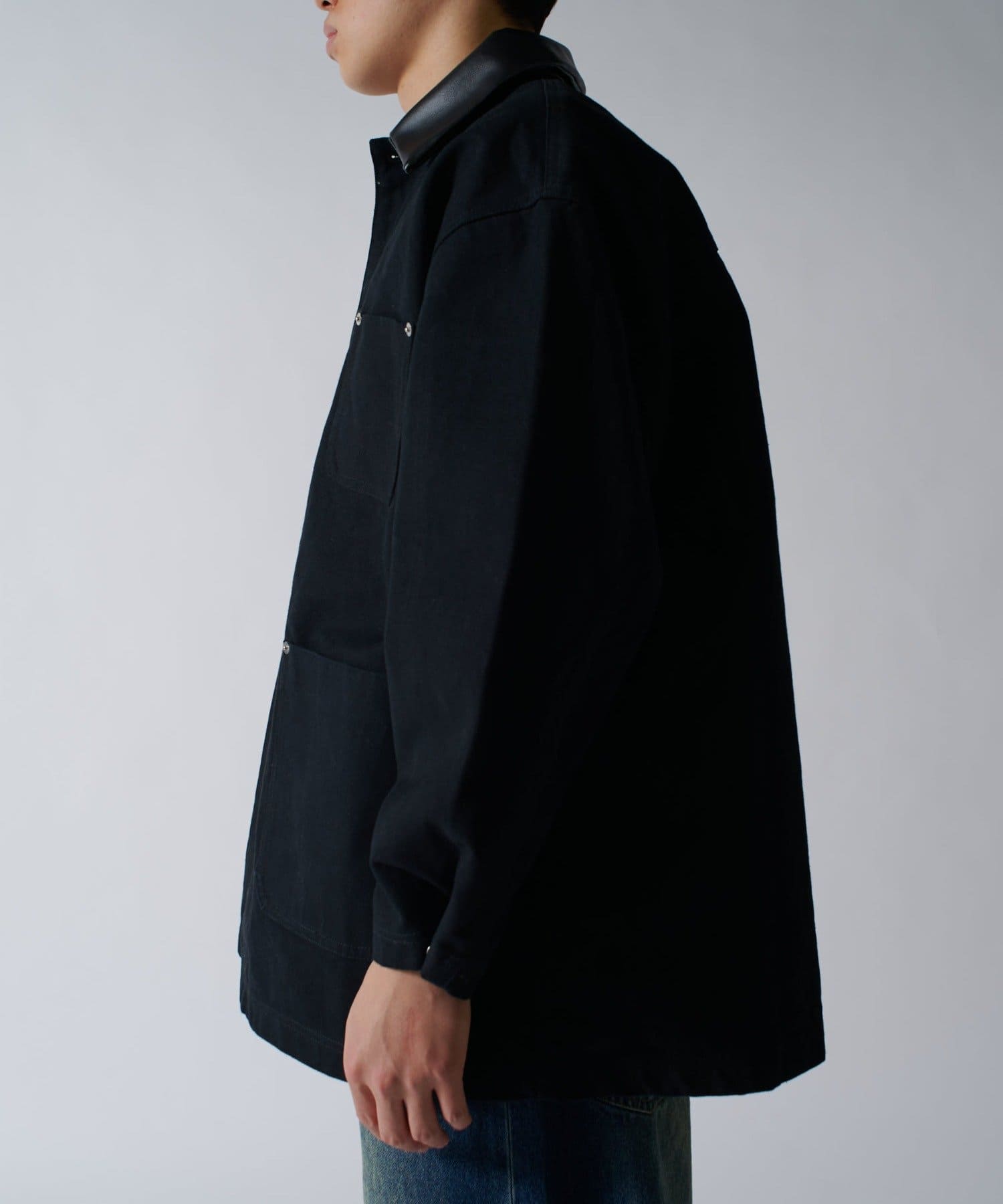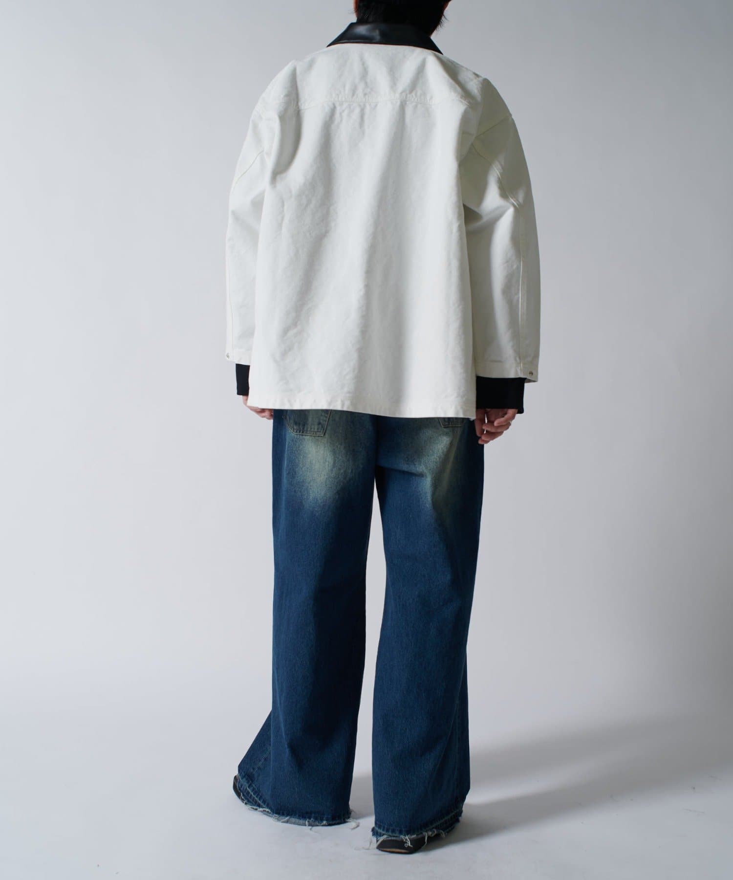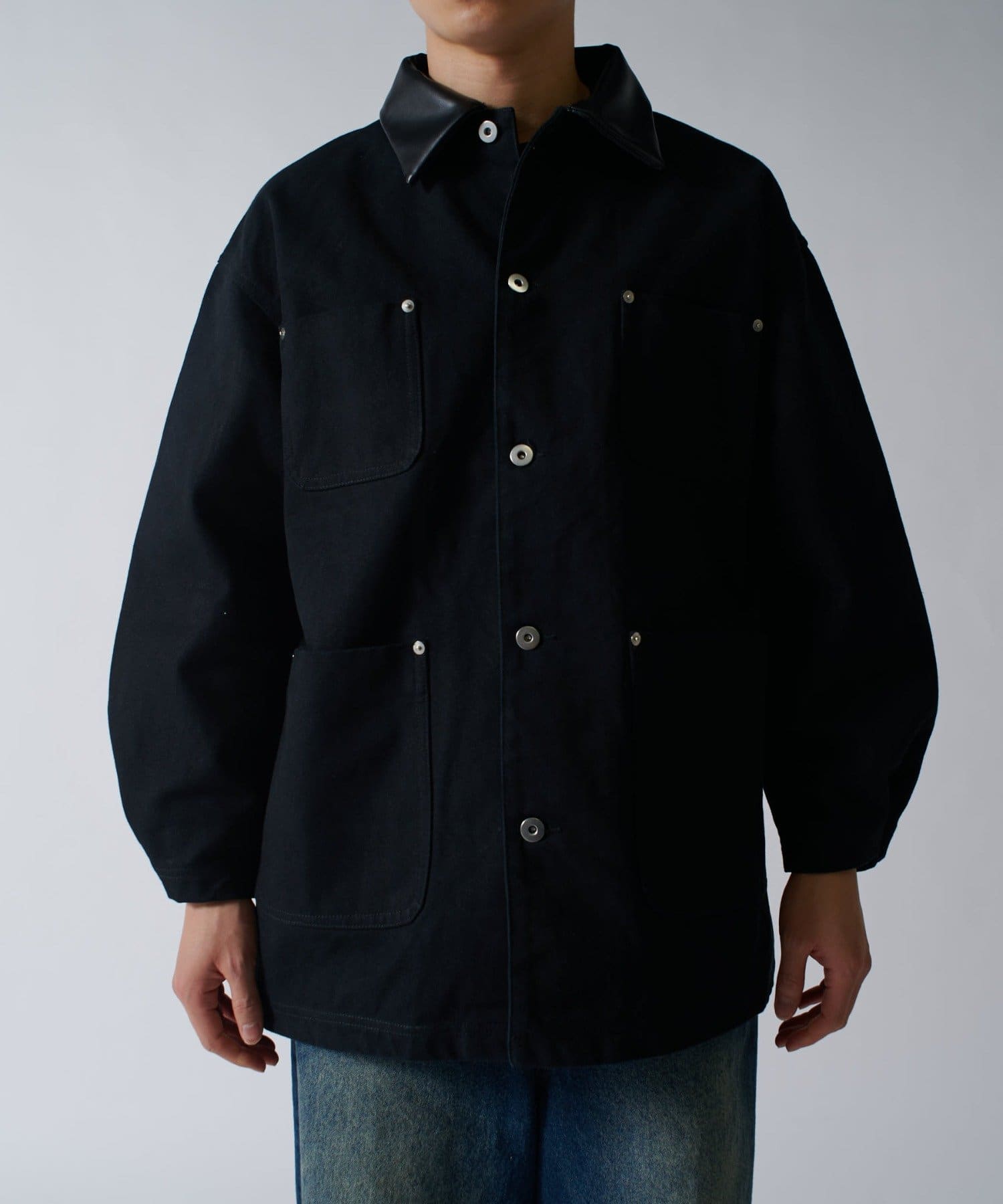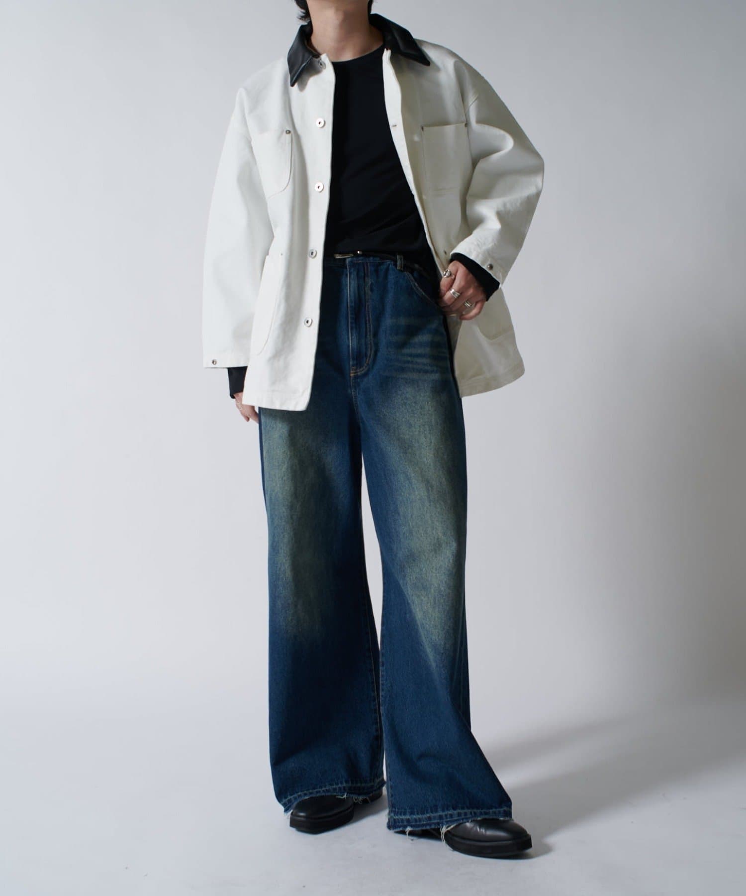 さらに、1ウォッシュをして着やすく柔らかい着心地に。フロントには4つのポケットを配置して、衿はレザー切替になっており上品な見た目に。カジュアルなアイテムですが、上品さを兼ね備えている、ユニークなアイテムです。