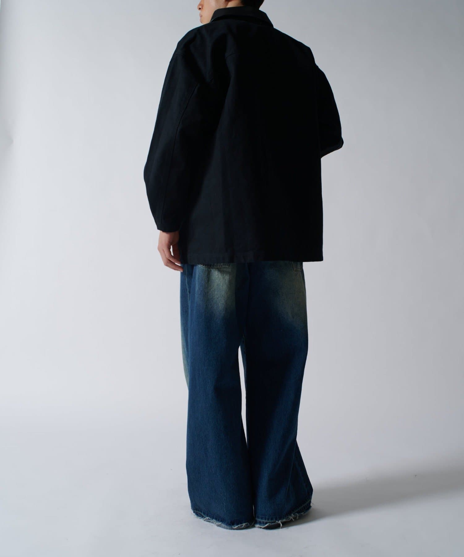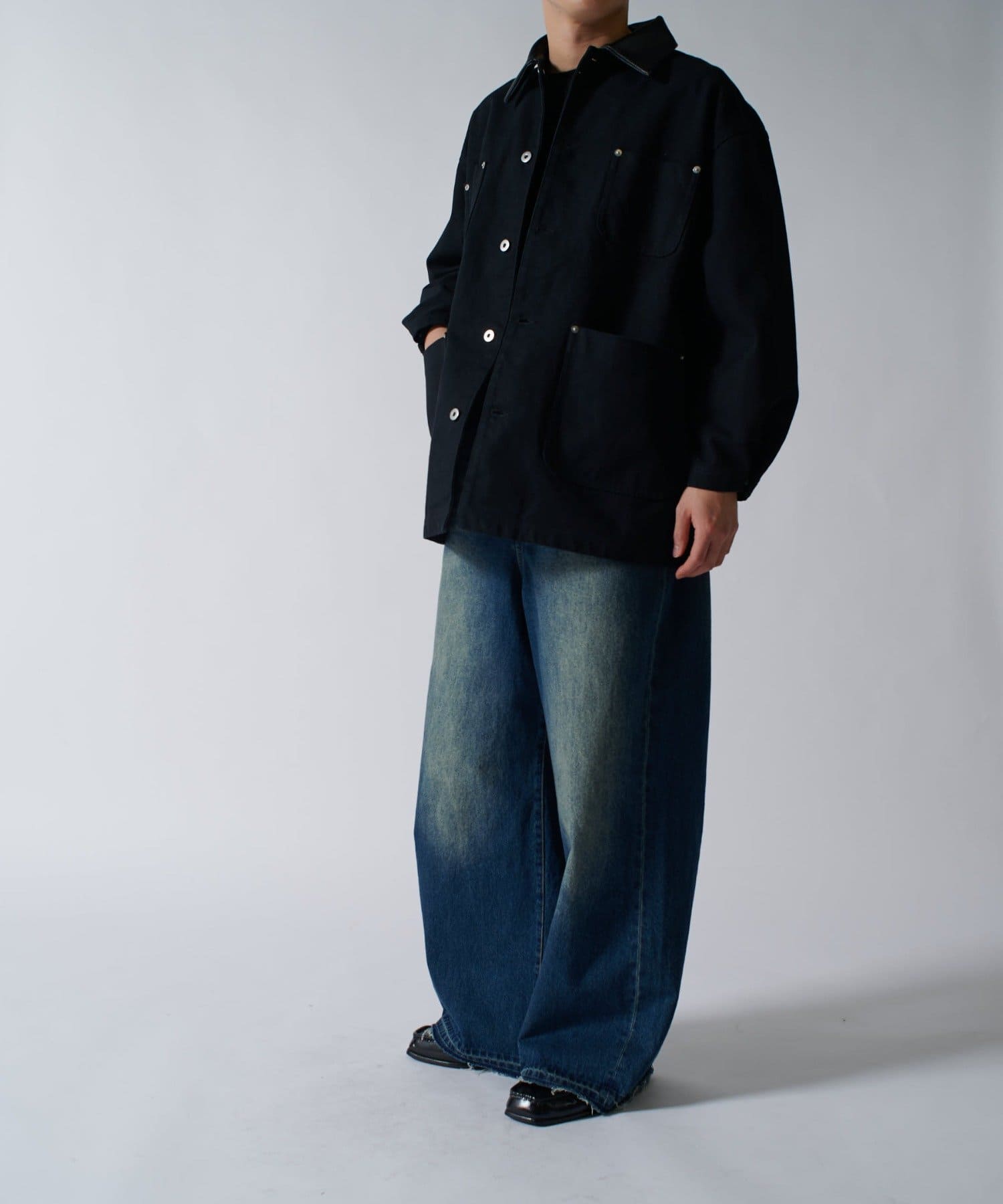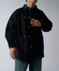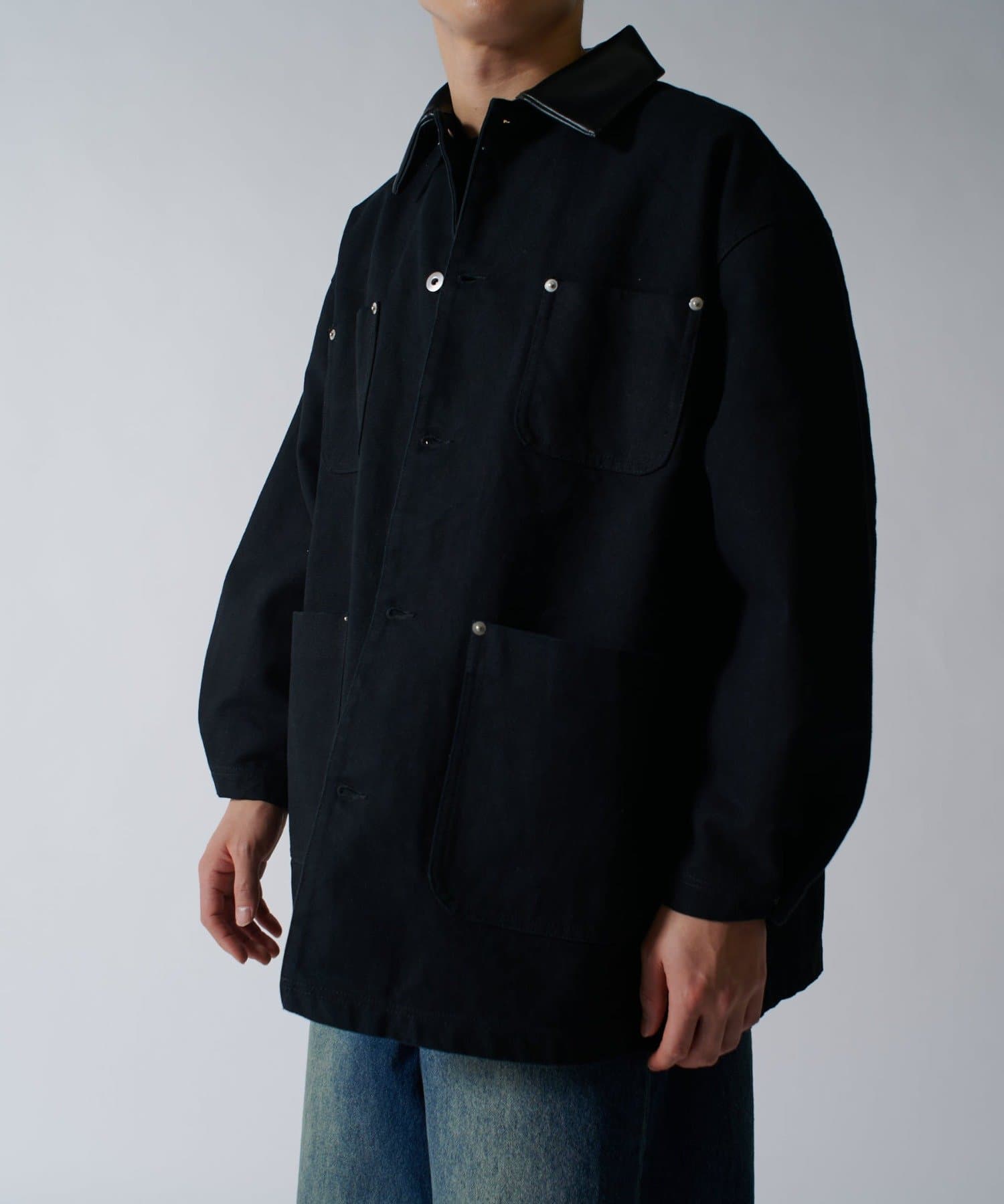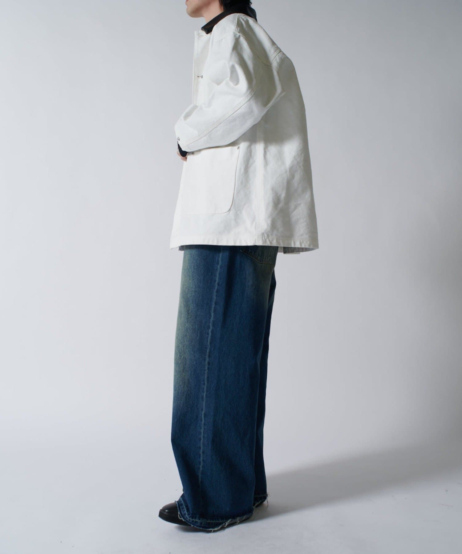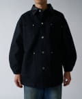 存在感のあるこちらのダックカバーオール。身幅と着丈を広くとったルーズフィットなサイズ感。カジュアルアイテムであるカーバーオールですが、あえて加工をせずに、クリーンな仕上げに。
