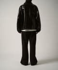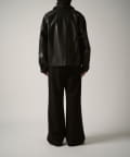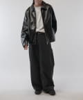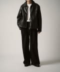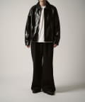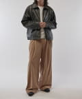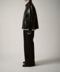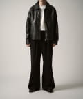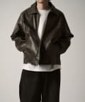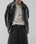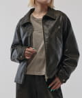 シングルライダースジャケットをモチーフに、コンパクトかつ、ややゆったりとしたサイズ感で仕上げたこちらのブルゾン。身幅、着丈ともにやや緩めで仕上げたすっきりとしたサイズ感。