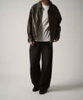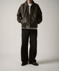 ヴィンテージライクな雰囲気のあるブルゾンなので、プルオーバーにワイドデニムやスラックスを組み合わせたキレイめカジュアルなスタイルがオススメ。