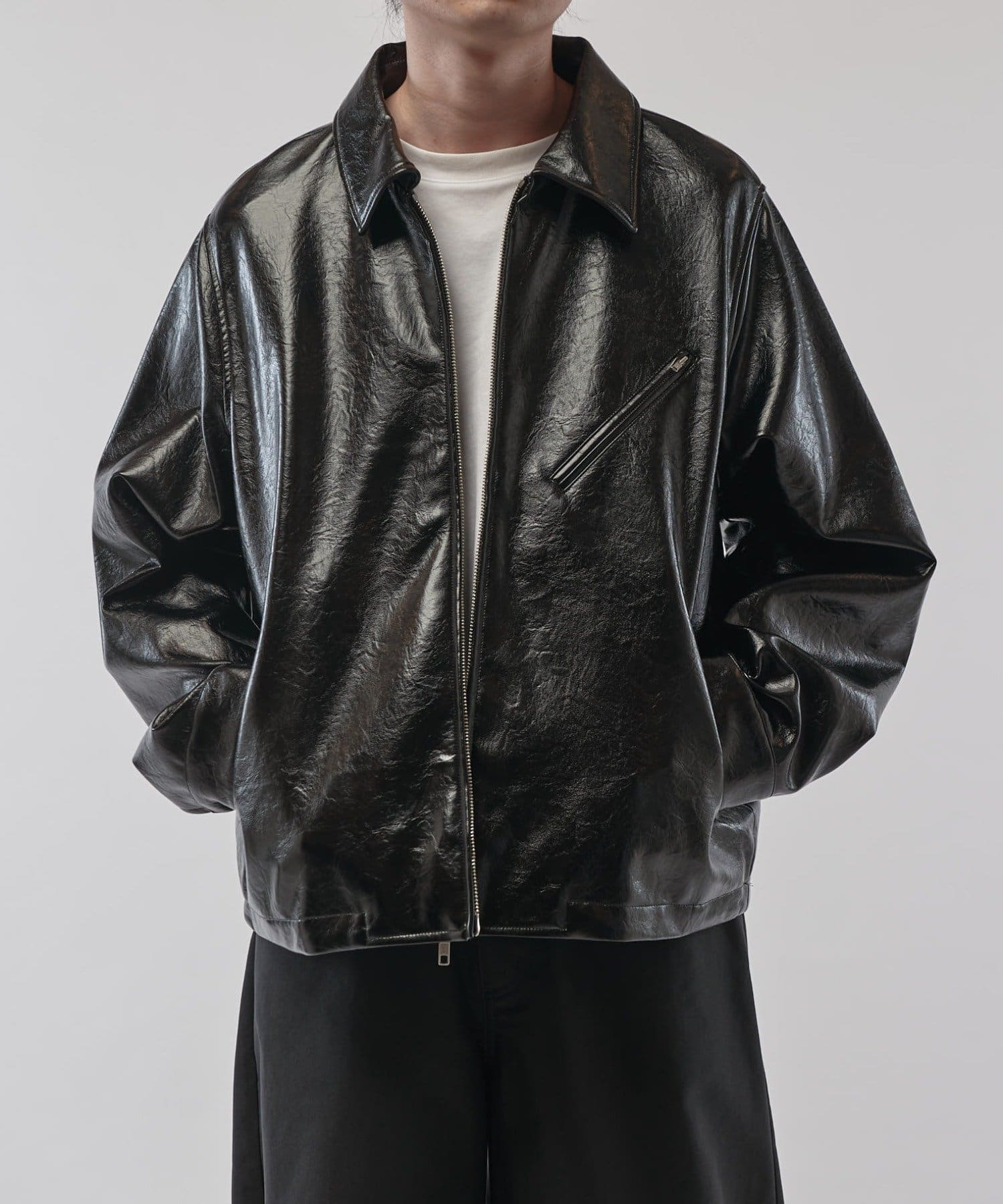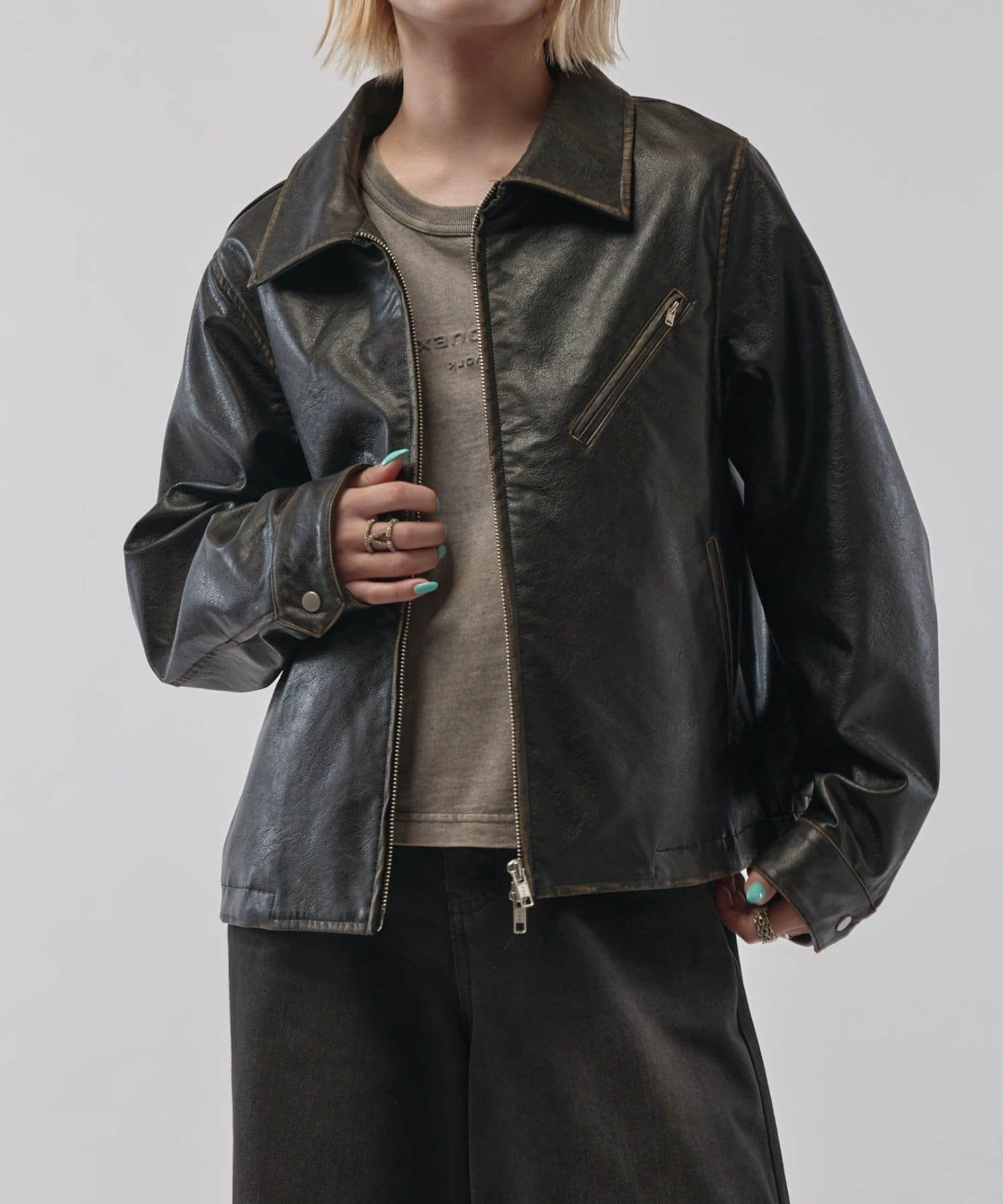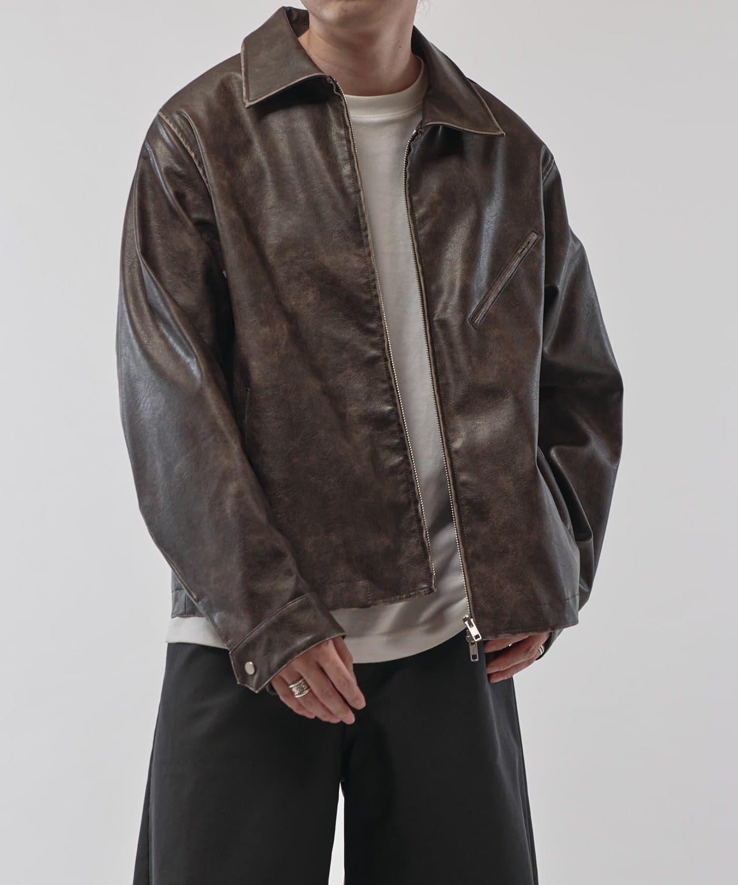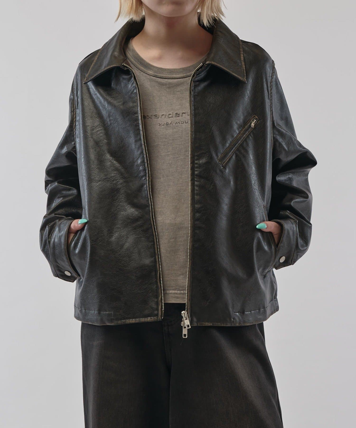 グランジシンセティックレザーZIPブルゾン