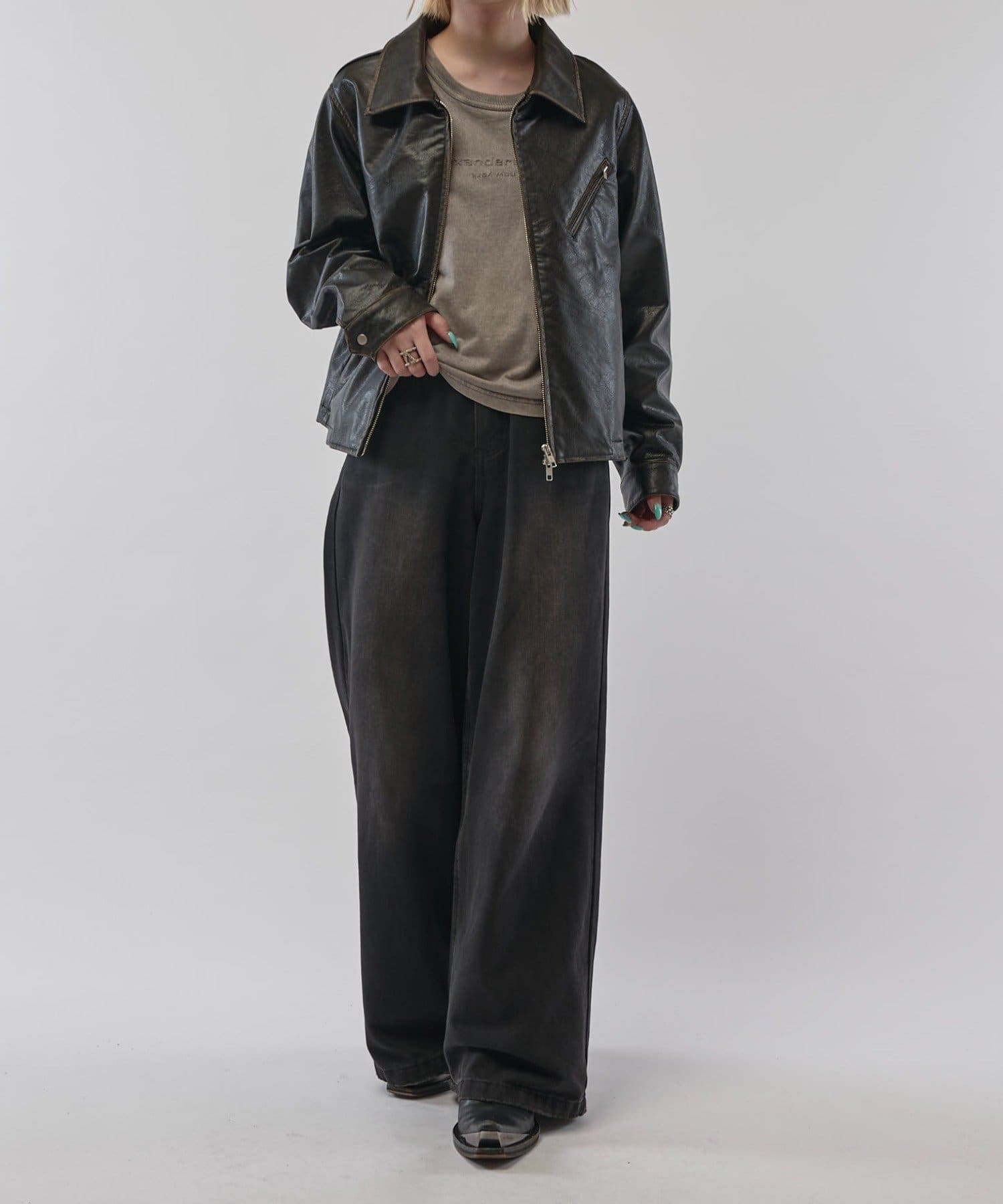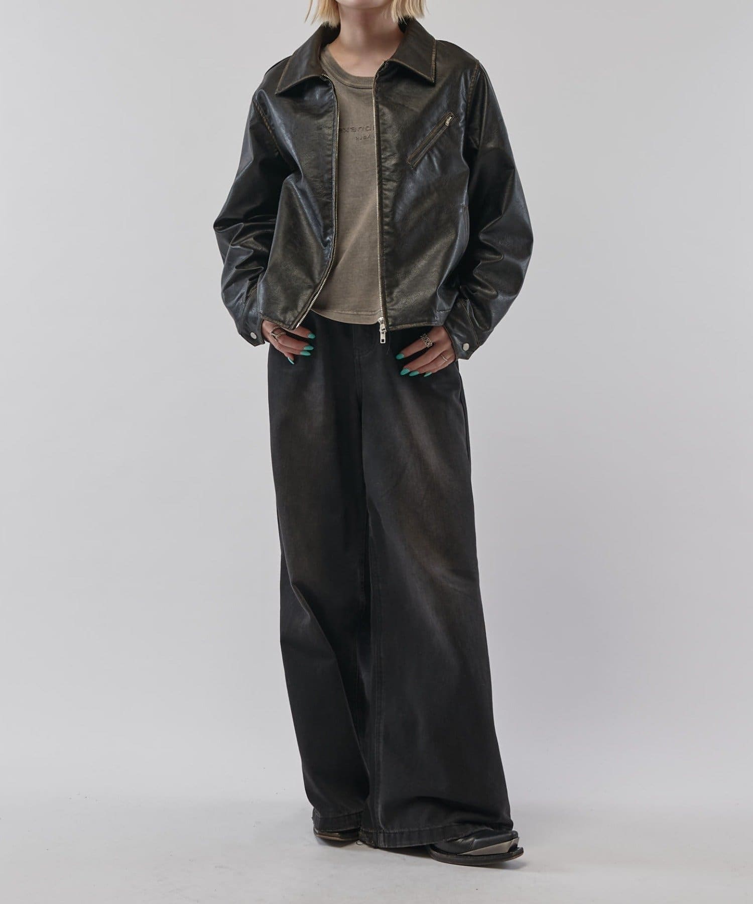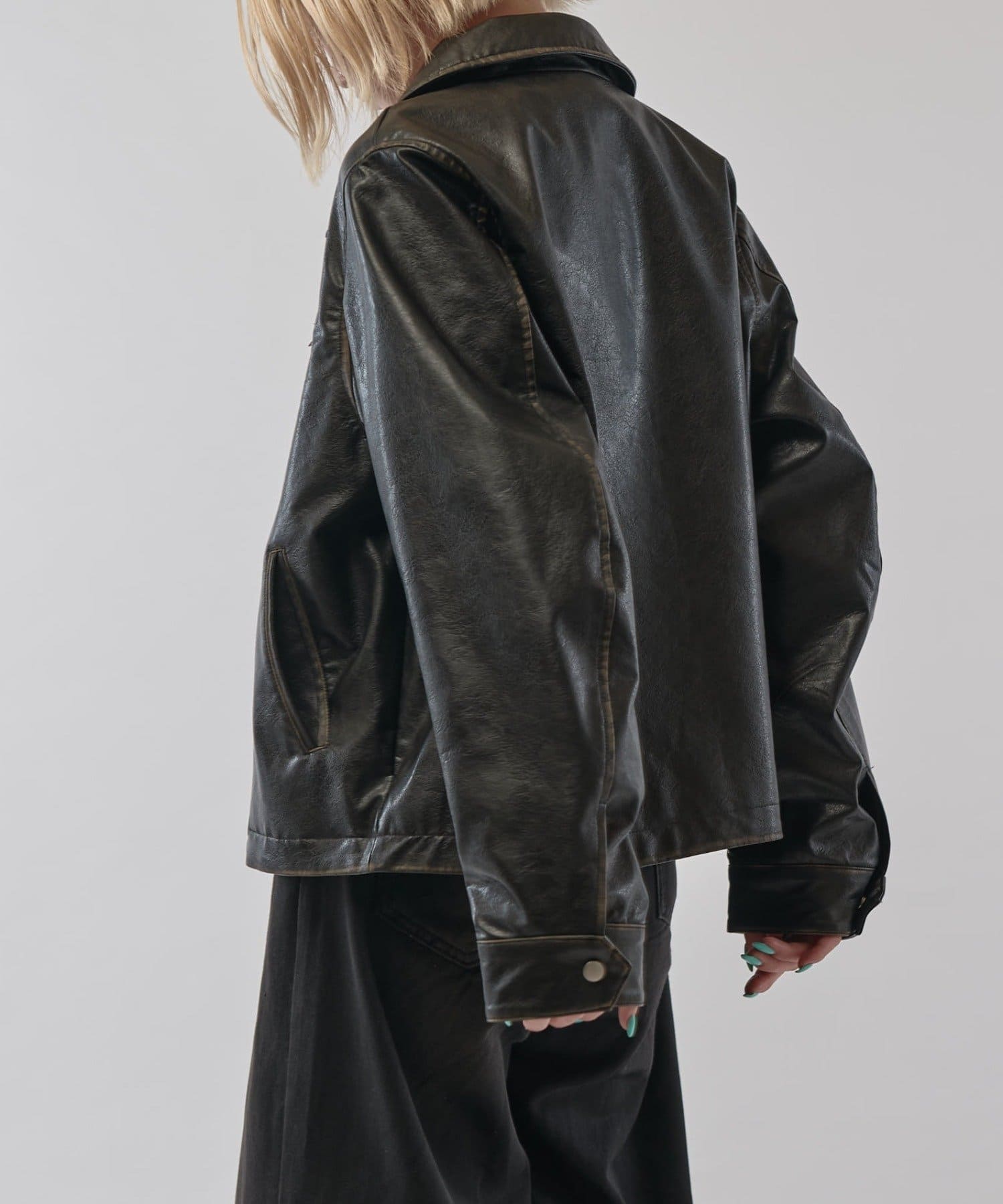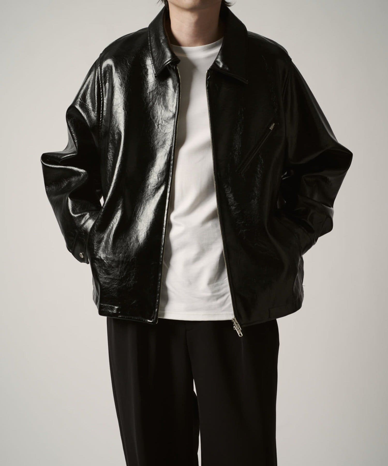 グランジシンセティックレザーZIPブルゾン