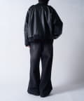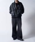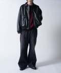 キレイめでシックな印象のフライトジャケットなので、シャツにワイドスラックスを組み合わせたキレイめなスタイルがオススメ。