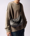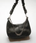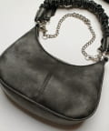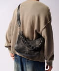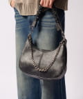 ヴィンテージライクな仕上がりのハーフムーン型のバッグ。チェーン部分は持ち手としてもアクセントとしてもお使い頂けます。長めのストラップ部分はショルダーバッグとしてお使い頂けます。