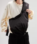 HYCO には、内側セキュリティポケットを備えたメインコンパートメント1つとストラップの下のサイドポケットがあります。撥水性があり、ソフトな手触りでセミマットな仕上がりの「スムースブラック」ナイロン生地を使用しています。