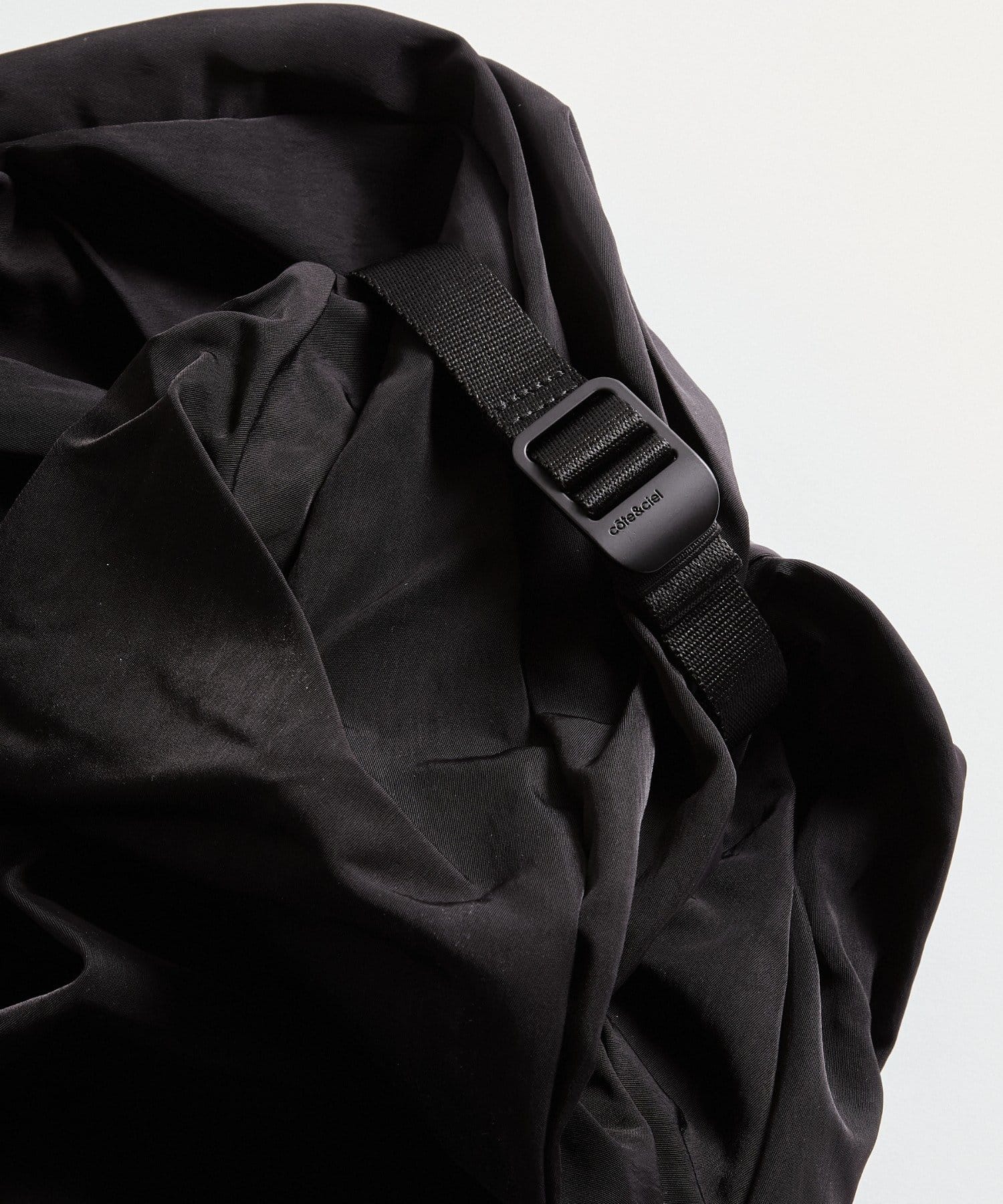HYCO には、内側セキュリティポケットを備えたメインコンパートメント1つとストラップの下のサイドポケットがあります。撥水性があり、ソフトな手触りでセミマットな仕上がりの「スムースブラック」ナイロン生地を使用しています。