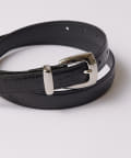 光沢のある型押しレザーが特徴的なこちらのベルト。