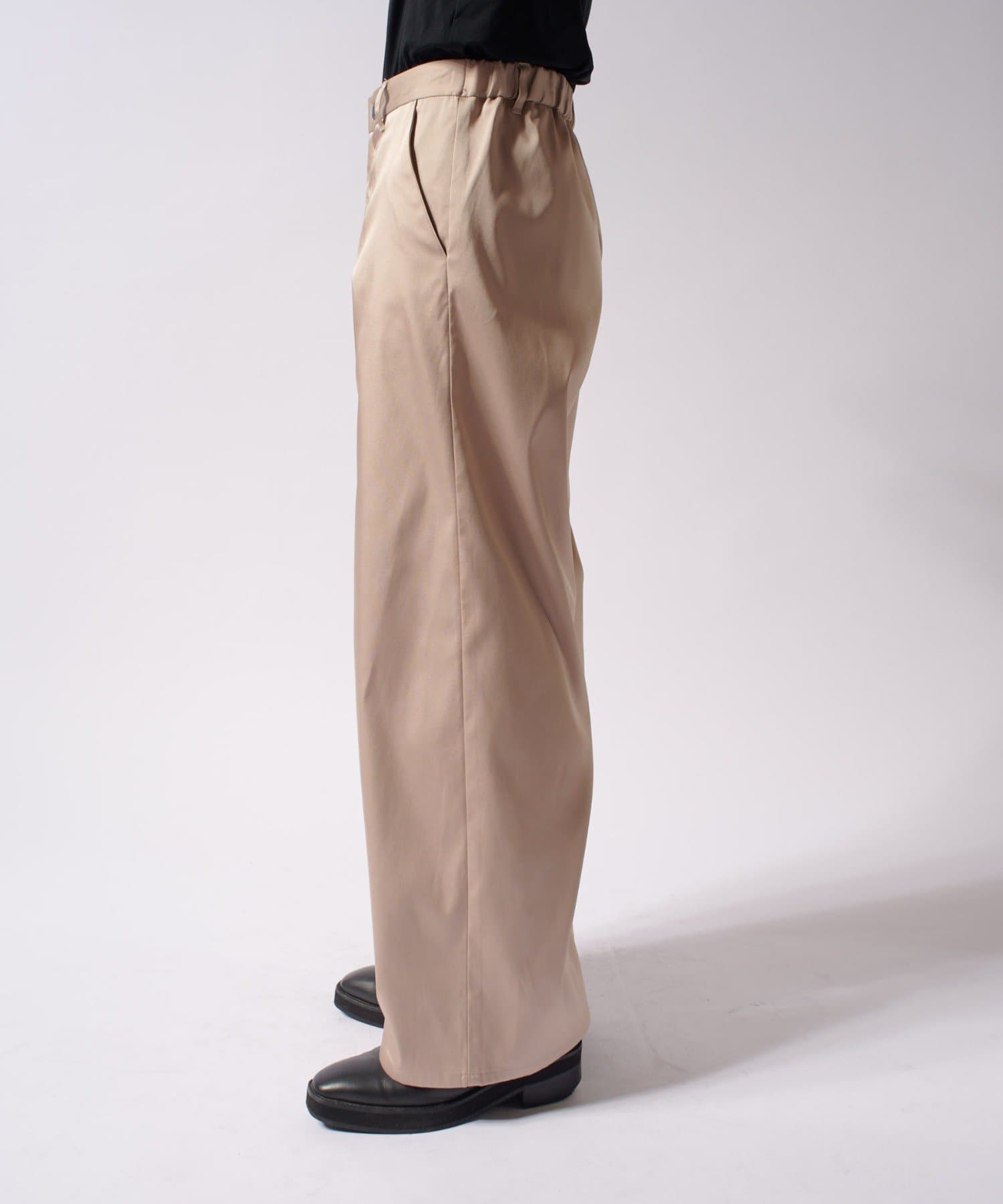 上品かつイージーな見ためのこちらのワイドレッグパンツ。ウエストから膝にかけてストンと落ち、膝下からやや緩やかに広がるワイドレッグシルエット。