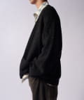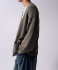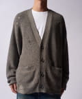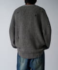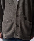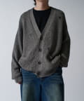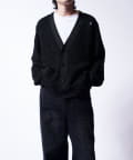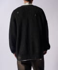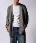 エレガンスで、カジュアルな雰囲気のこちらのカーディガン。90sのカーディガンをベースに着丈に対して身幅を広くとったややルーズフィットなシルエット。サイズ部にはダメージデザインを配置し、さりげないアクセントに。一枚で存在感のあるカーディガンです。