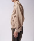 襟はカットオフデザインになっており、さりげないアクセントに。シンプルですが、上品な見た目のブルゾンです。
