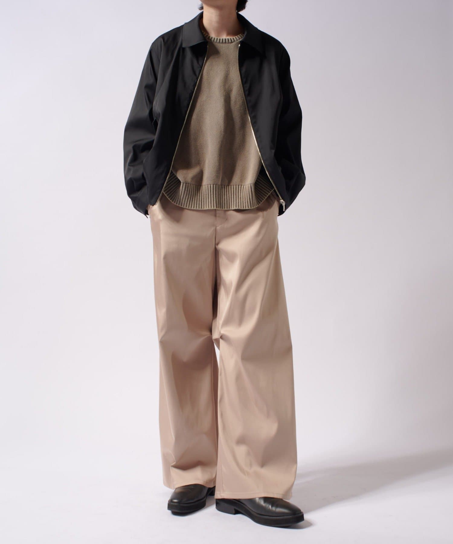 また同素材で展開しておりますハイツイストワイドッグパンツと組み合わせたセットアップスタイルもオススメ。