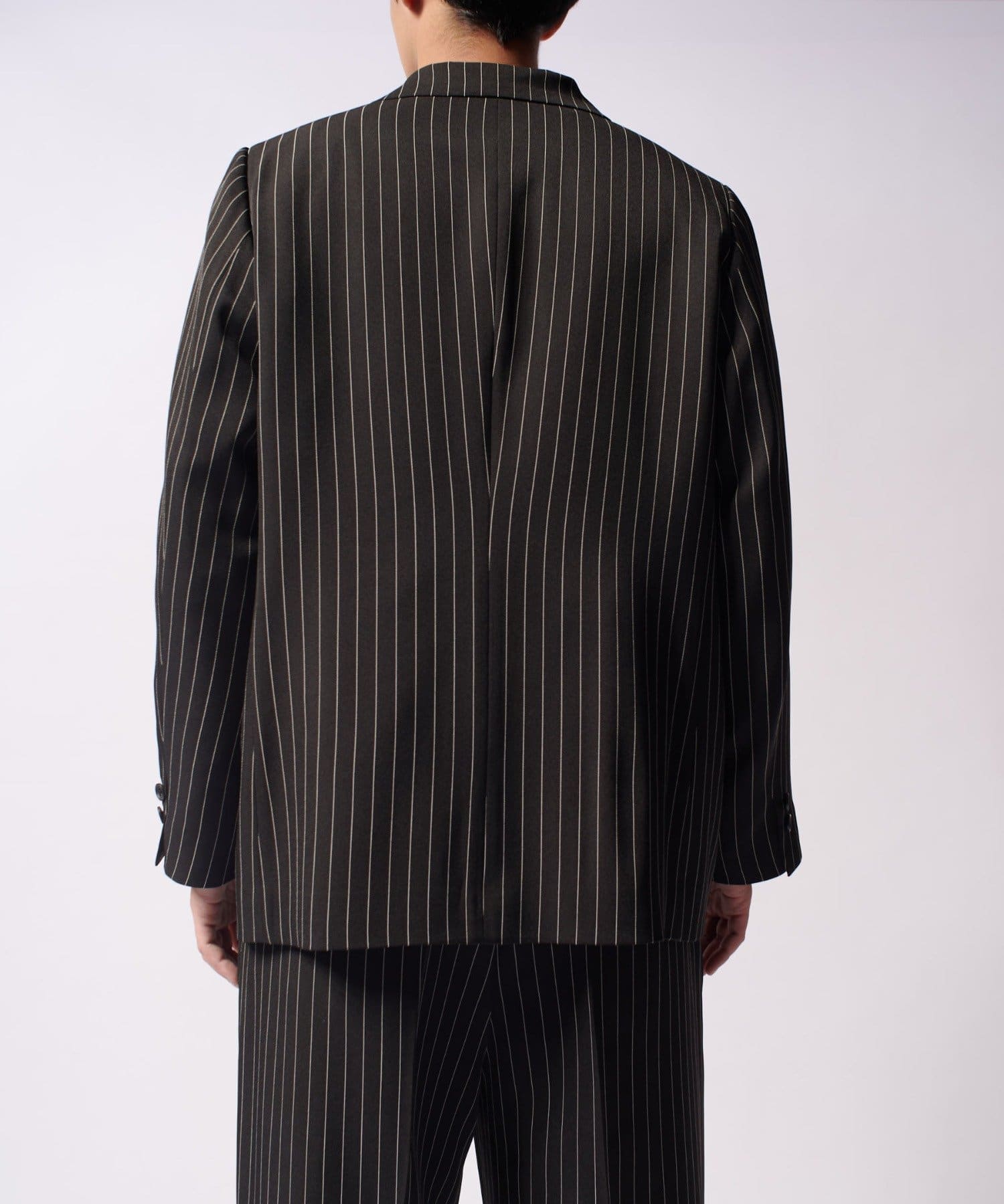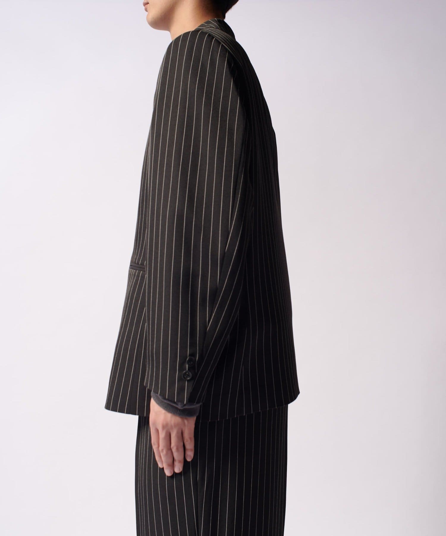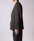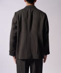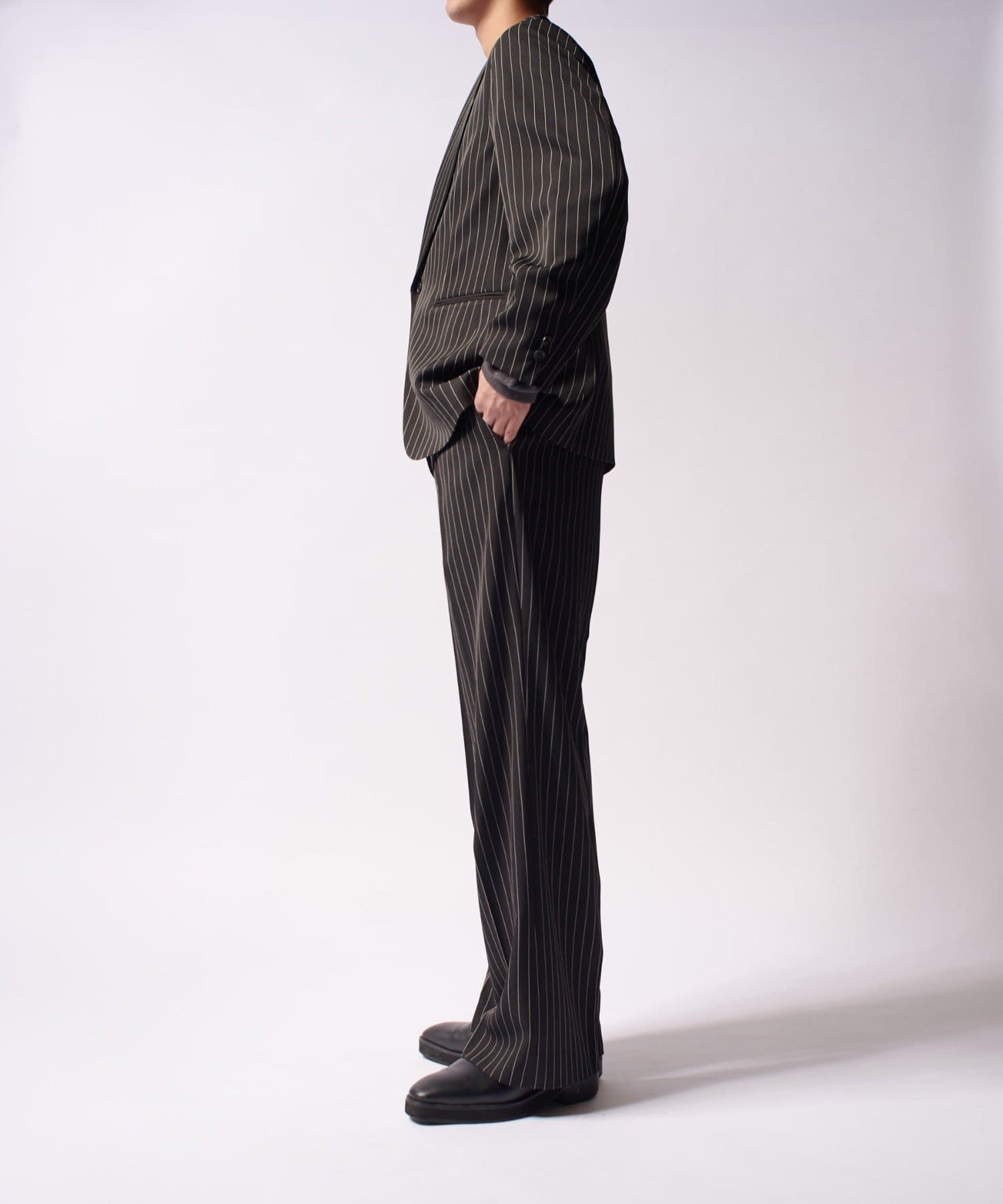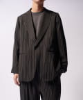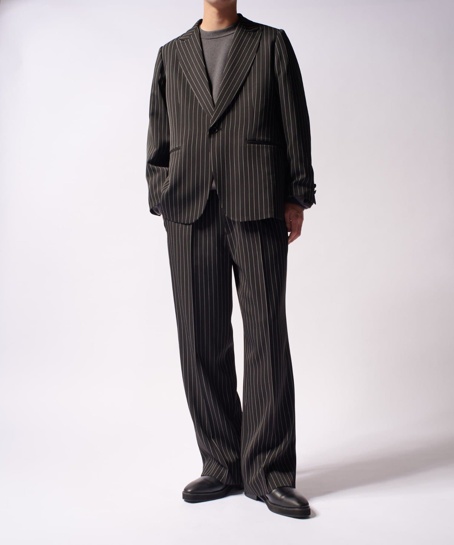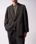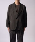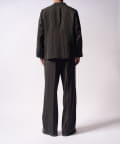 今回は上品な見た目ながらも心地よく落ち着きのある雰囲気で着られるセットアップシリーズです。コンパクトな見た目のこちらのジャケット。コンパクトながらも、身幅とアームホールにややゆとりを持たせて、着やすくしております。フロントのボタンは通常のボタンよりもやや太くしてアクセントに。ラペルはレトロに大きめのラペルを採用。