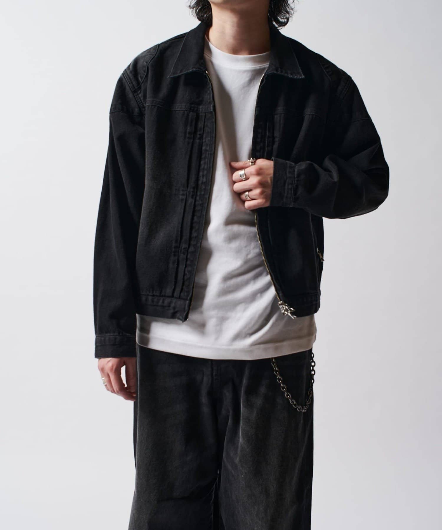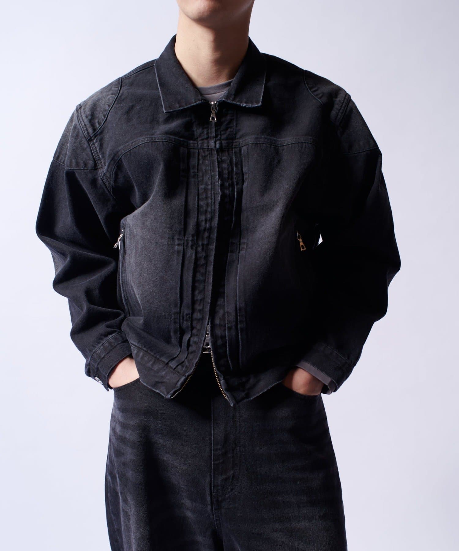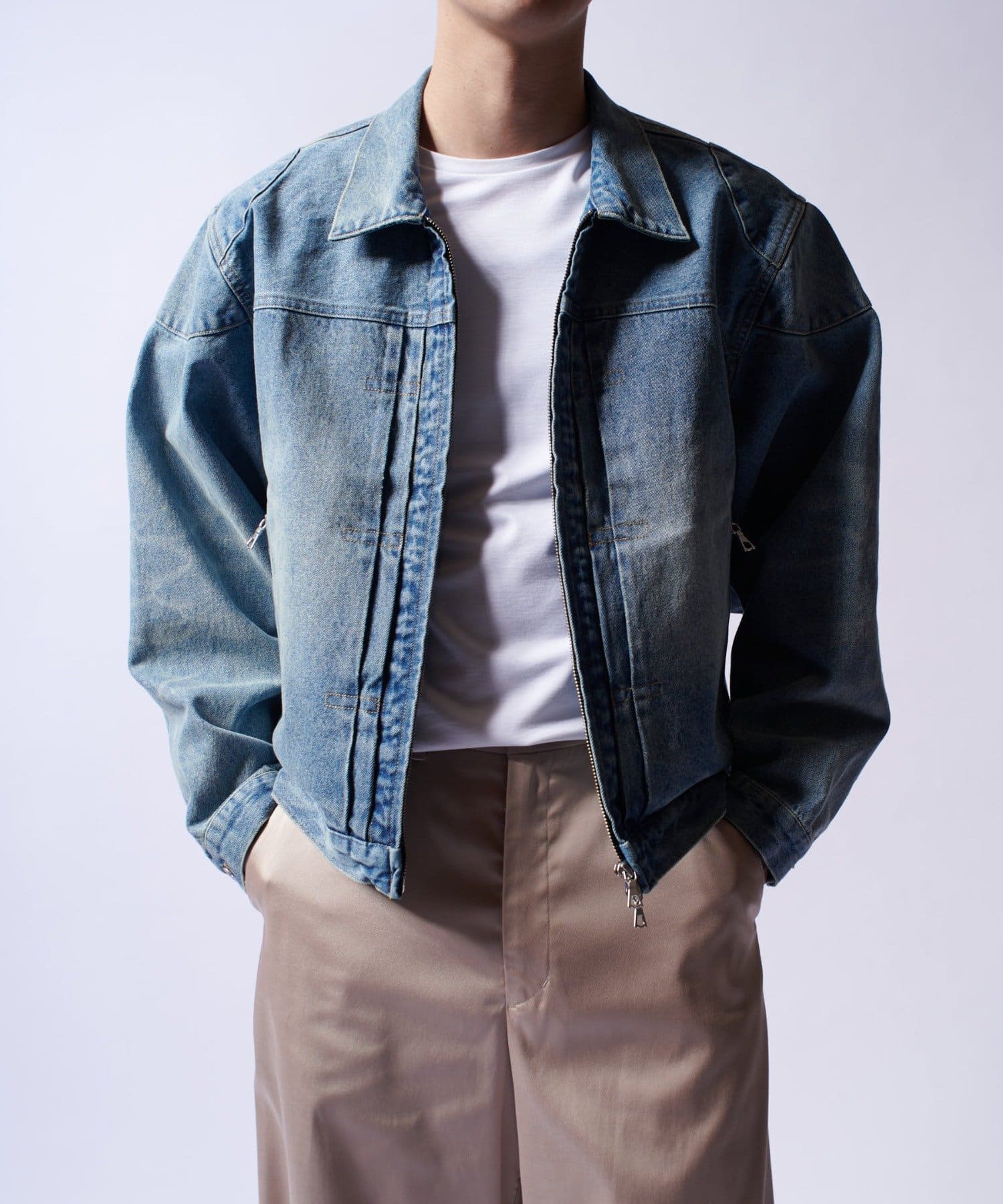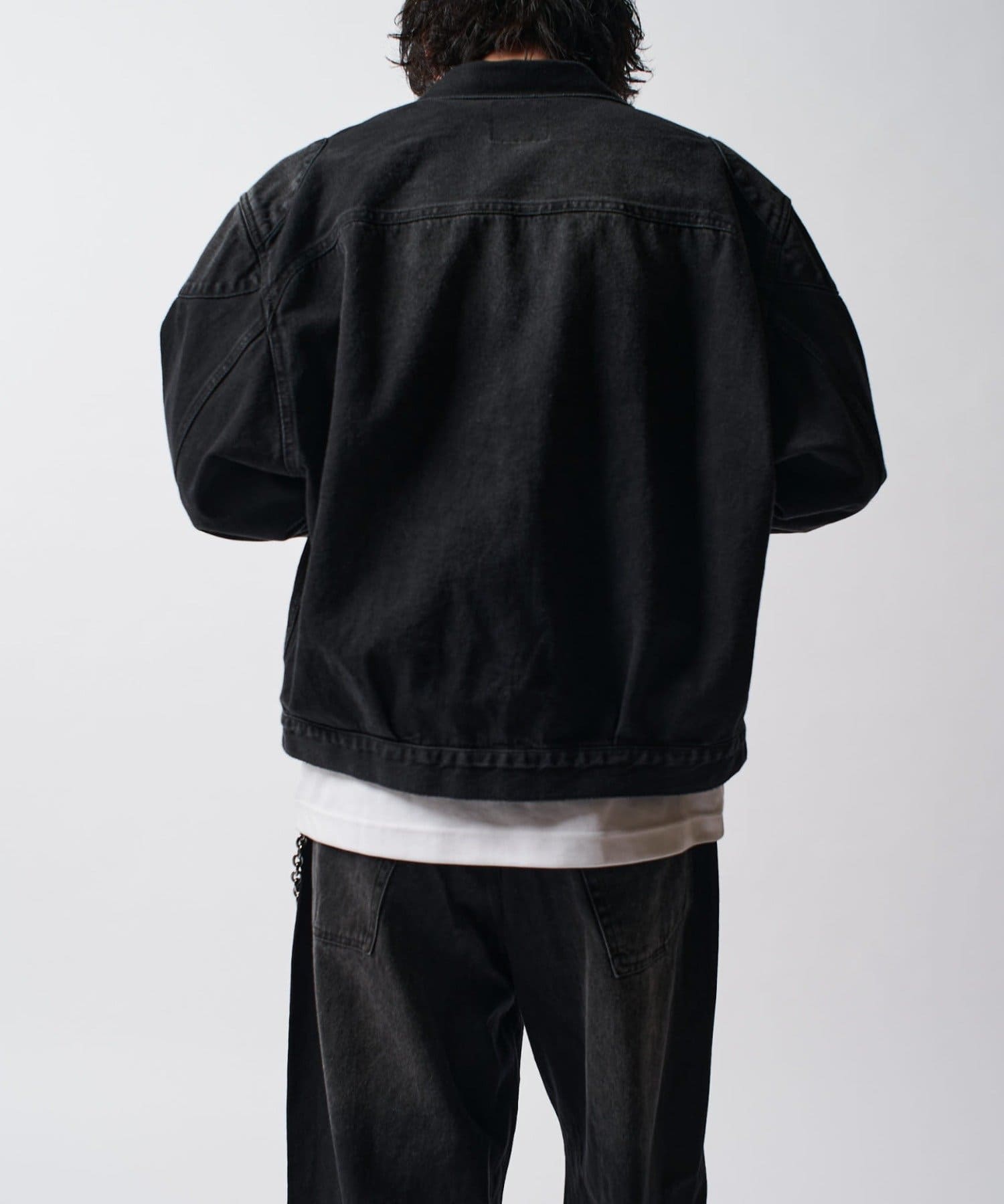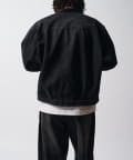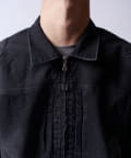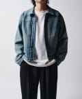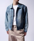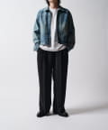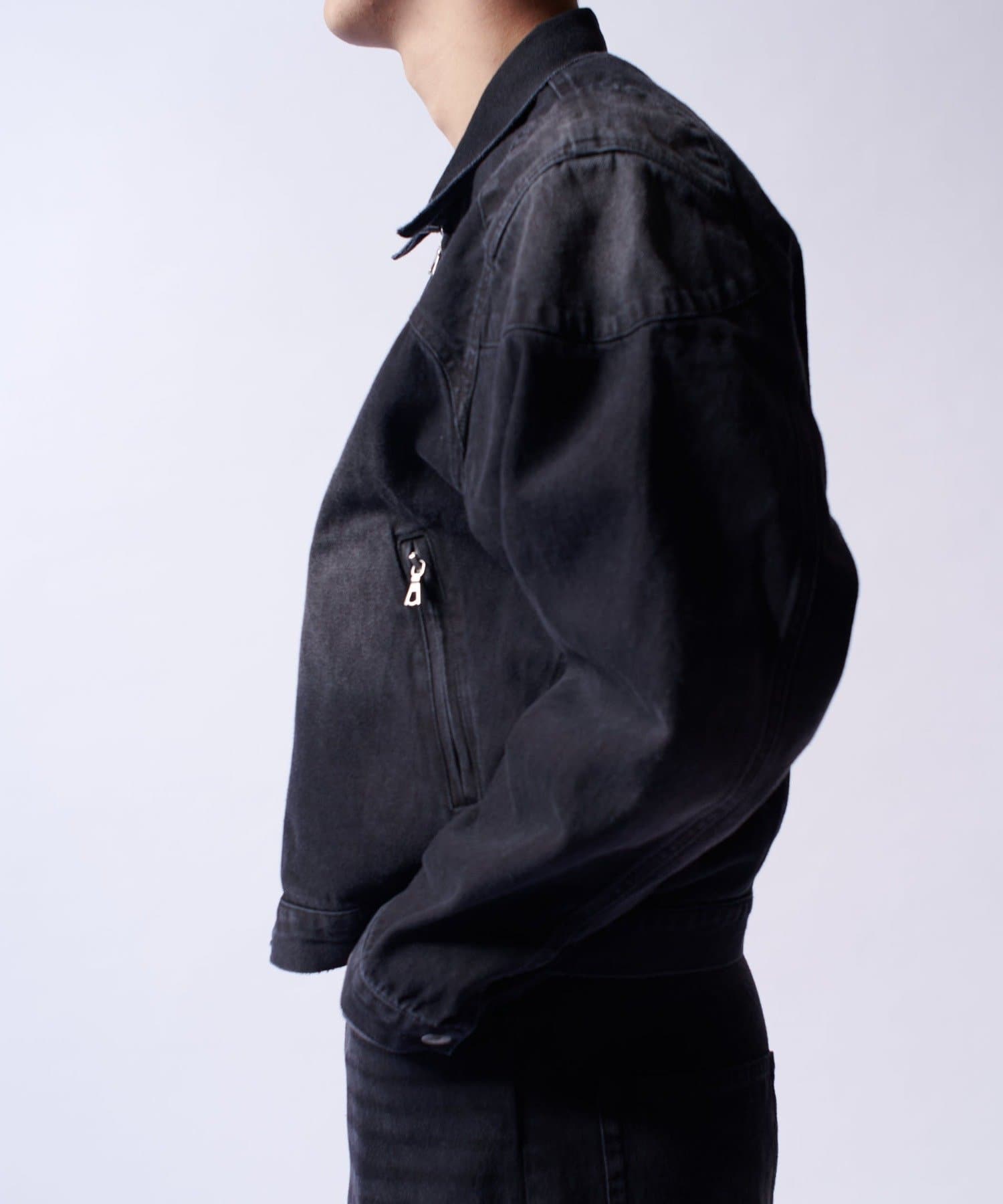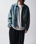 デニムジャケットをZIPブルゾンに仕上げたユニークなデザインのブルゾン。着丈に対して身幅を広くとった、ややルーズなシルエット。