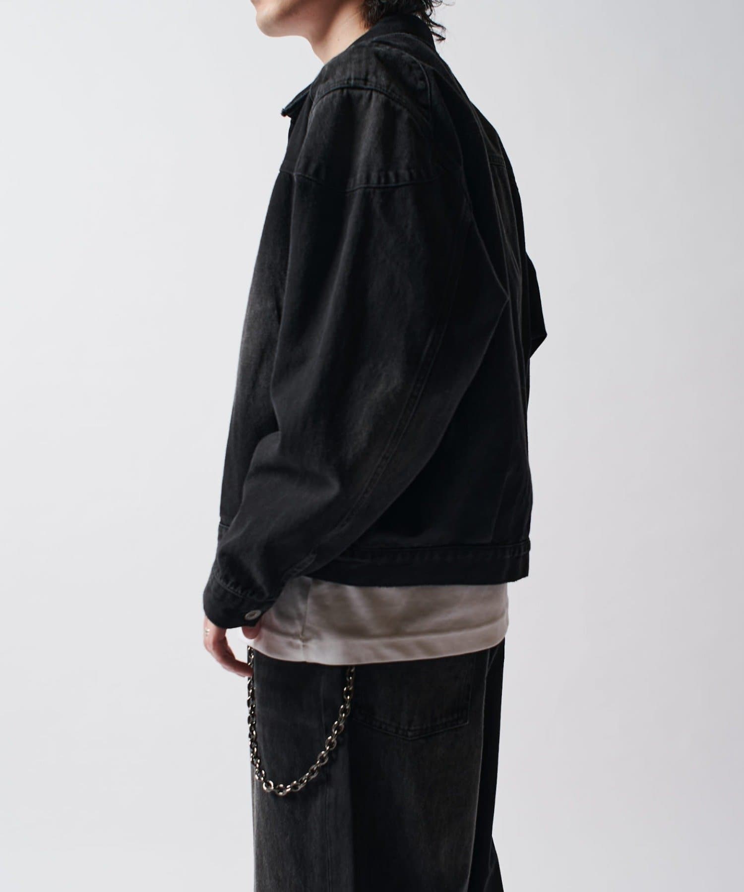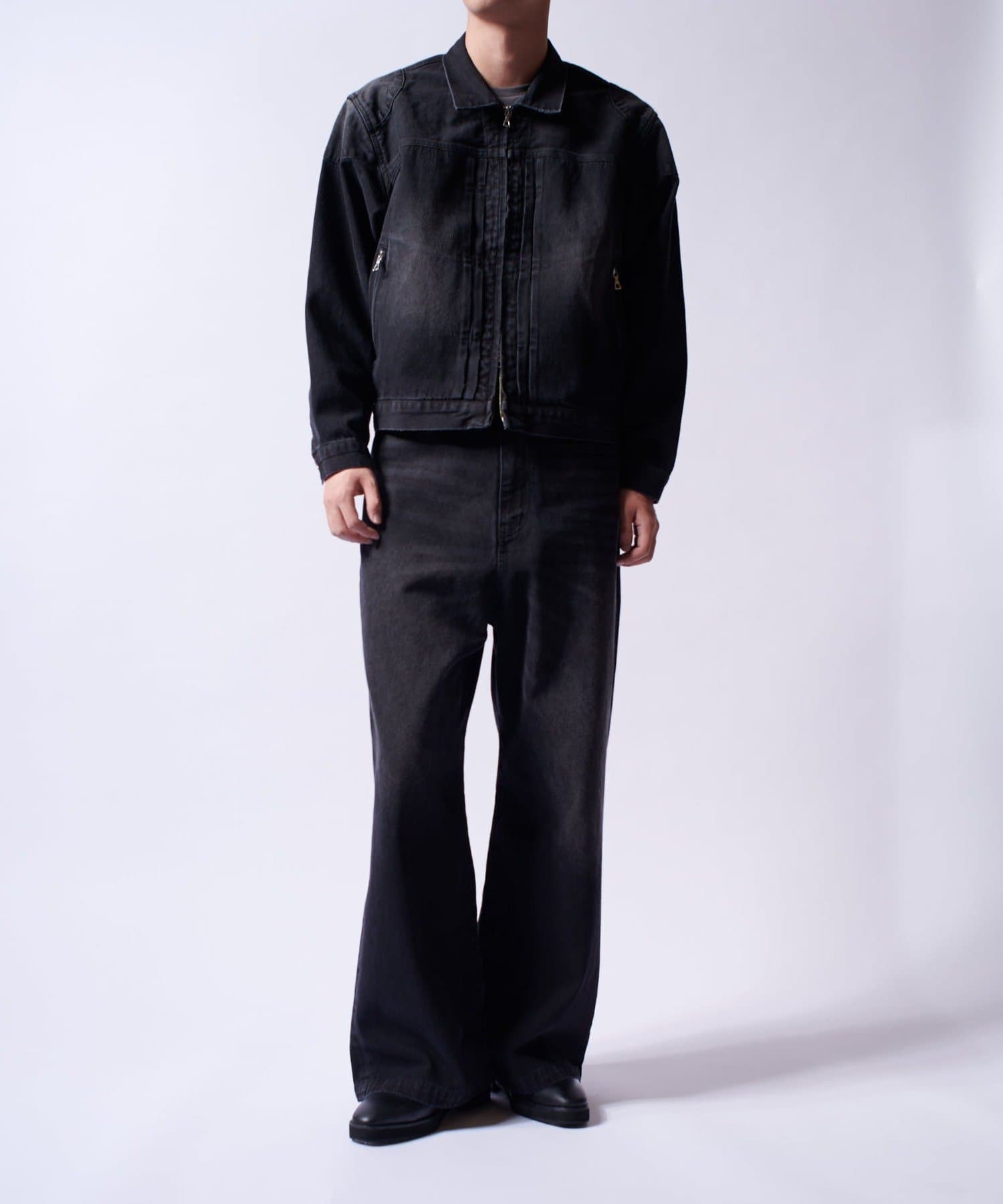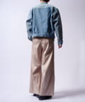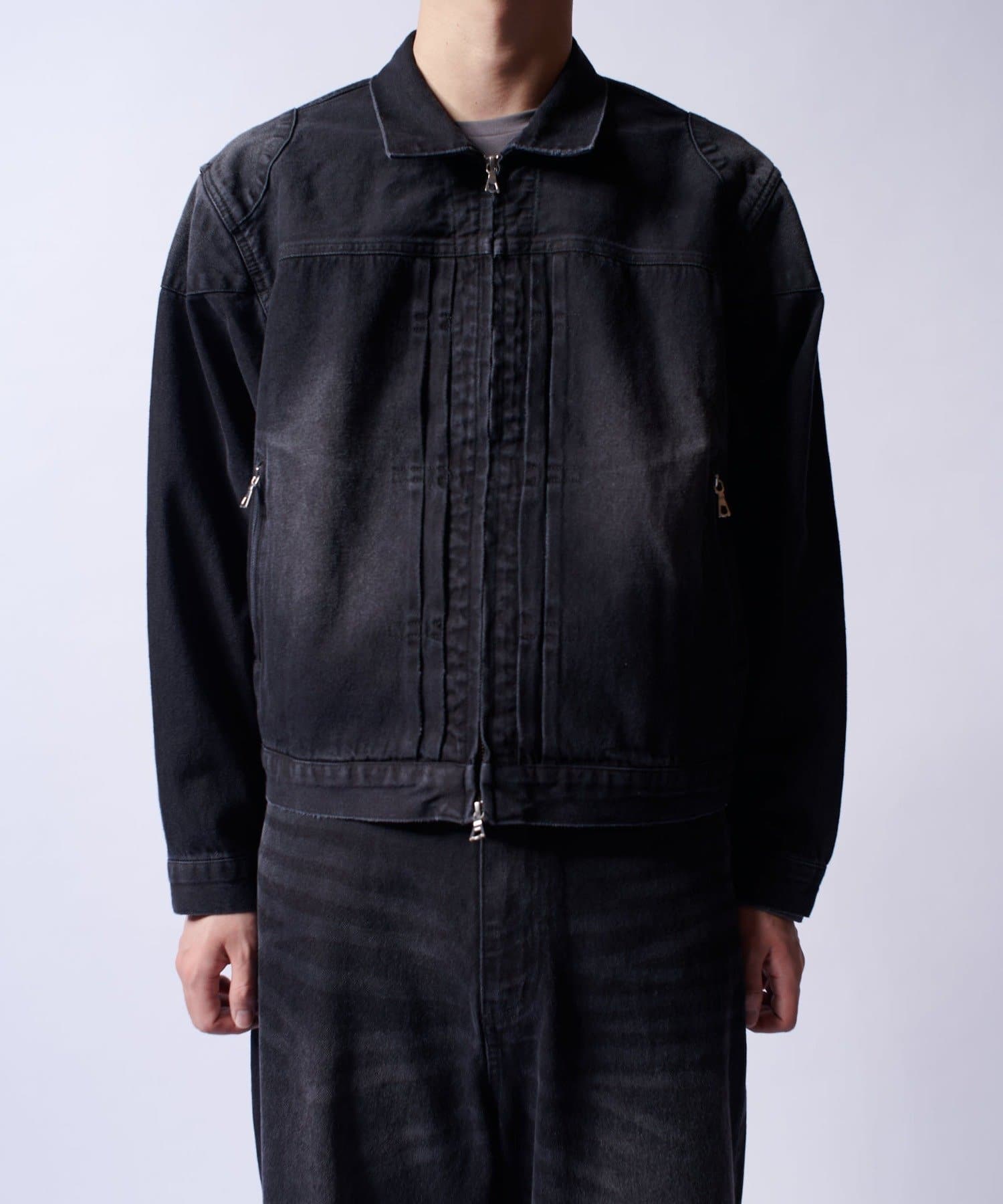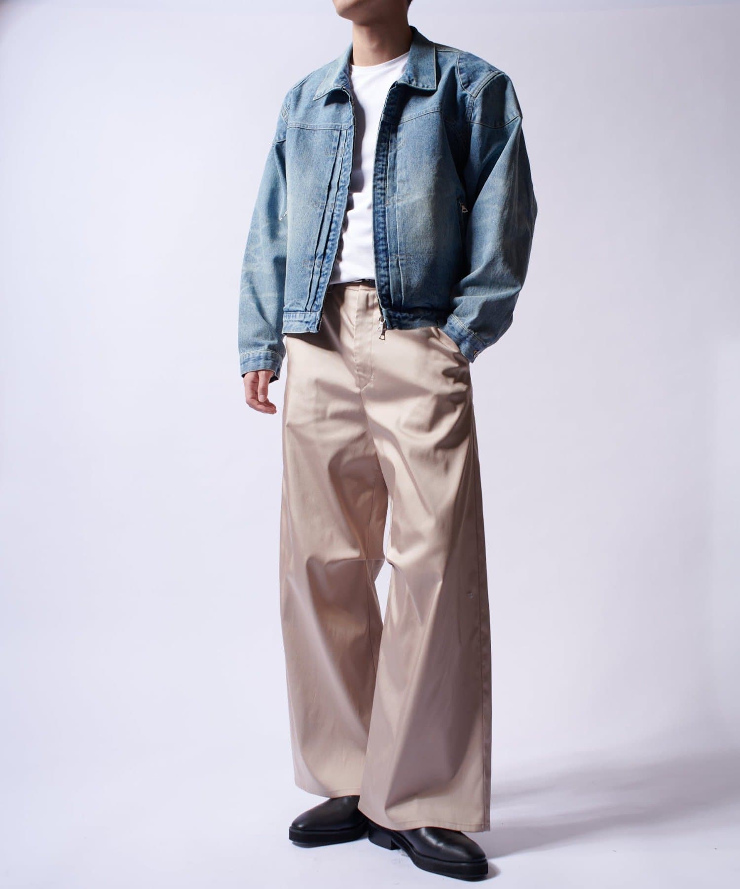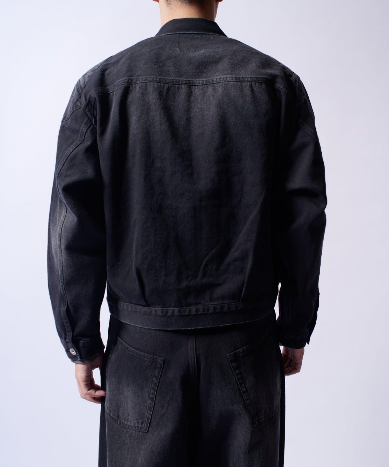 デニムジャケットをZIPブルゾンに仕上げたユニークなデザインのブルゾン。着丈に対して身幅を広くとった、ややルーズなシルエット。