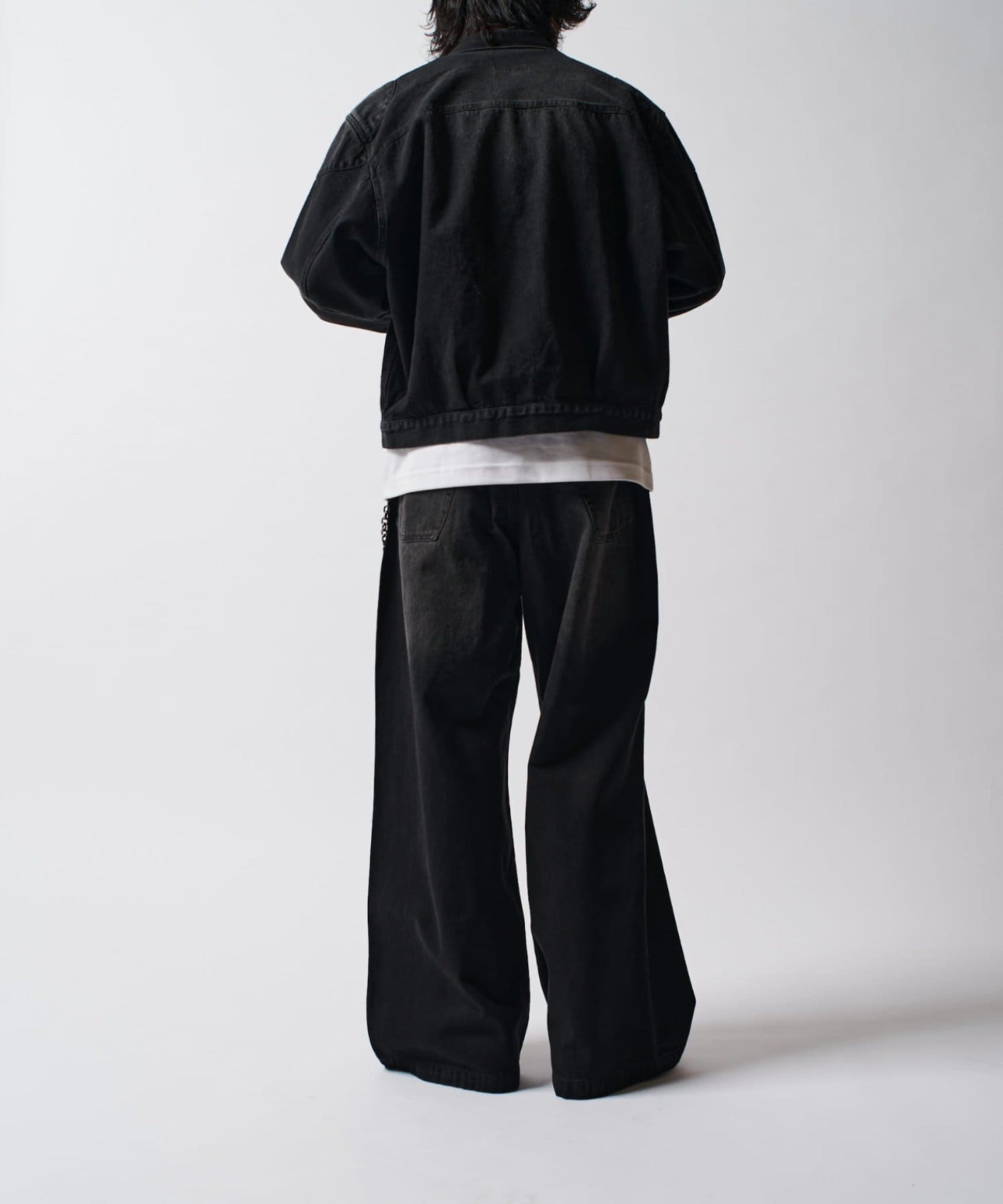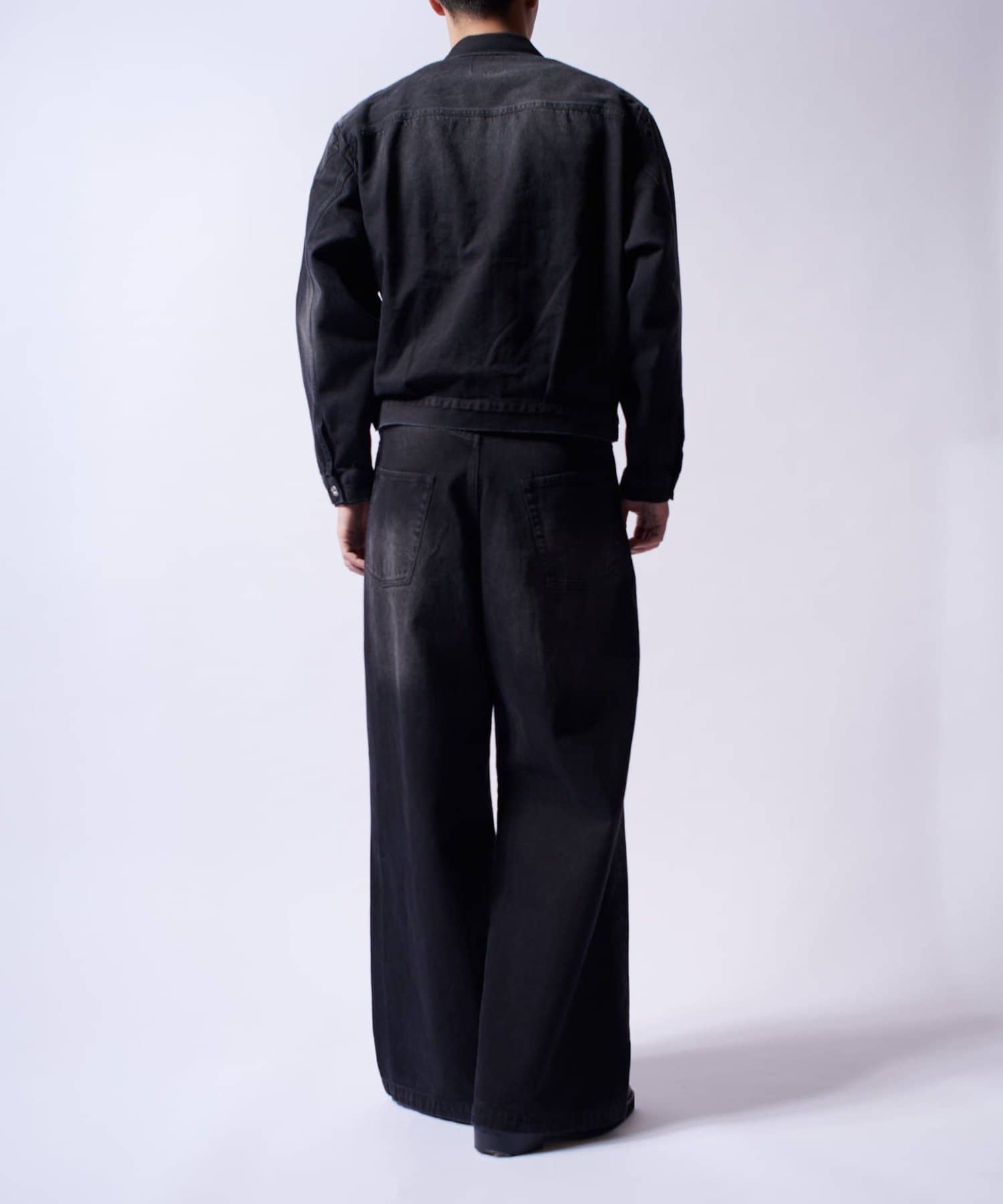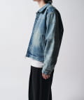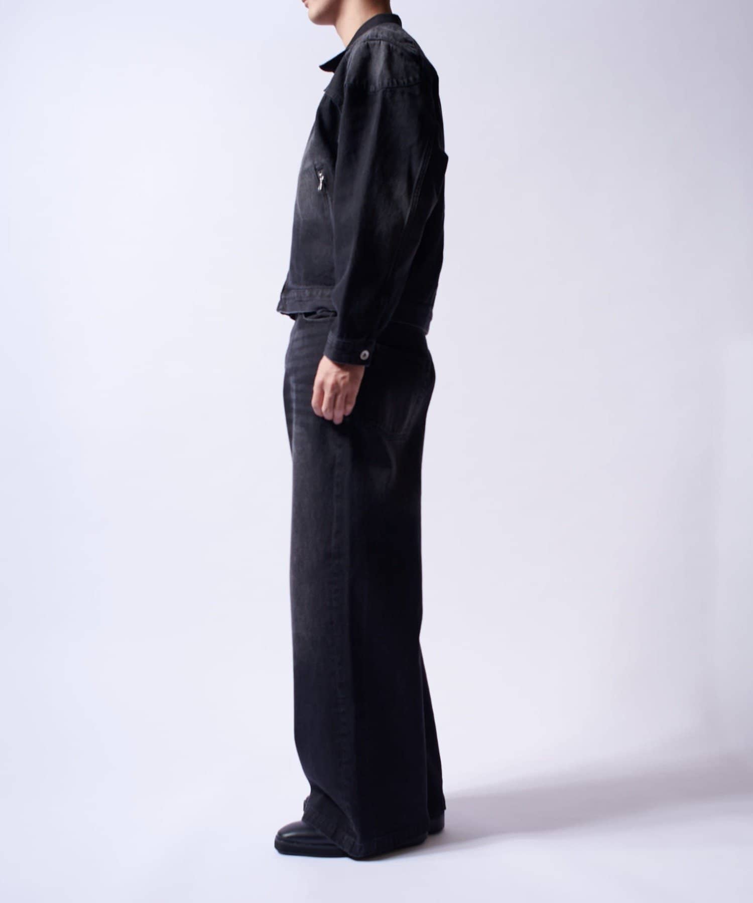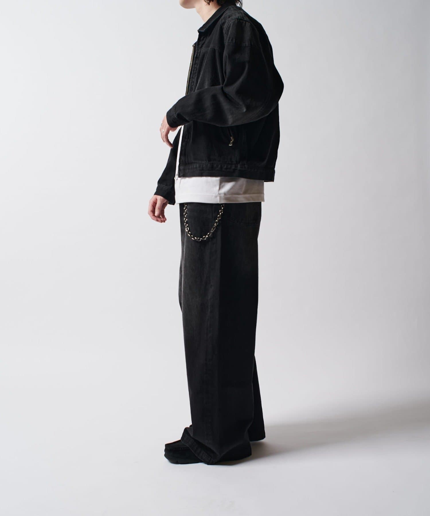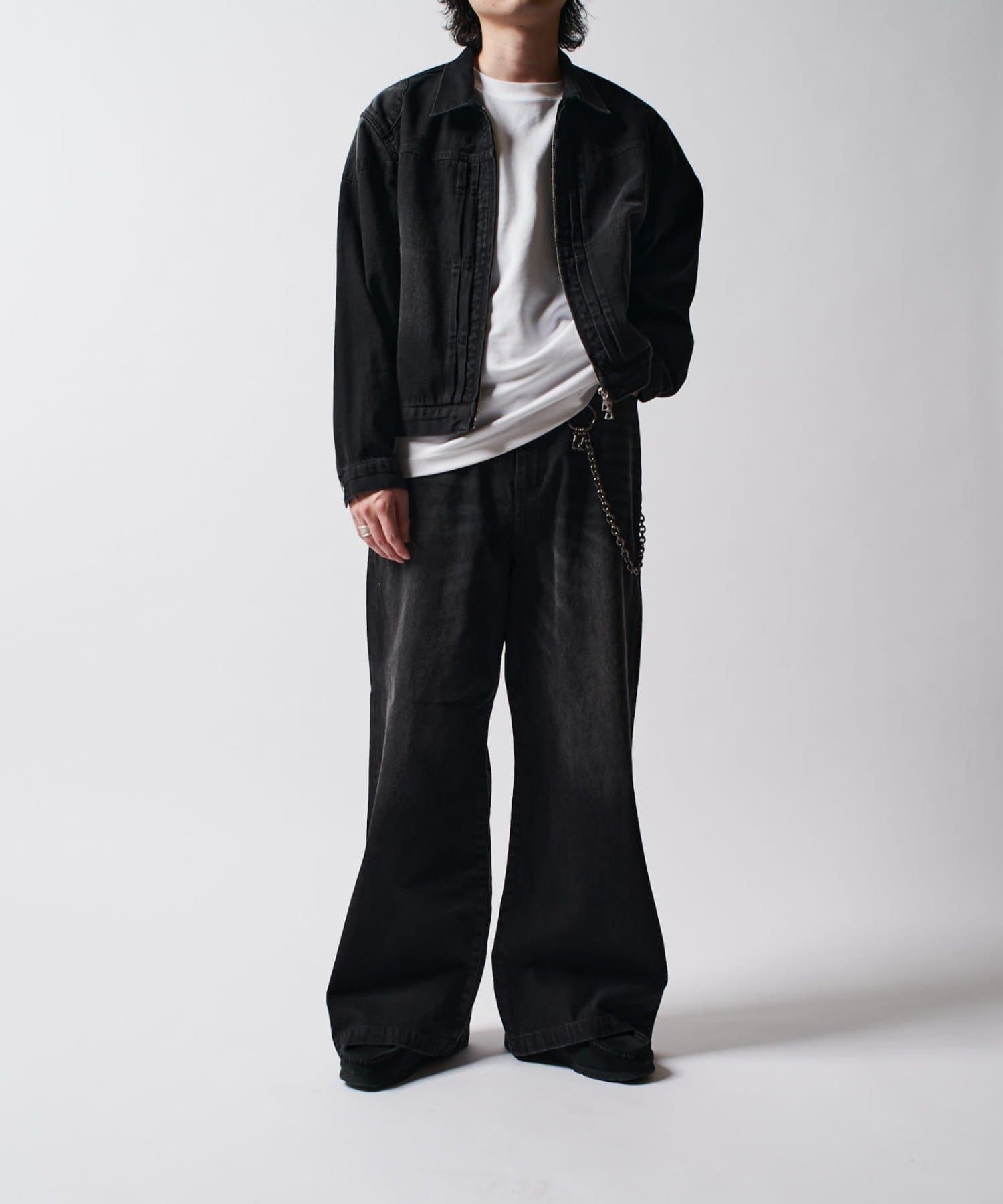 デニムジャケットをZIPブルゾンに仕上げたユニークなデザインのブルゾン。着丈に対して身幅を広くとった、ややルーズなシルエット。