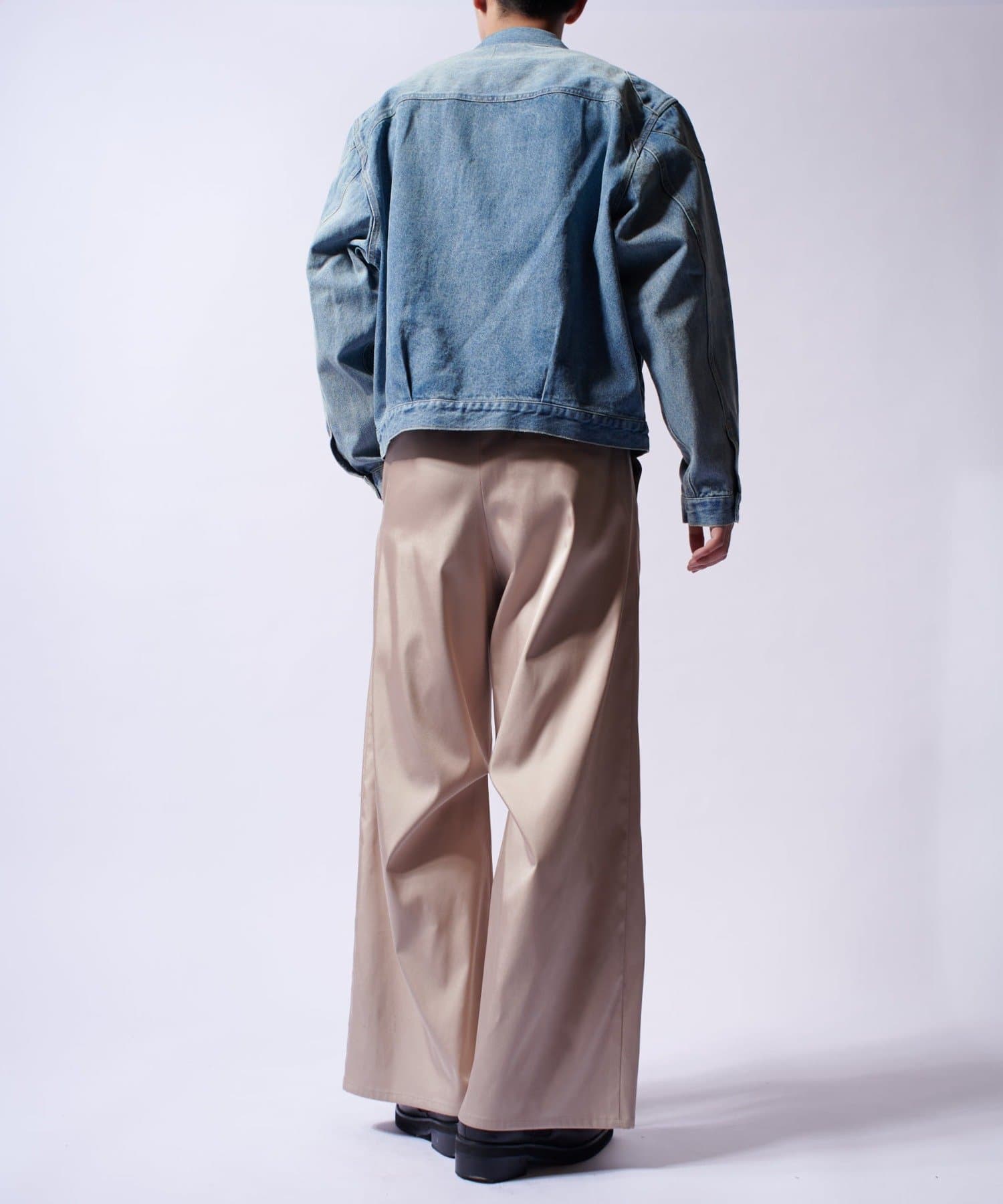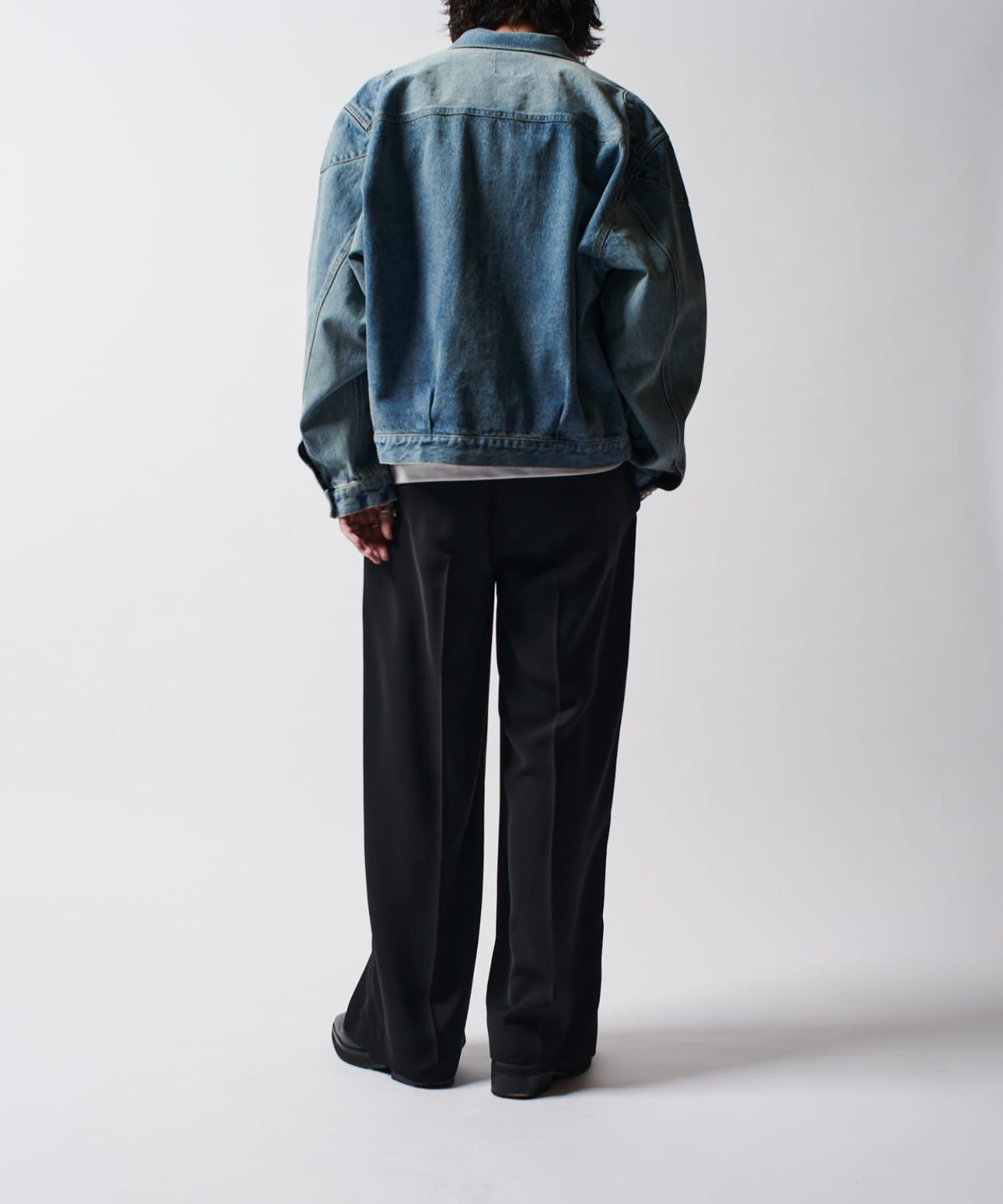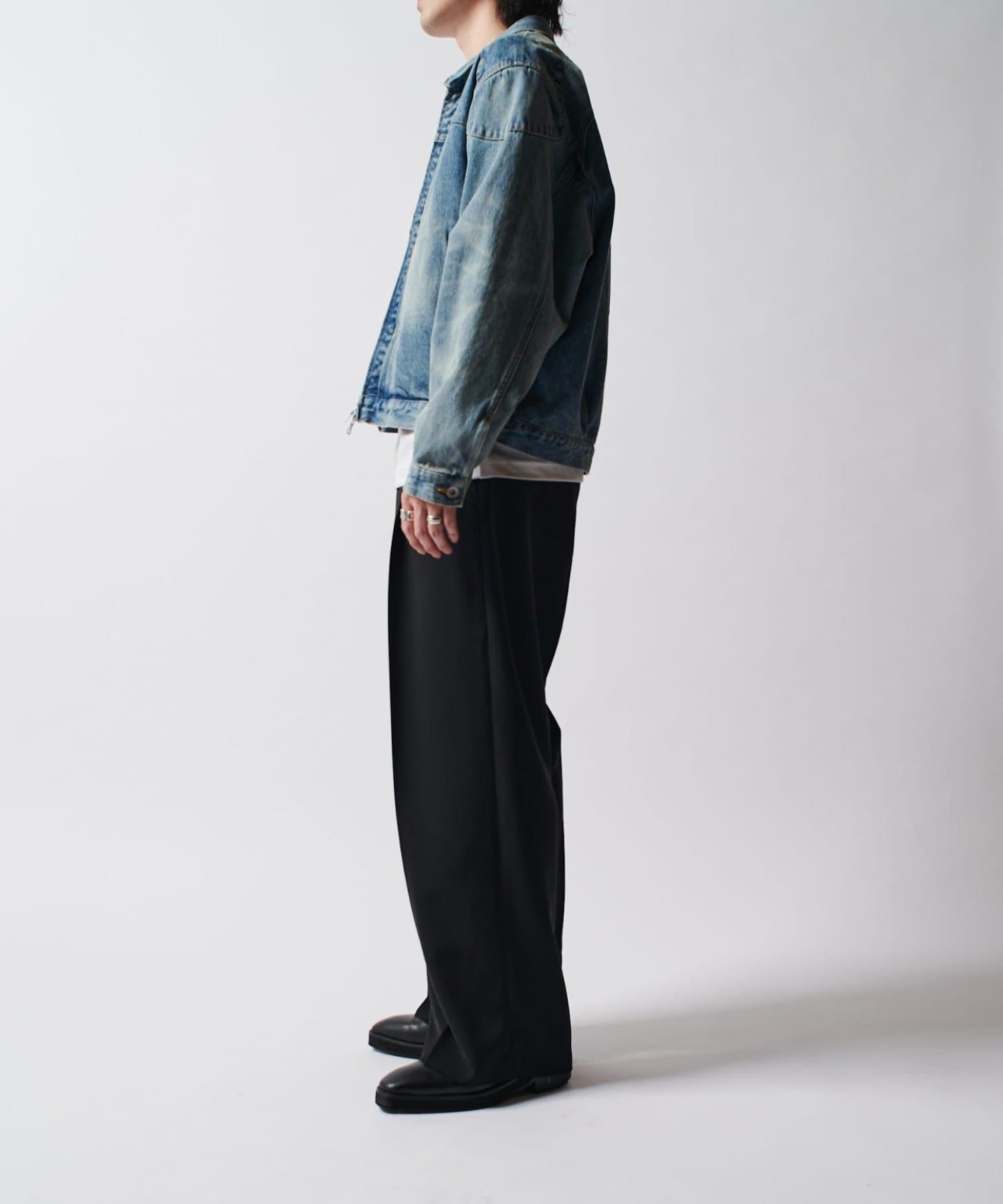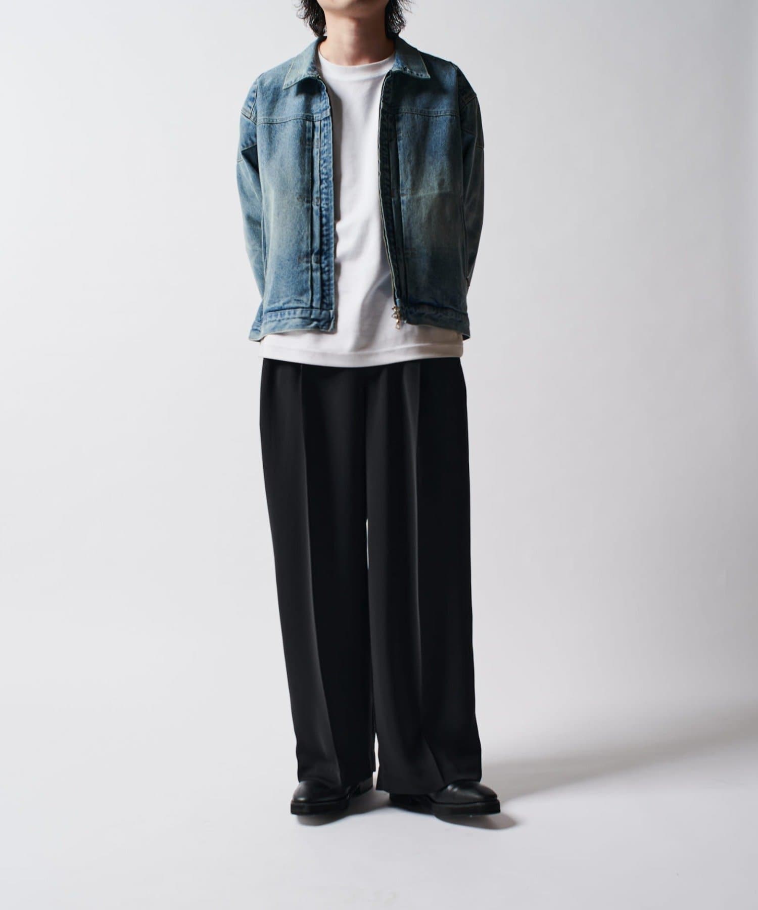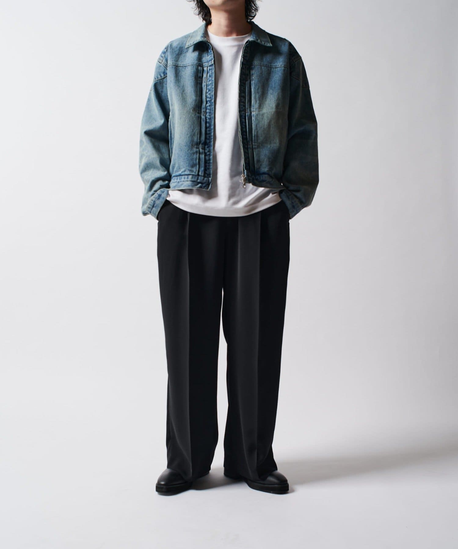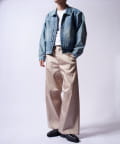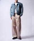 サイズ感のちょうどいいデニムジャケットなので、プルオーバーにワイドスラックスや、イージーデニムを組み合わせたキレイめカジュアルなスタイルがオススメ。