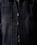 フロントには、ヴィンテージデニム特有のプリーツ使用を配置。肩の切替のパッド、フロントの八の字のZIP、フロントの胸当たりのライン端の曲線はモトクロスジャケットのデザインを踏襲。