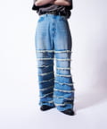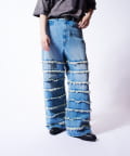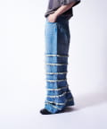 エッジの利いたユニークなデザインのこちらのデニムパンツ。
