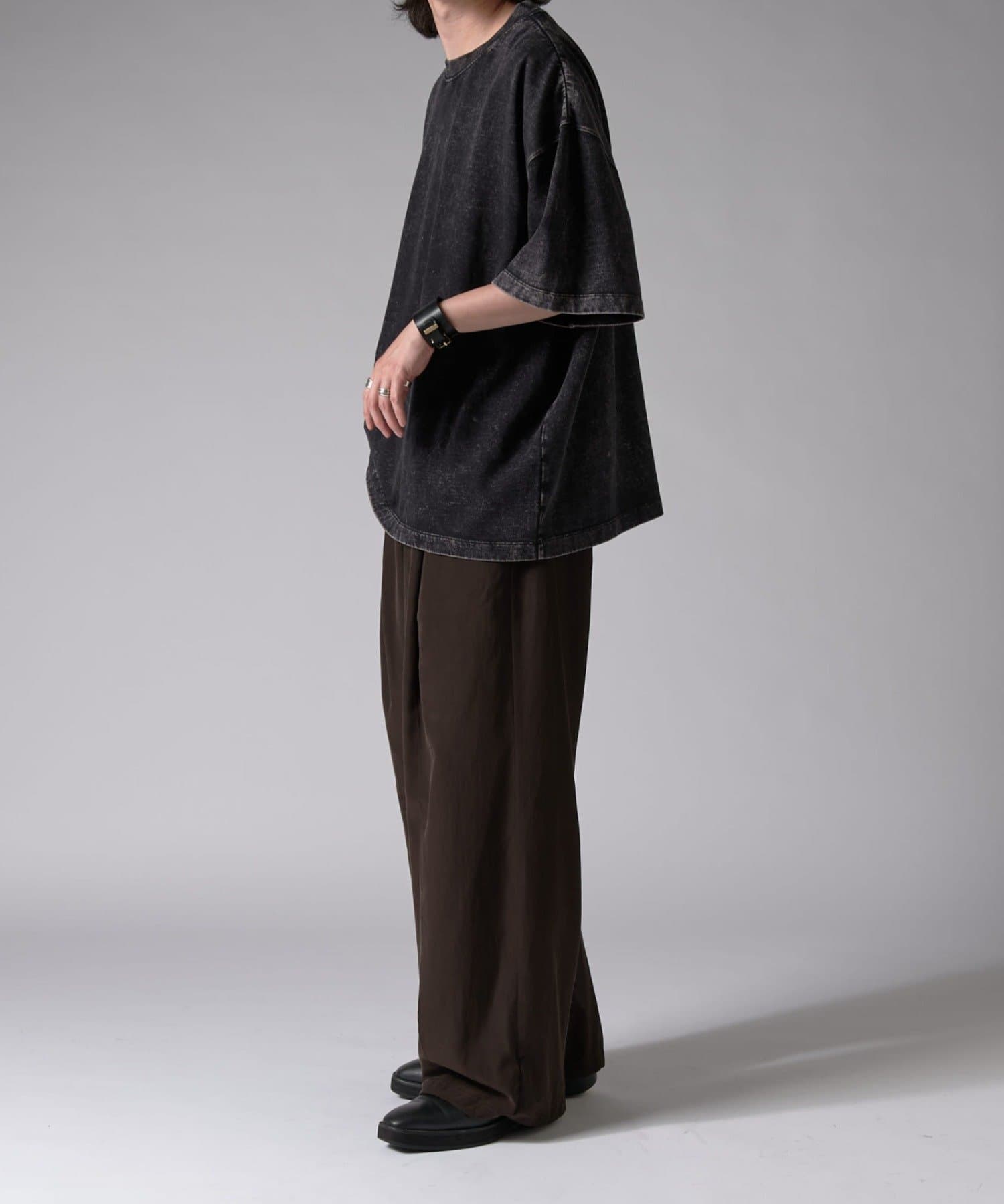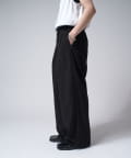 通常のパンツよりも、ワタリを広く取りそのままストンと下に落ちるワイドストレートシルエット。