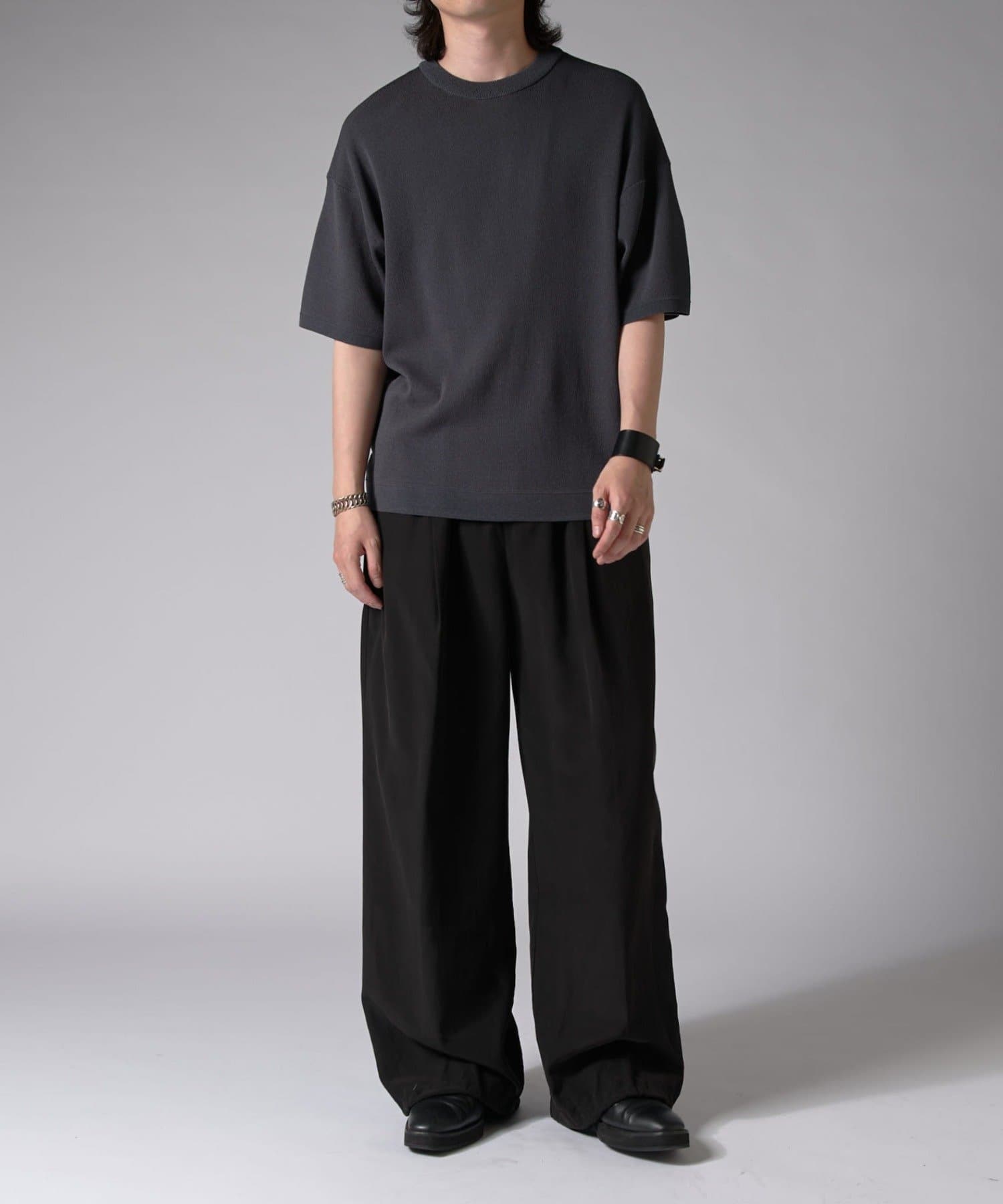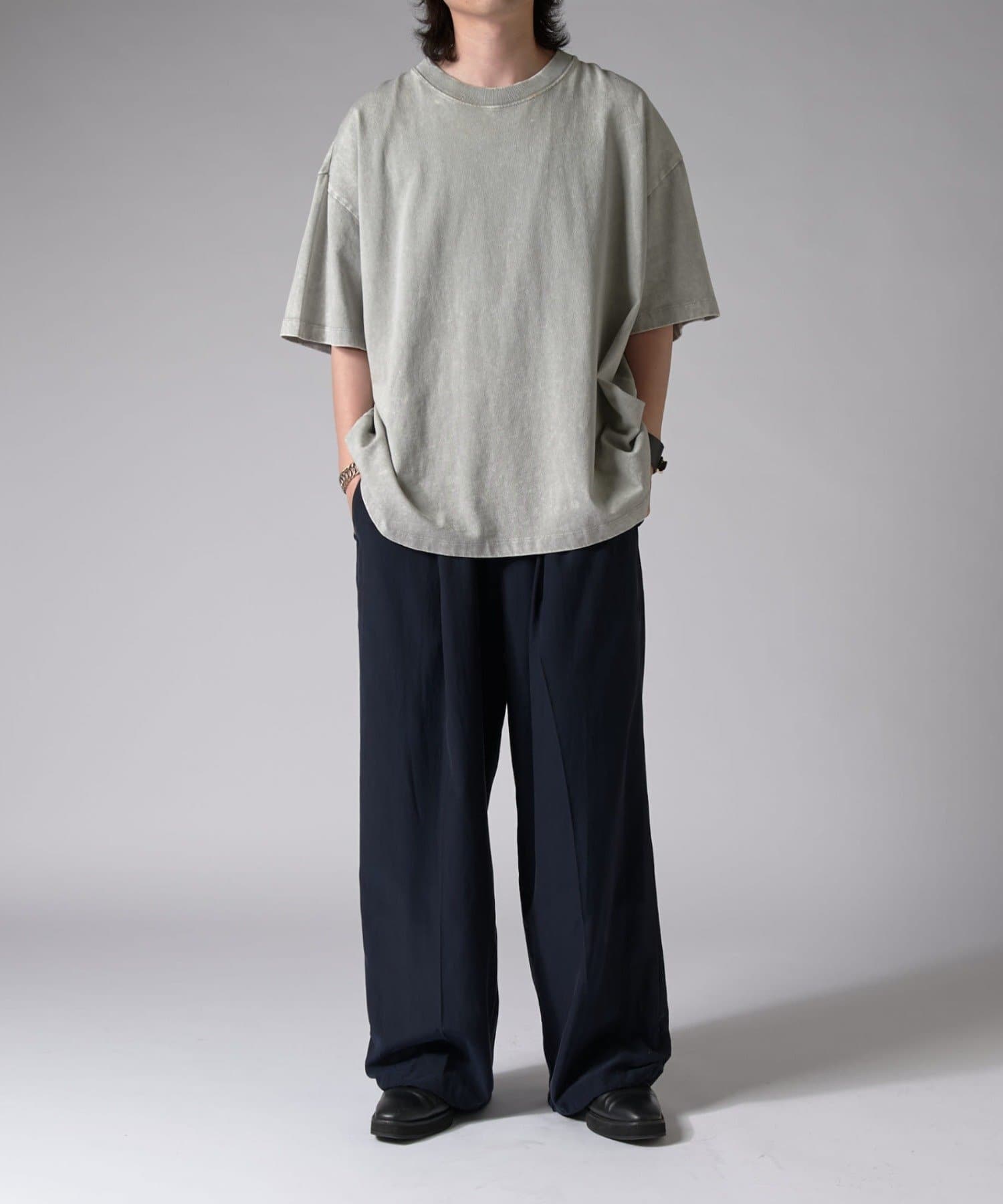 リラックスして穿いて頂けるイージーパンツなので、Tシャツやオープンカラーシャツに組み合わせたラフなキレイめスタイルがオススメです。