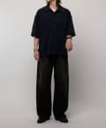 ユニークな素材感のこちらのシャツ。着丈を身幅をやや広く取ったリラックスフィット。