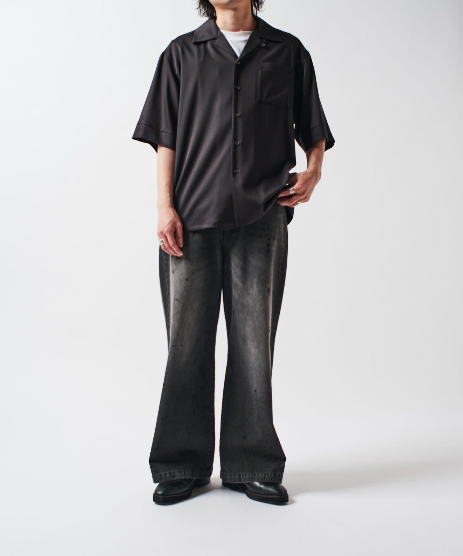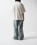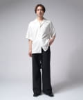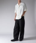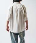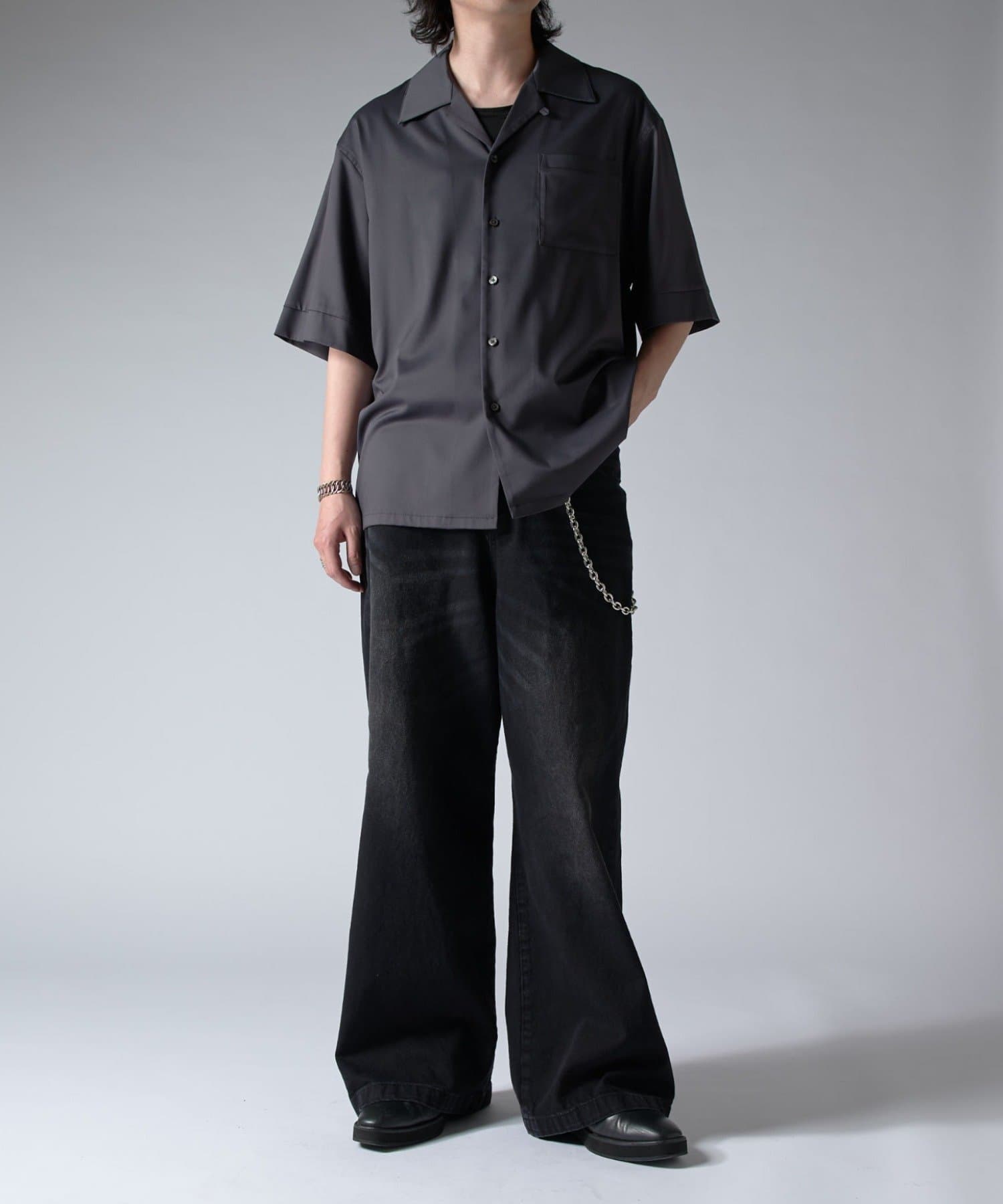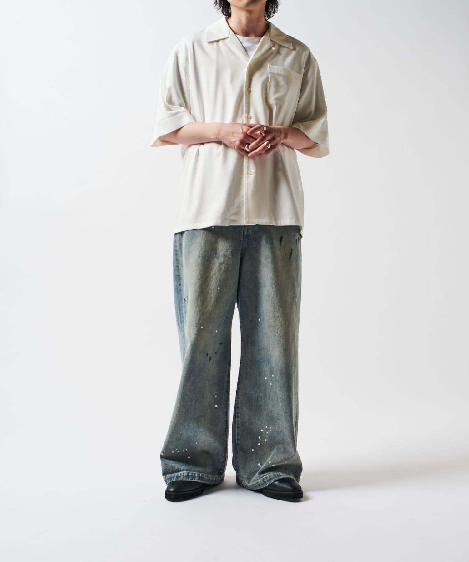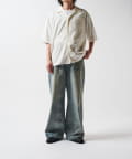 癖がなく、ルーズフィットなシルエットが特徴的なシャツなので、ワイドデニムと合わせたキレイめカジュアルなスタイルがオススメ。