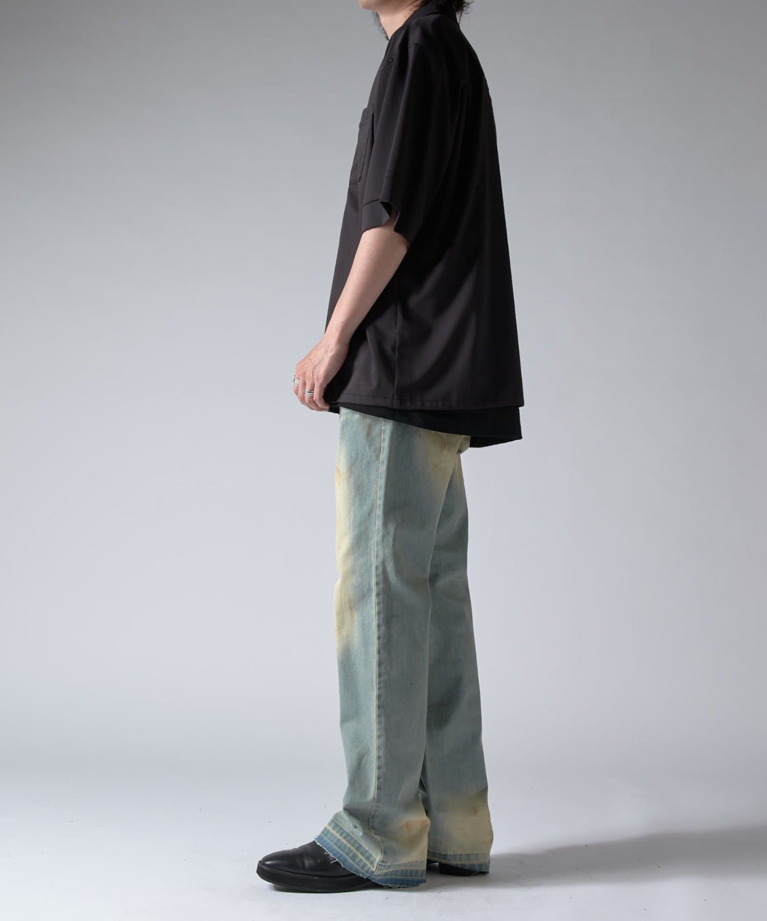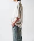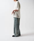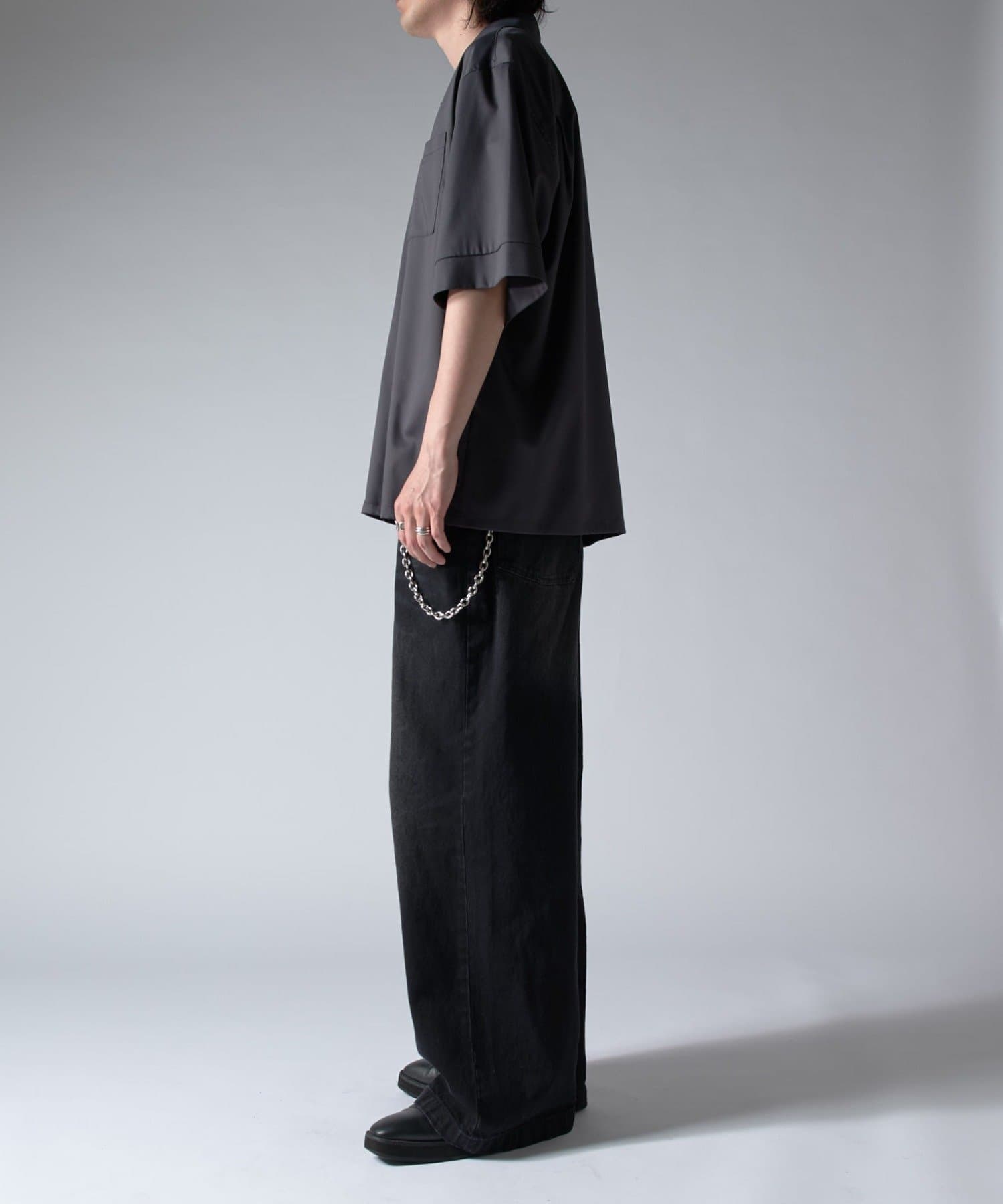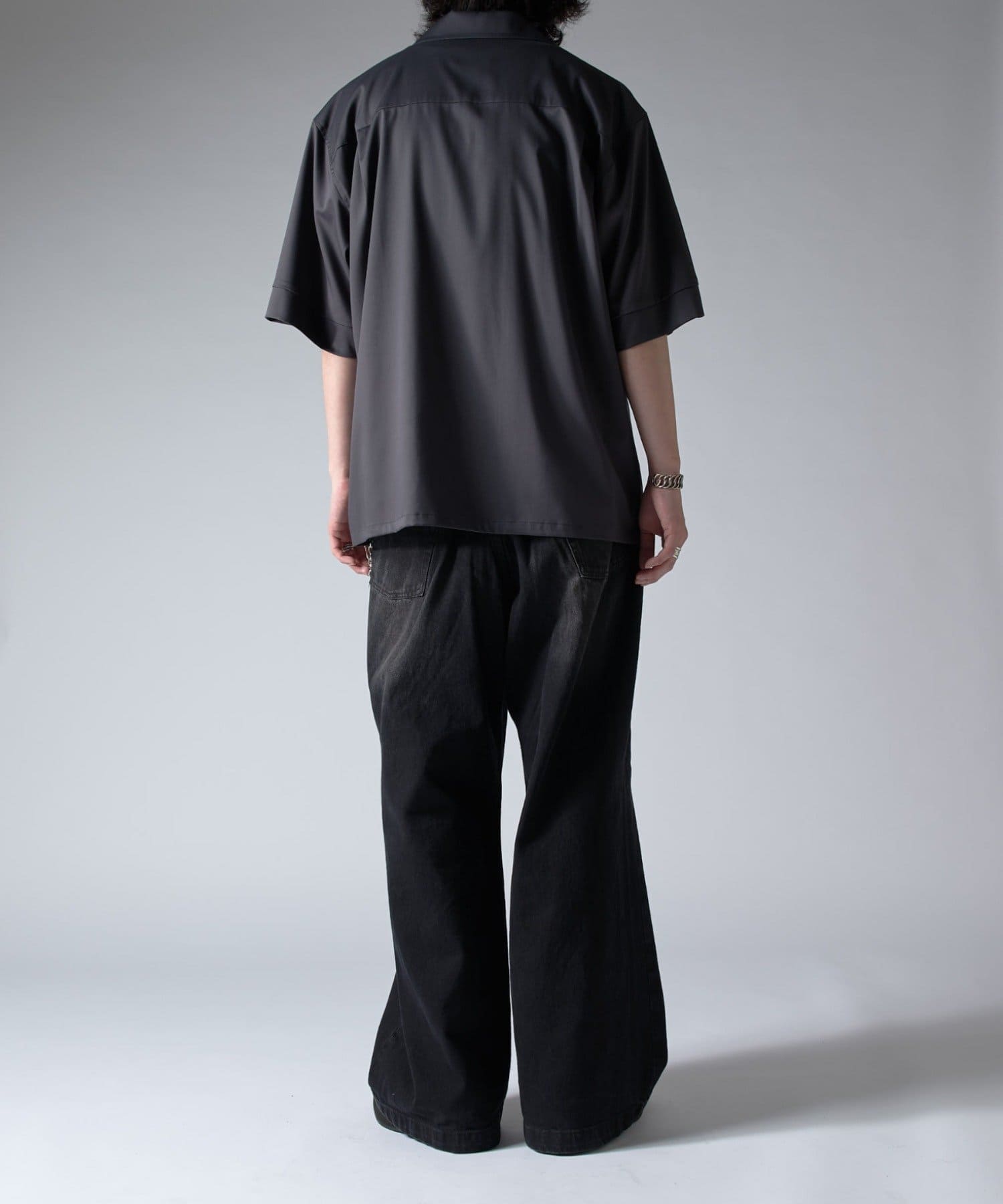 癖がなく、ルーズフィットなシルエットが特徴的なシャツなので、ワイドデニムと合わせたキレイめカジュアルなスタイルがオススメ。