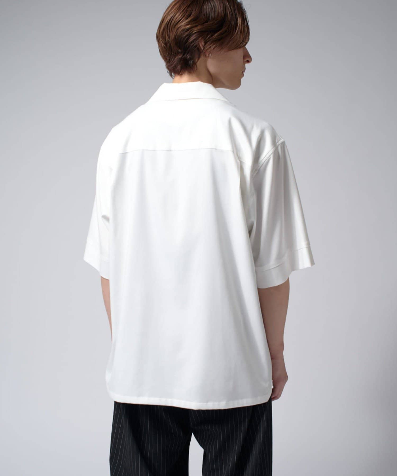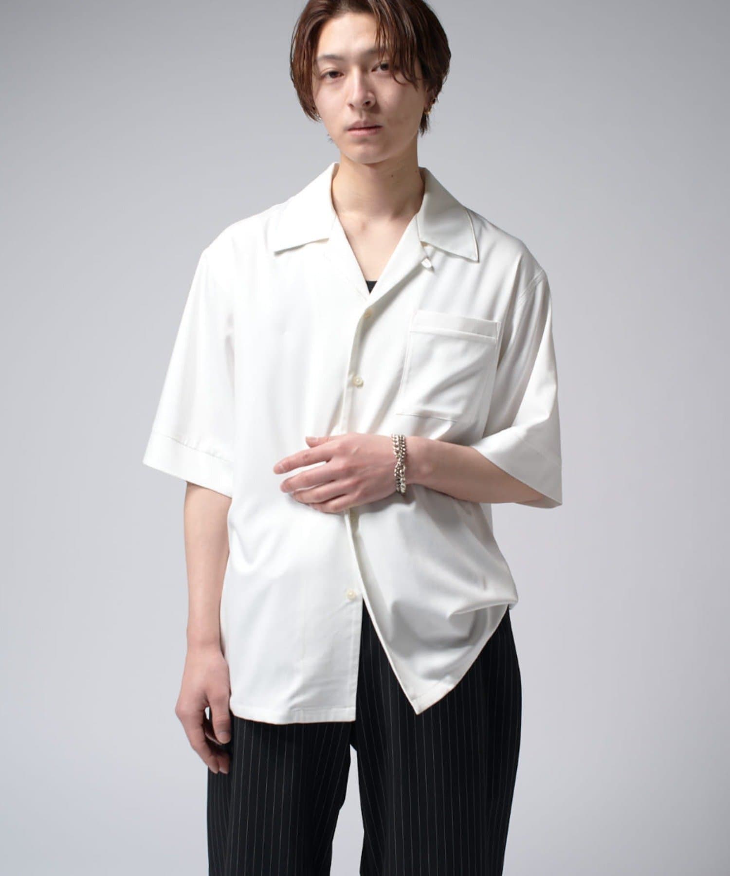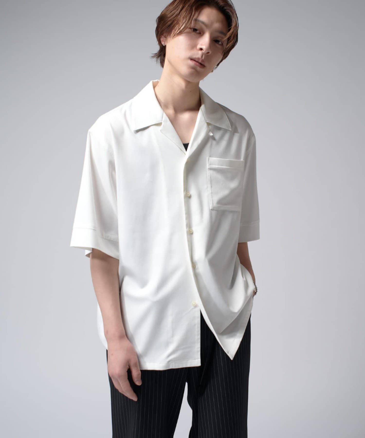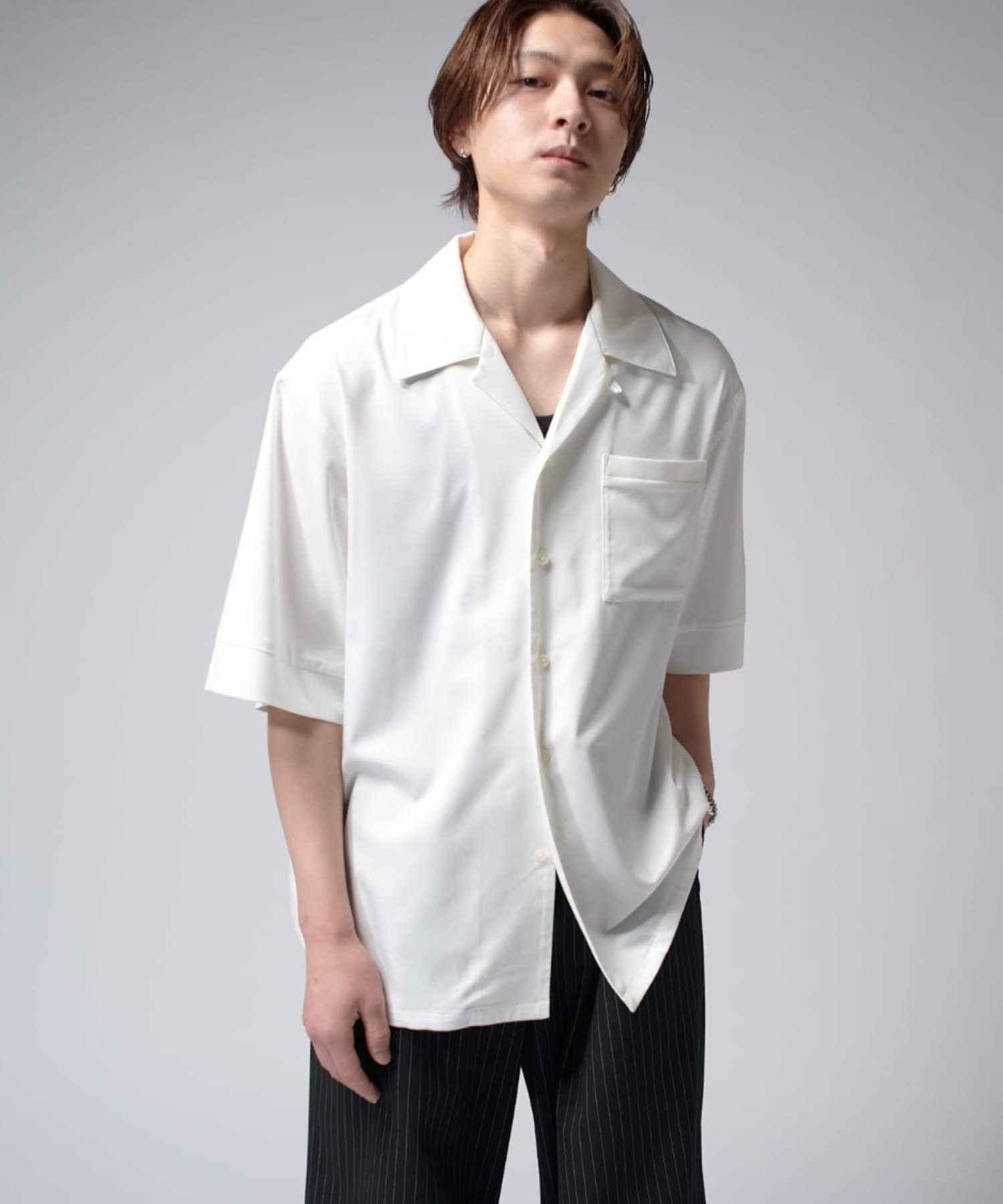 シンプルでクリーンな印象のこちらのオープンカラーシャツ。