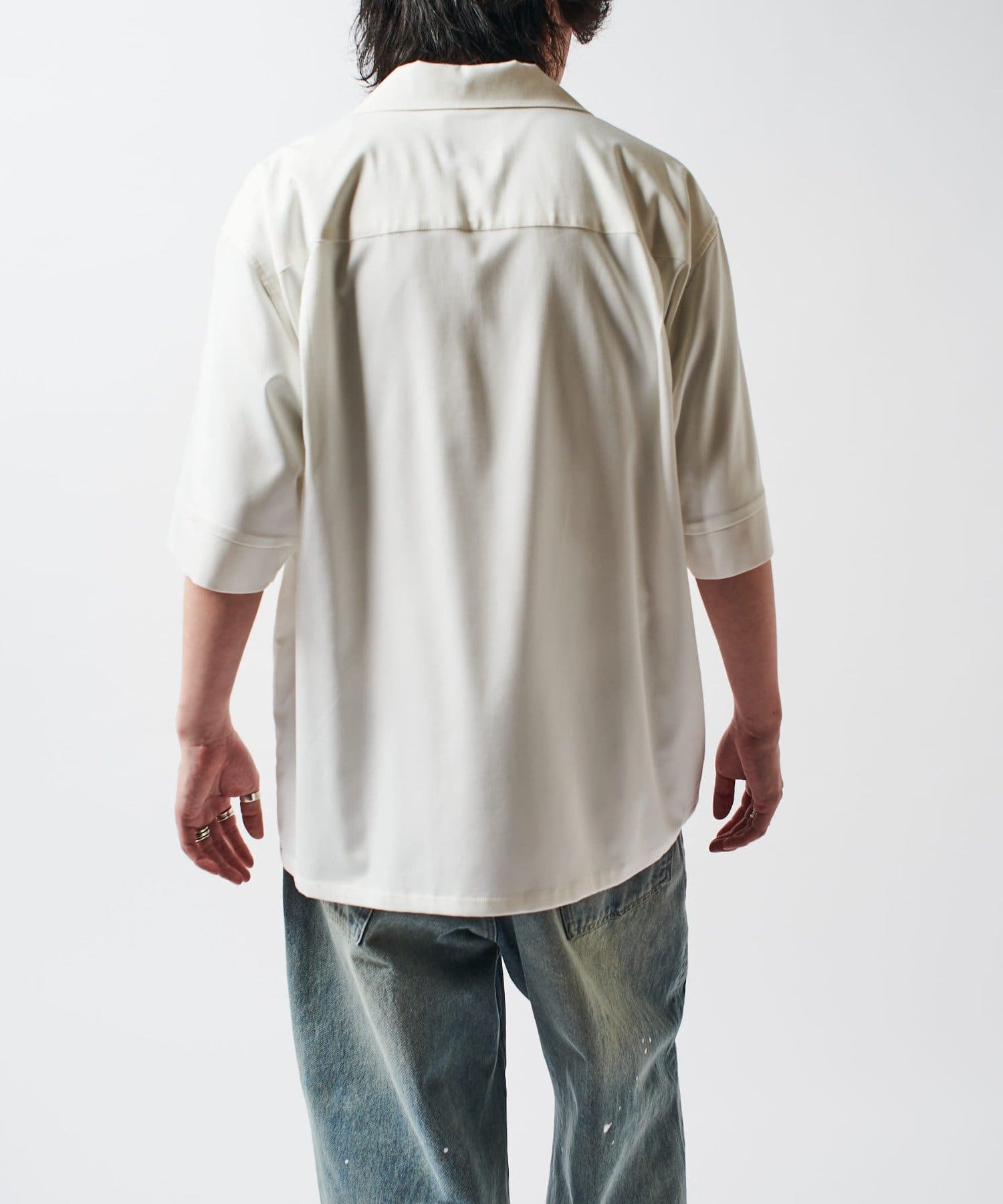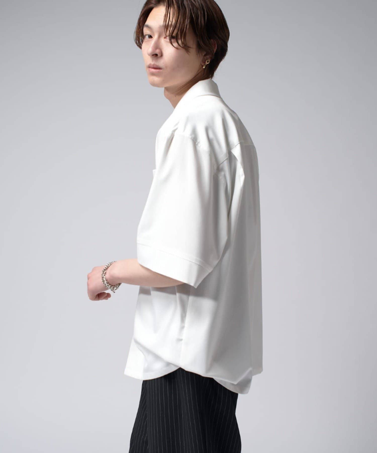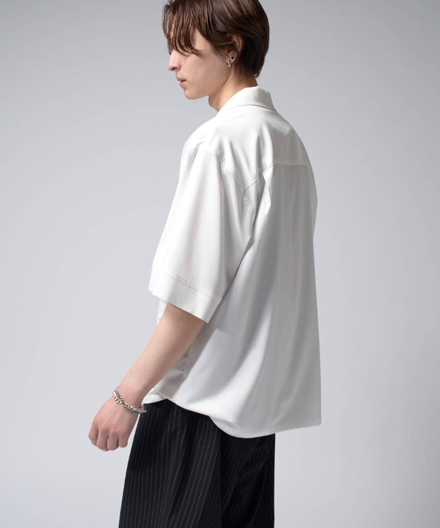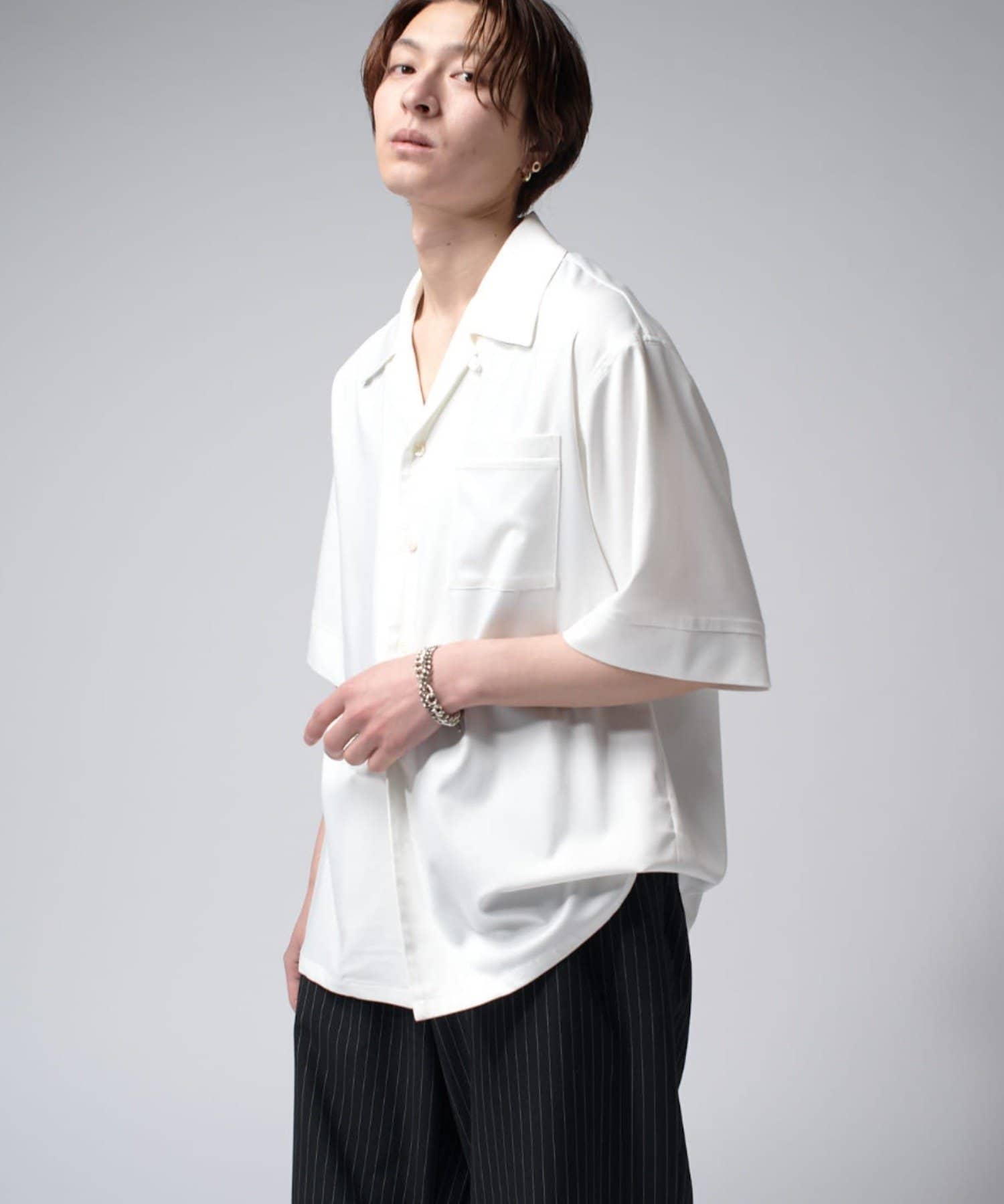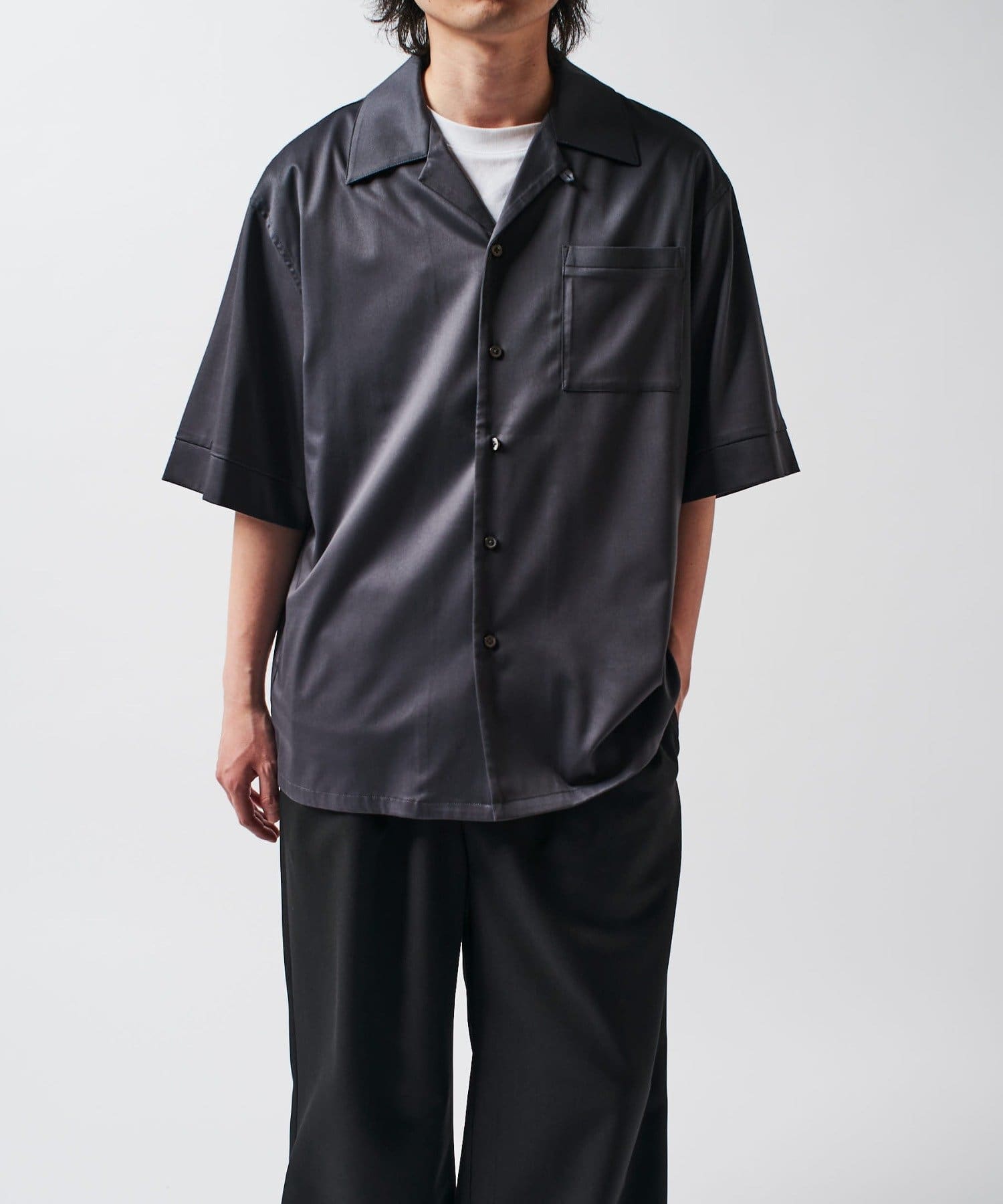 シンプルでクリーンな印象のこちらのオープンカラーシャツ。