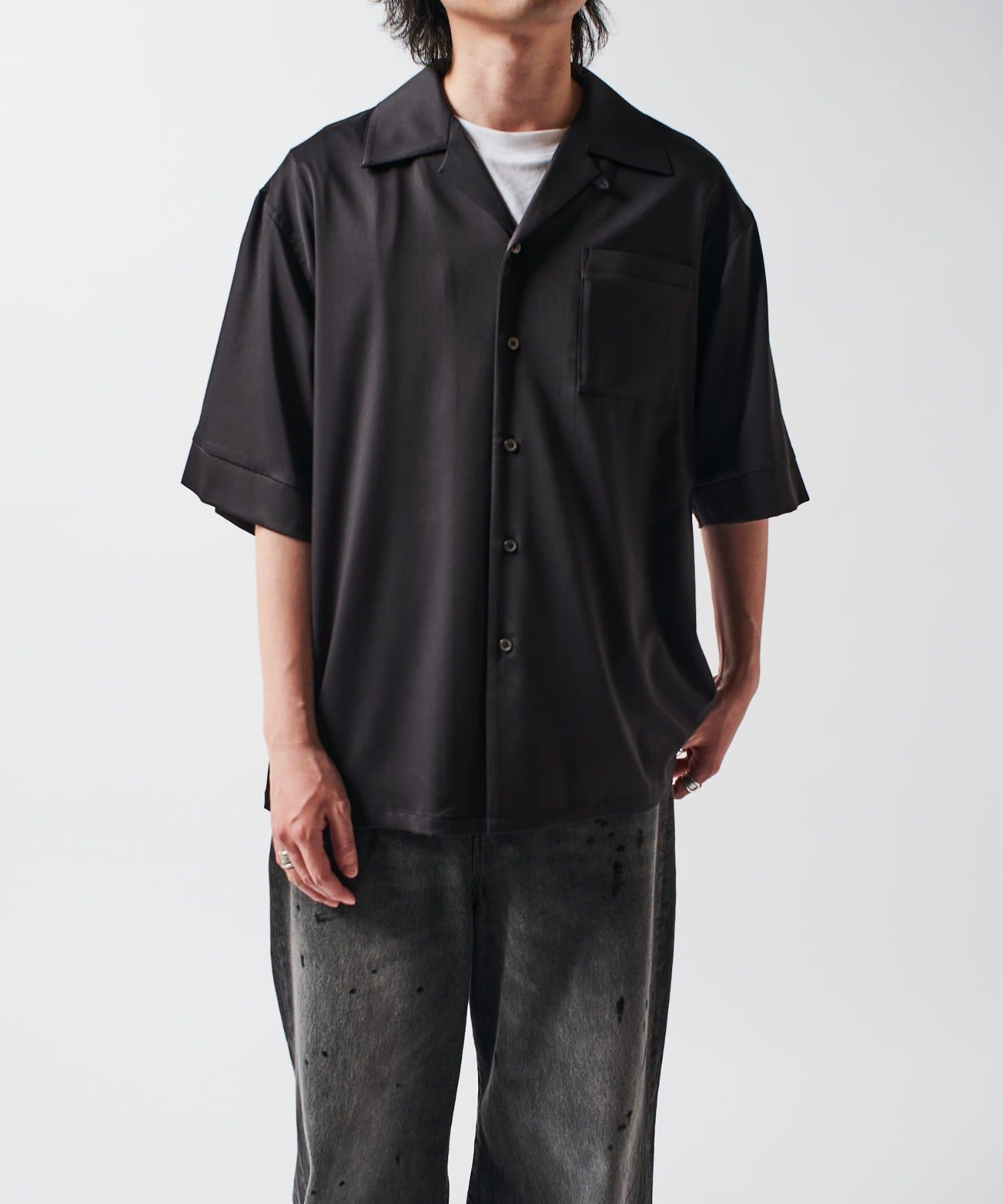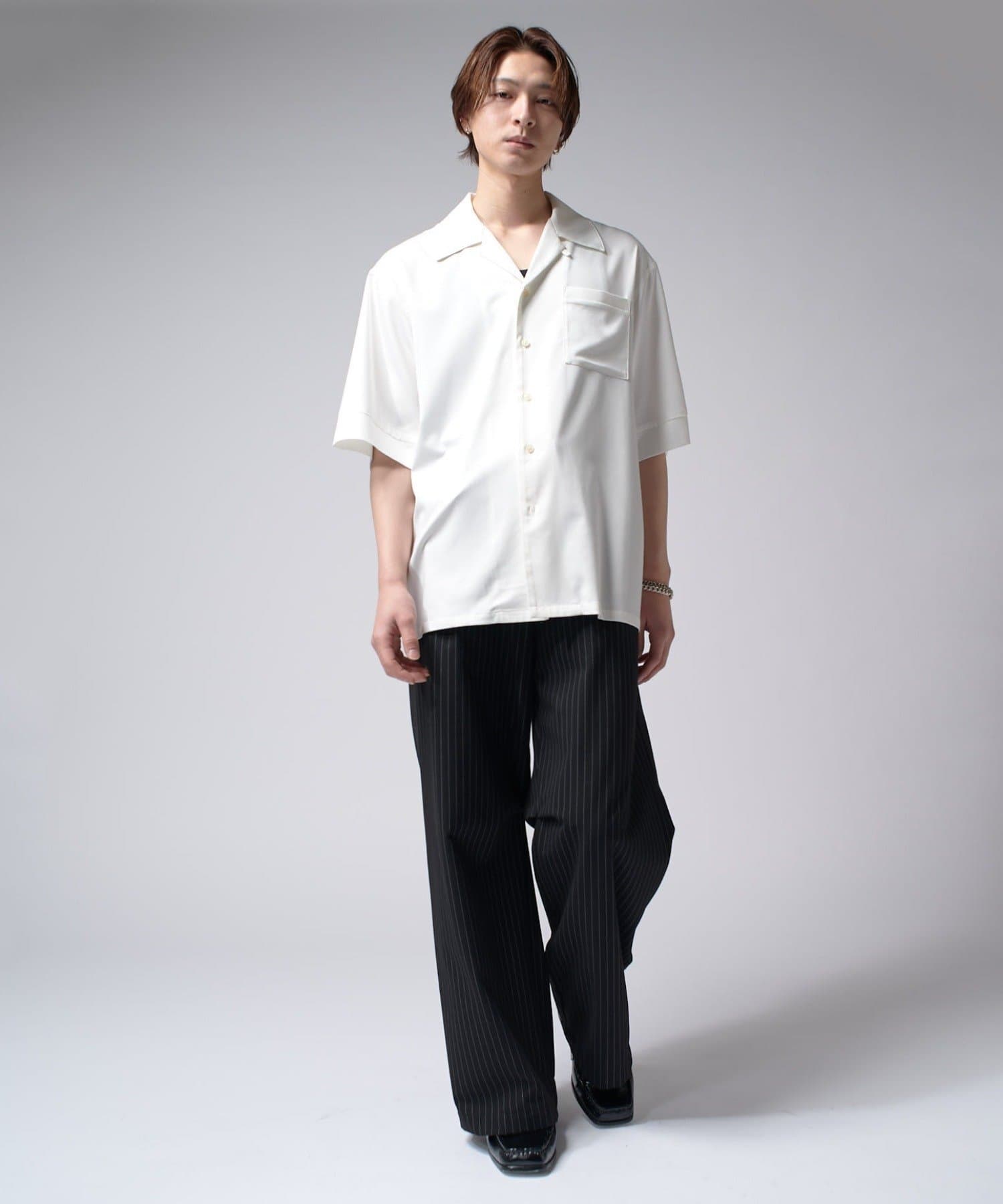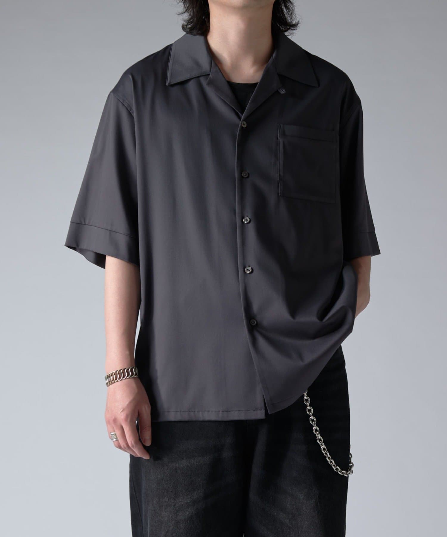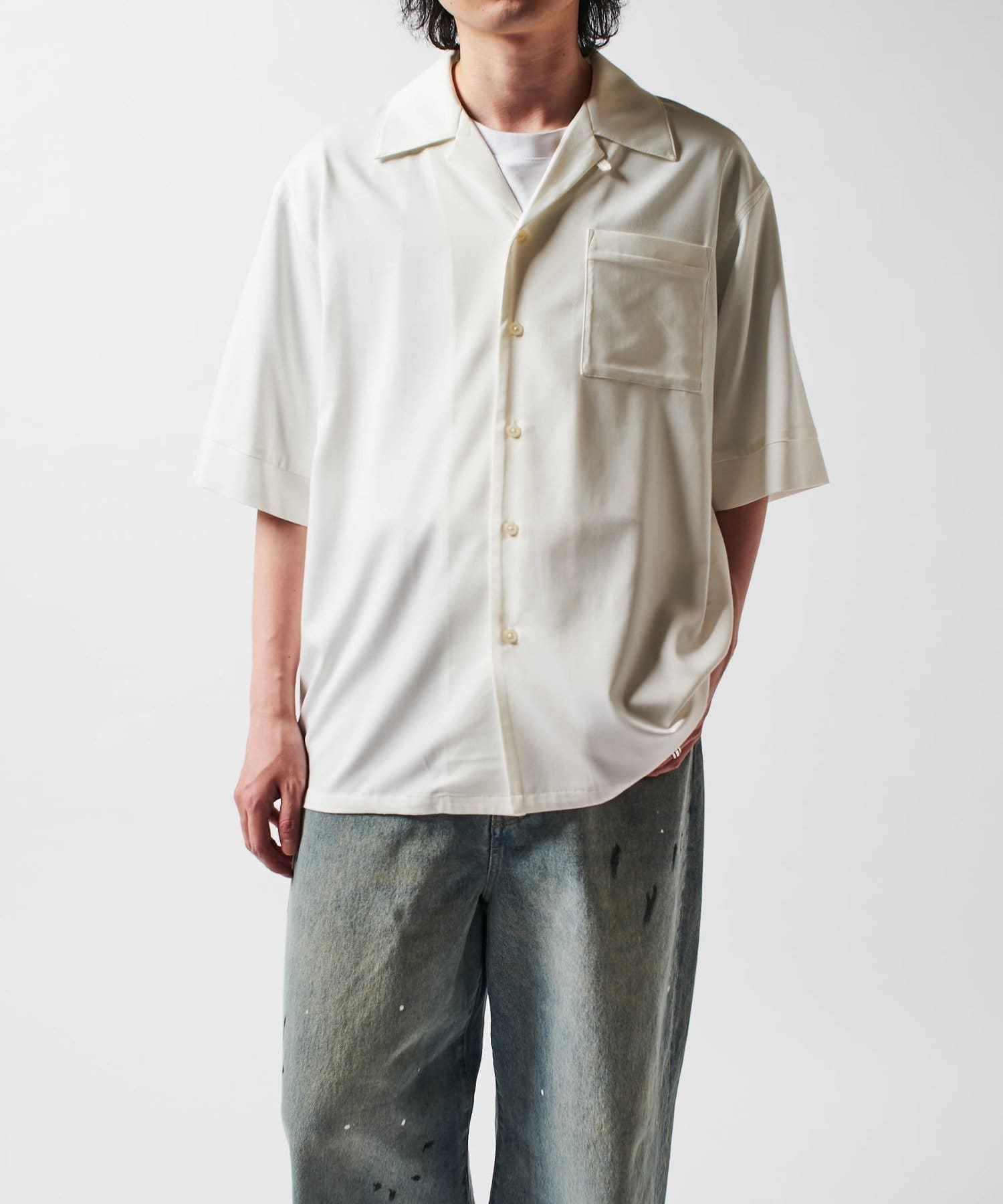 シンプルでクリーンな印象のこちらのオープンカラーシャツ。
