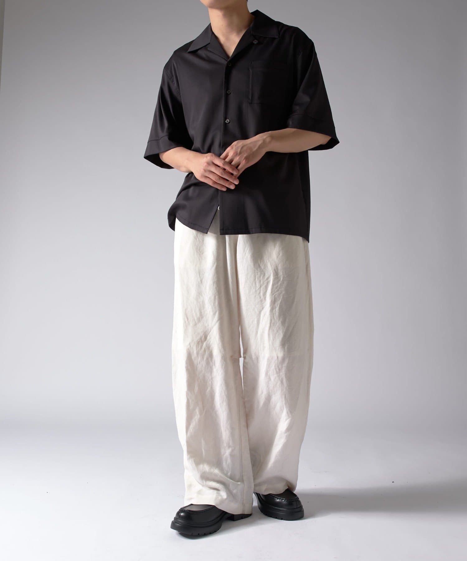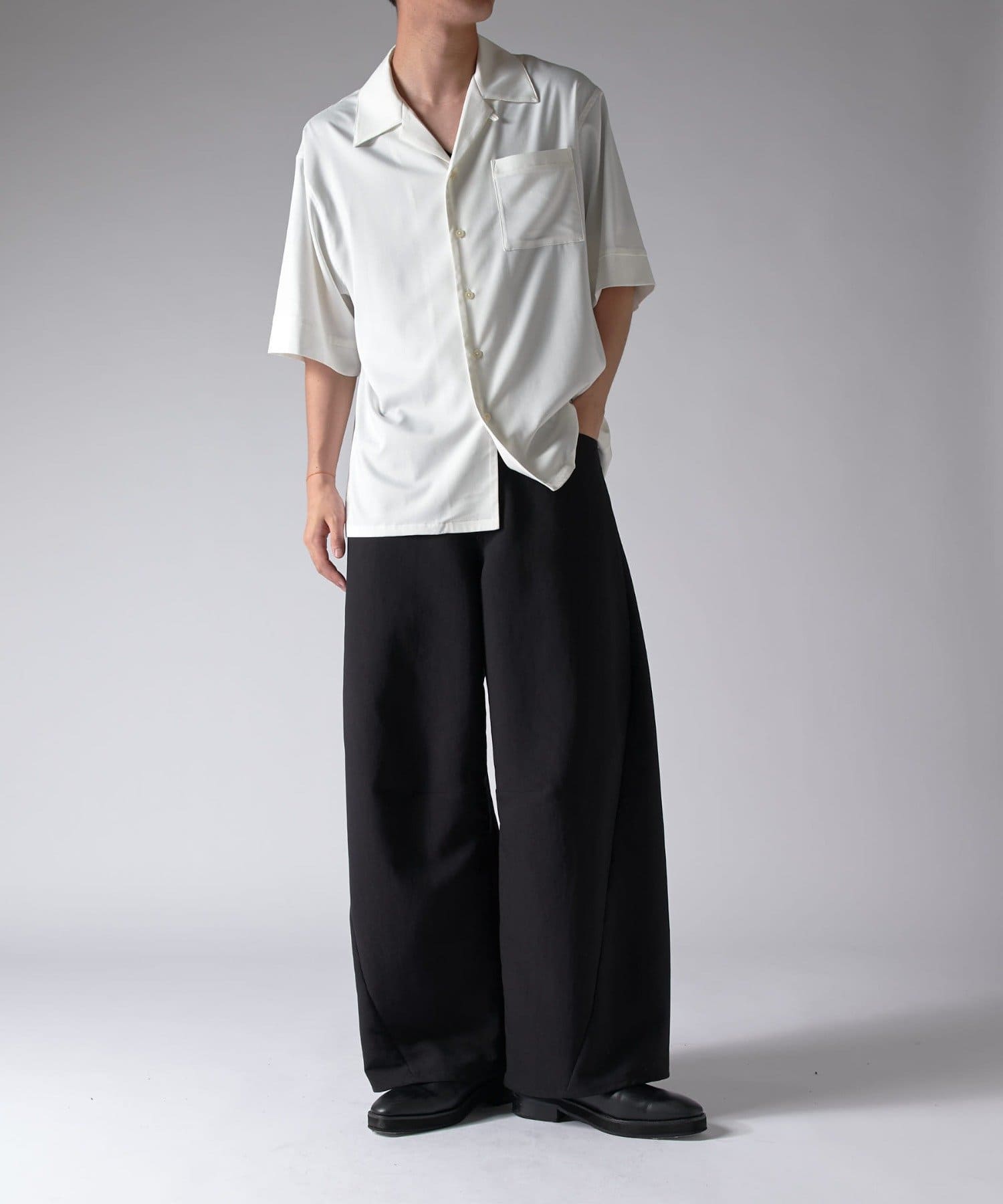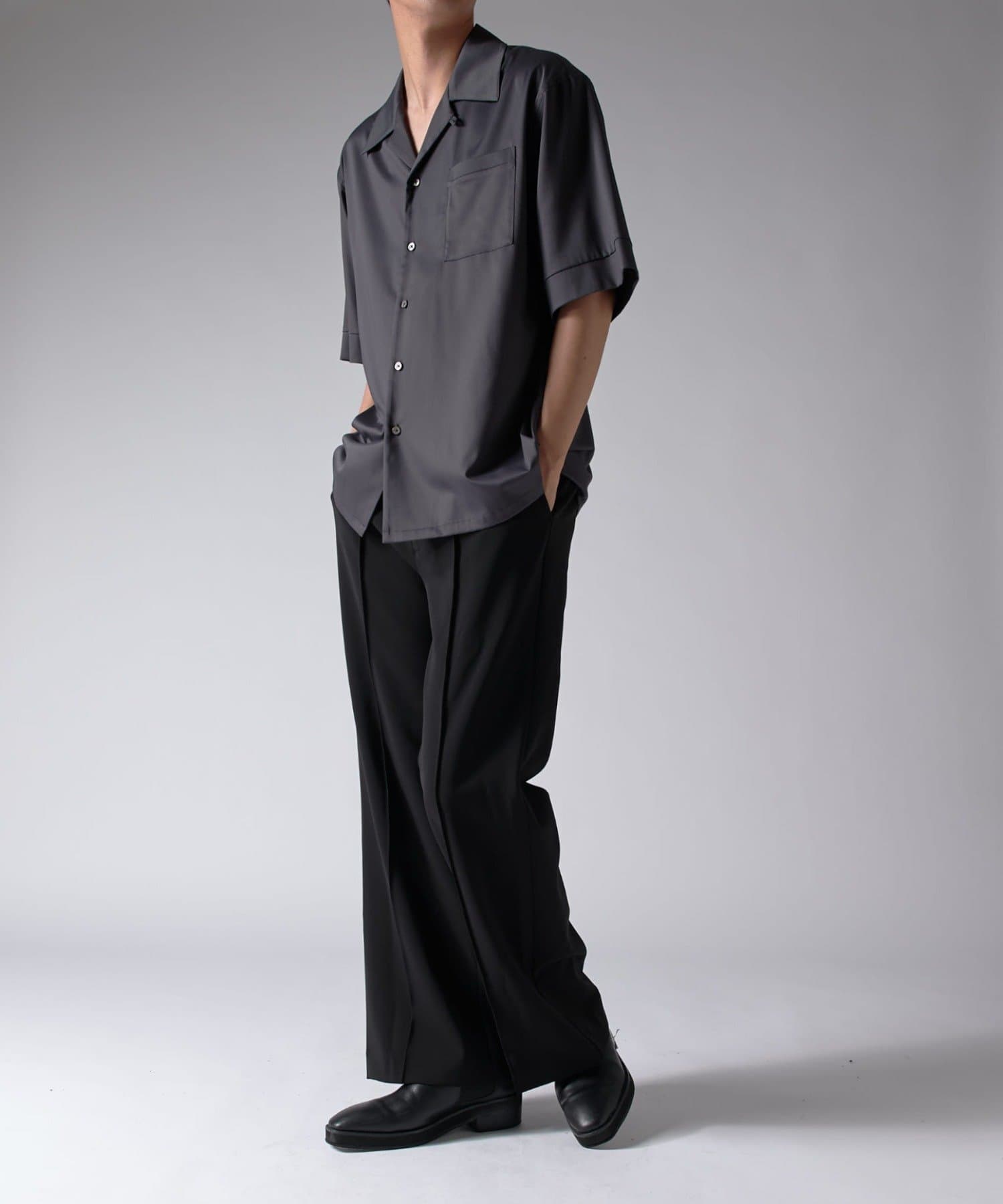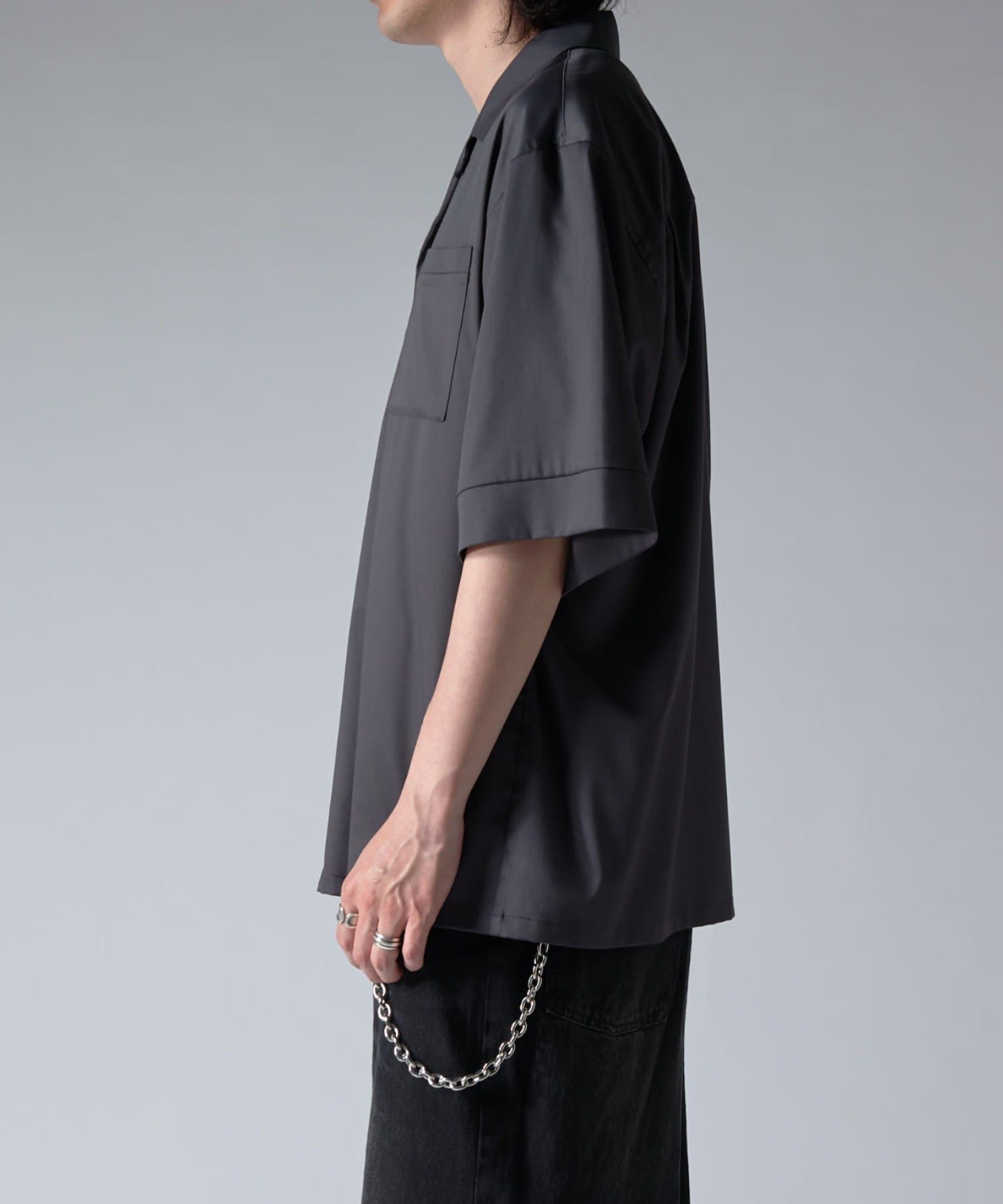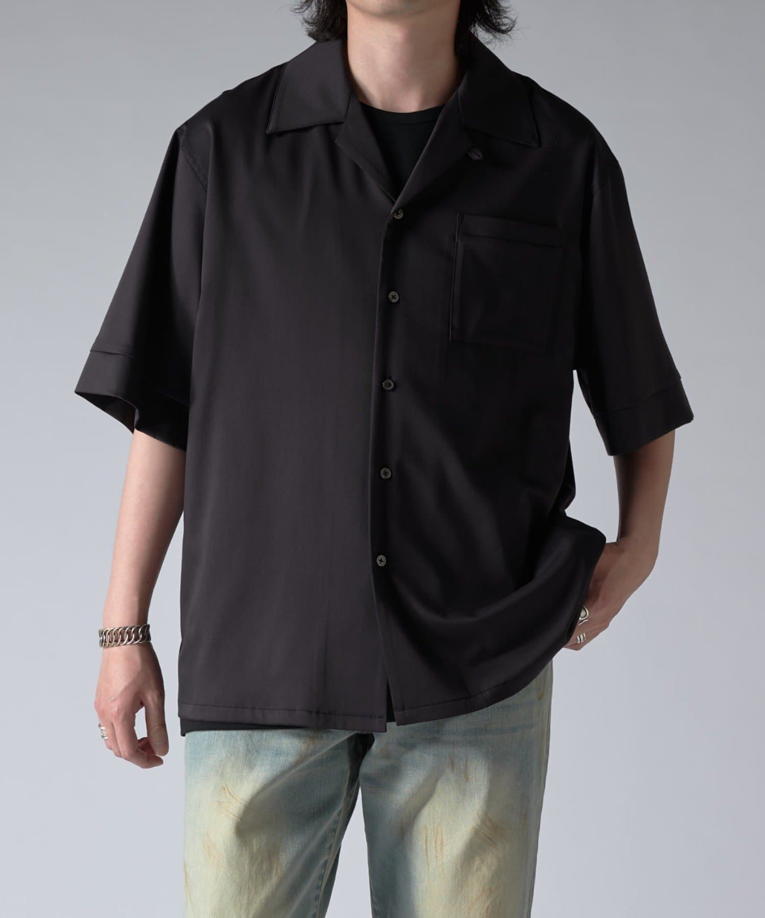 シンプルでクリーンな印象のこちらのオープンカラーシャツ。