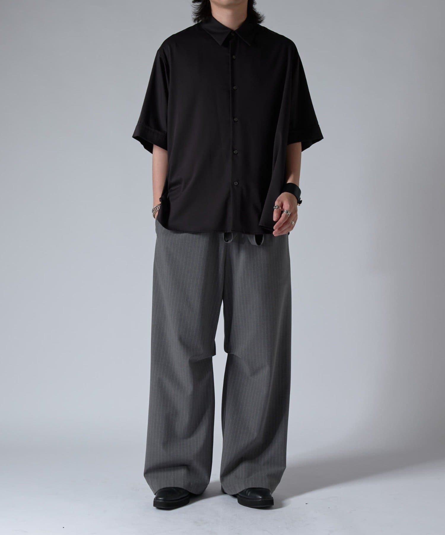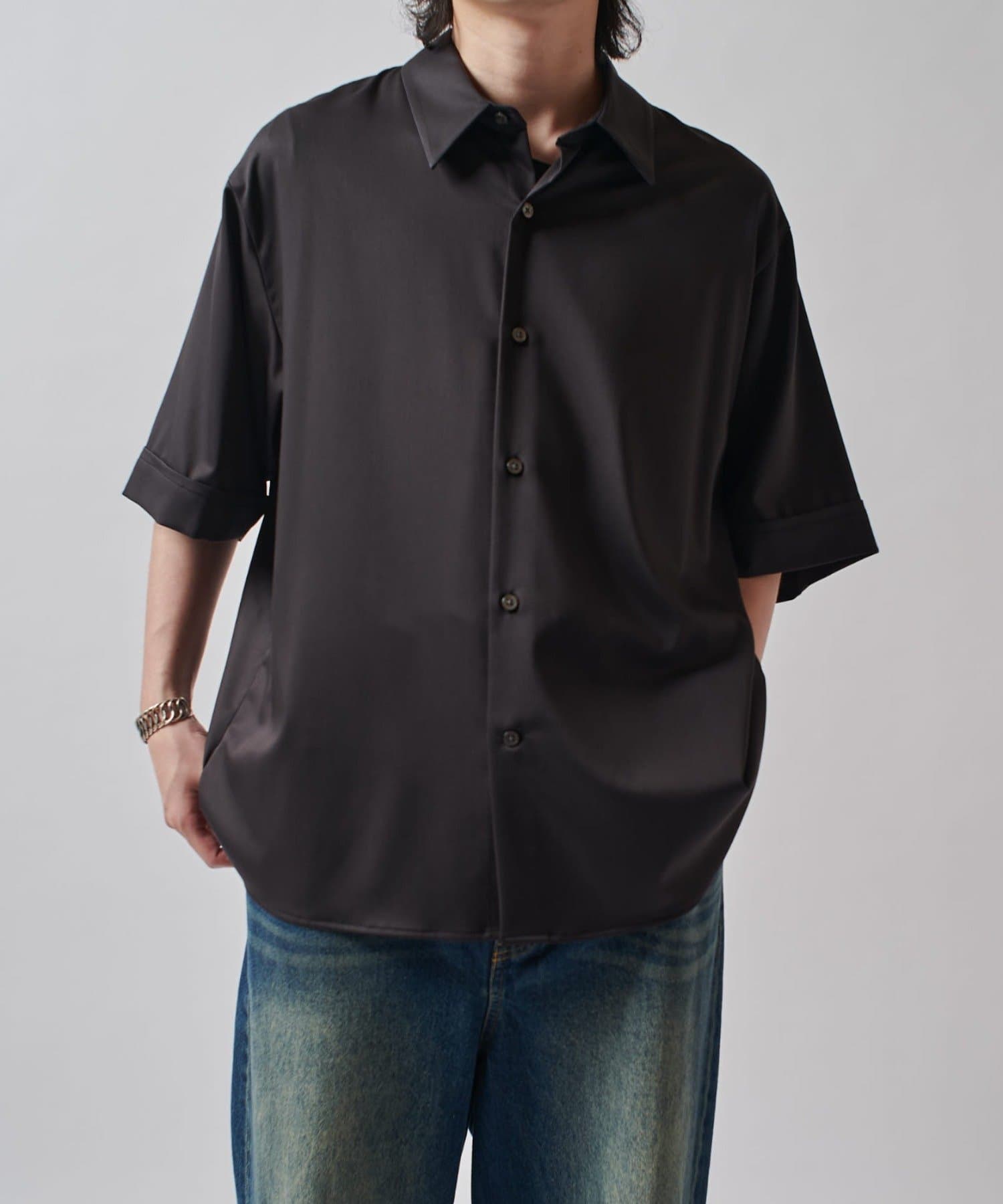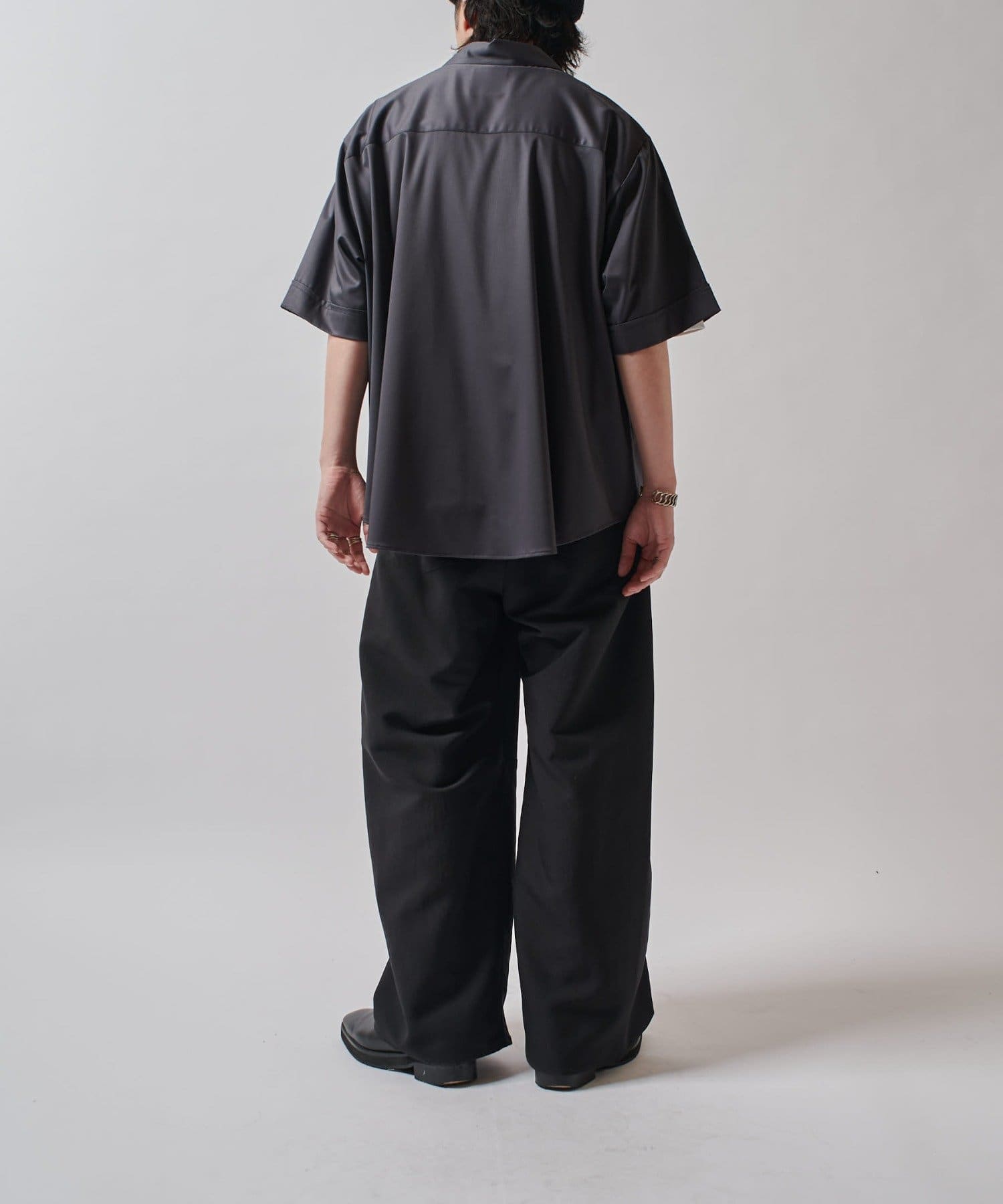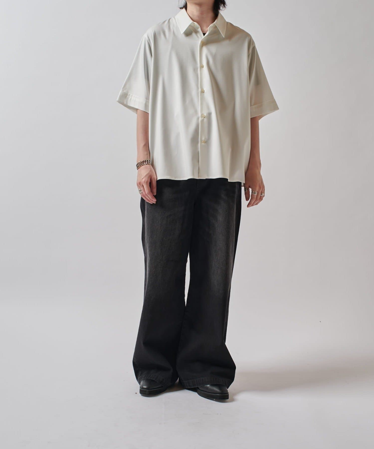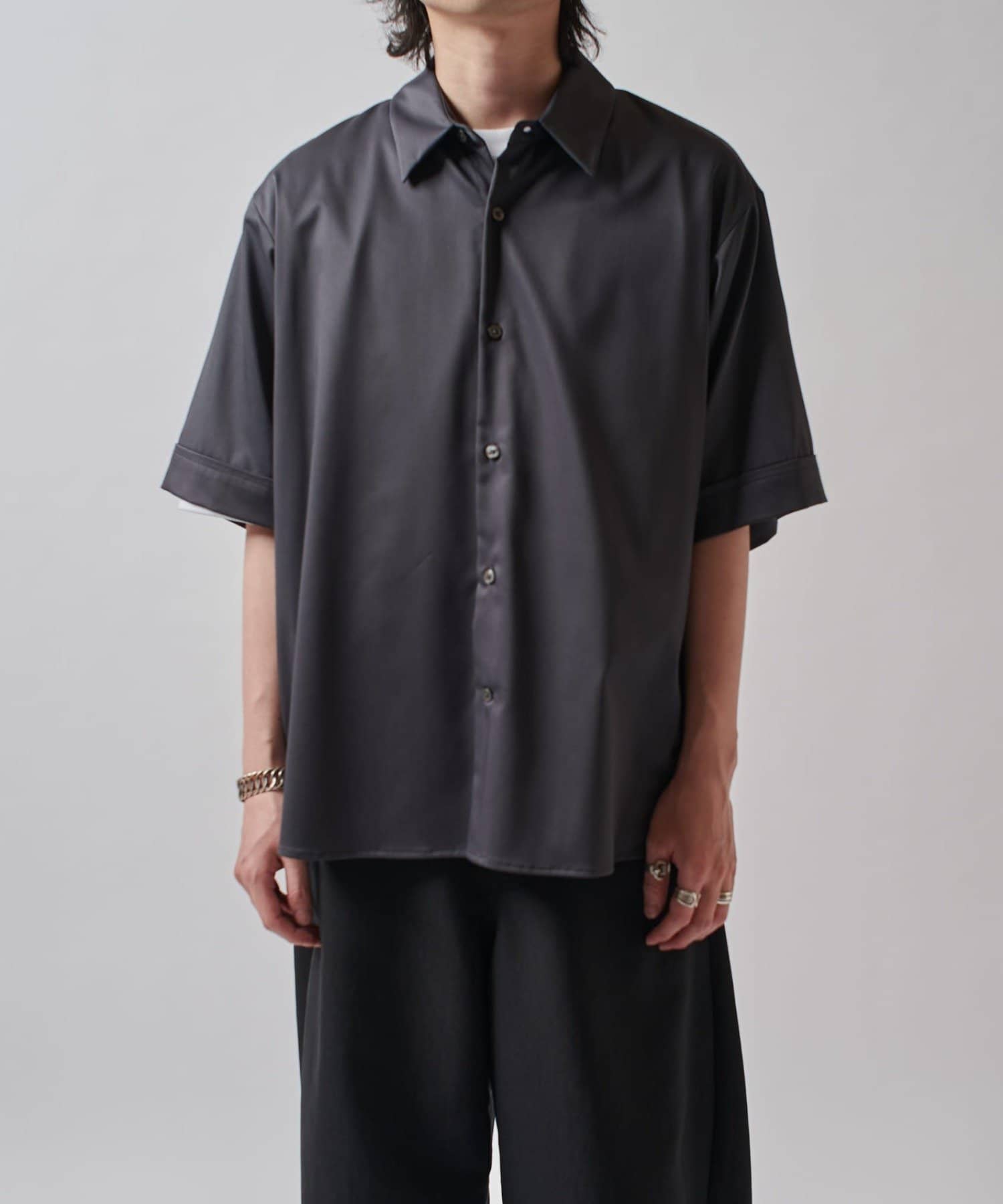 クリーンでミニマルな見た目のシャツなので、ワイドデニムやパラシュートパンツと組み合わせたキレイめカジュアルなスタイルがオススメ。
