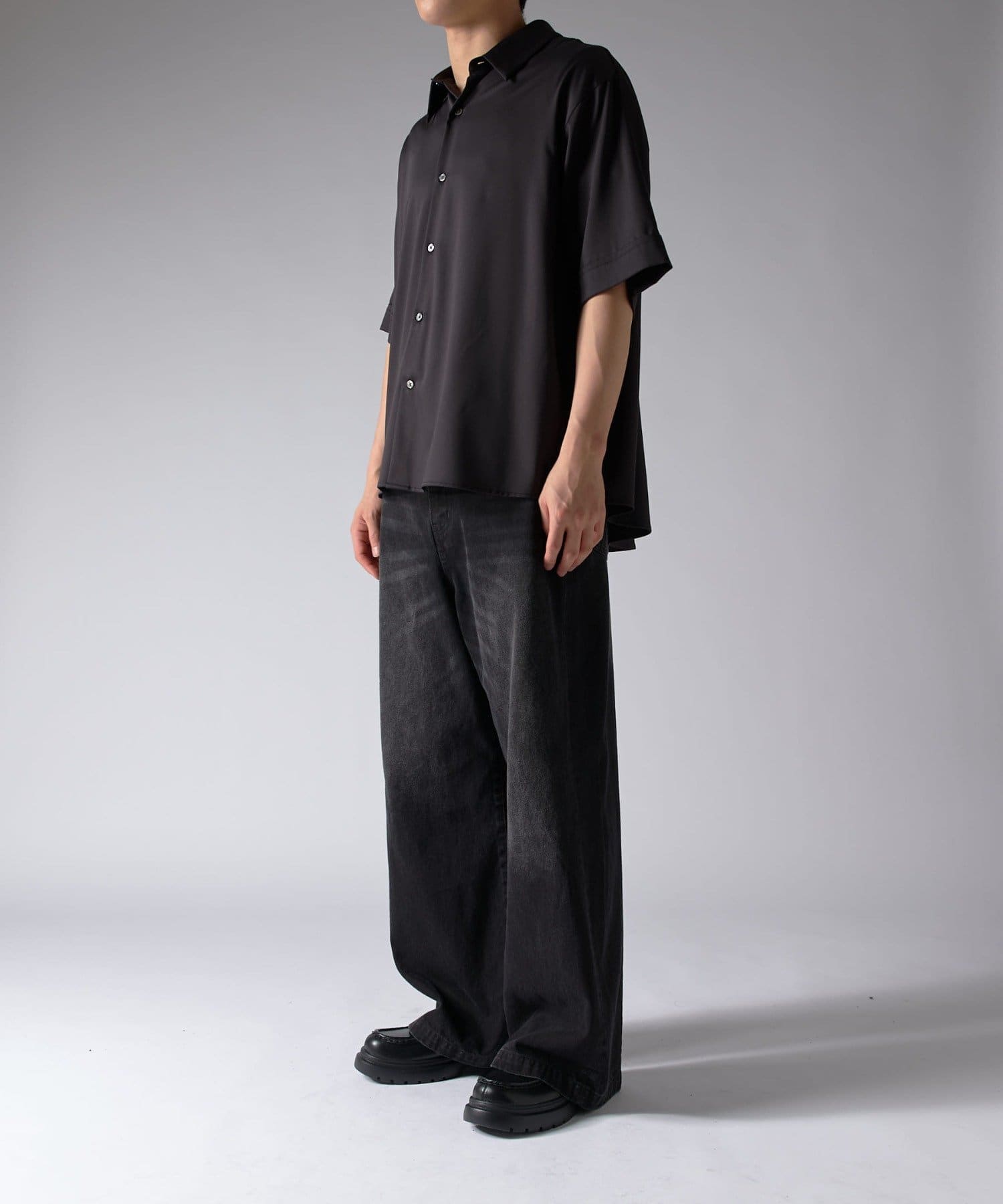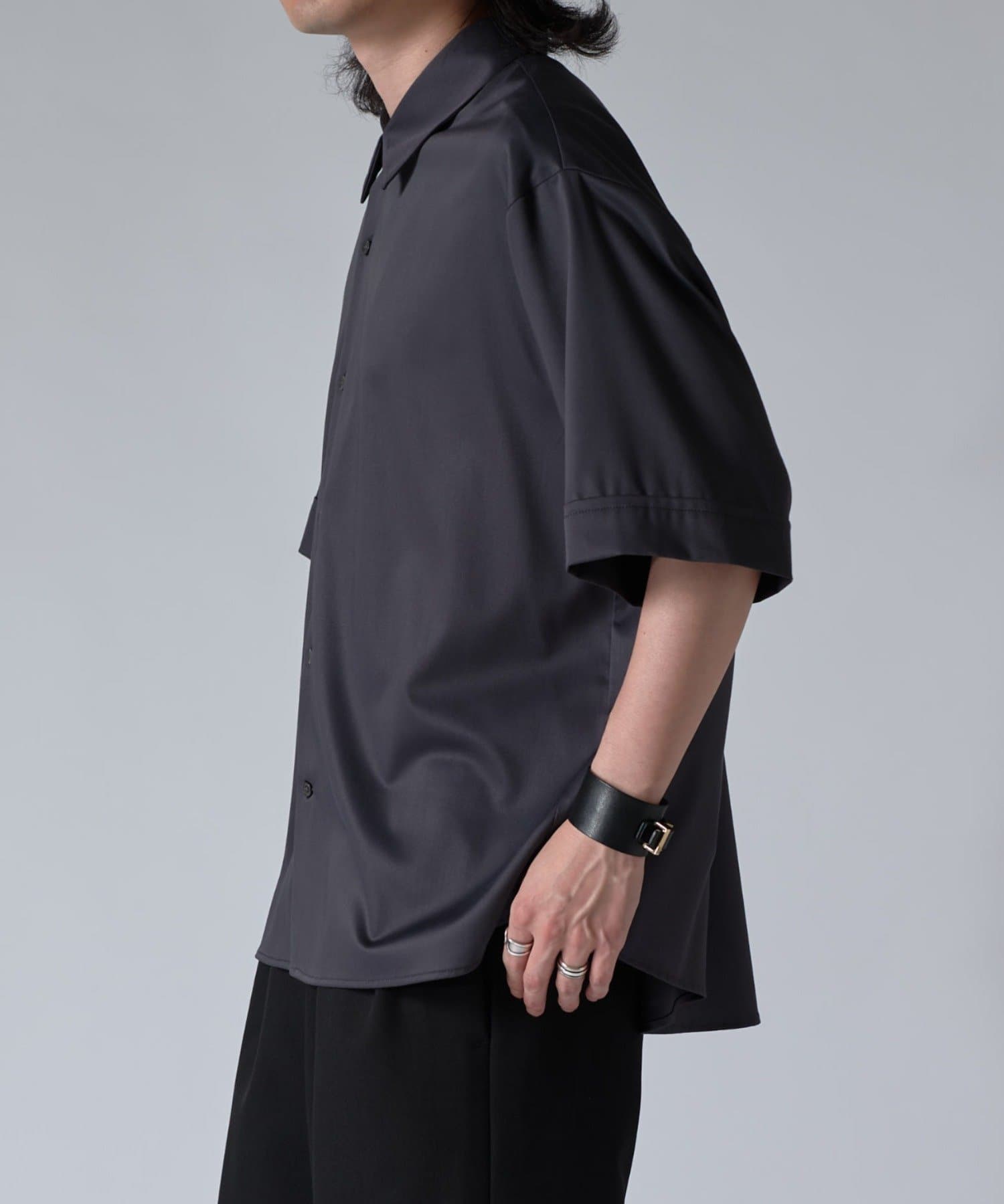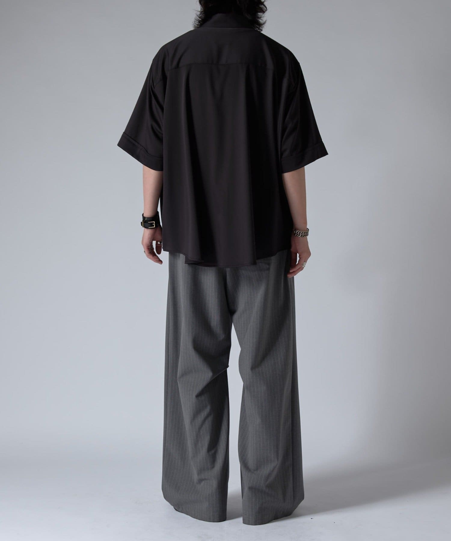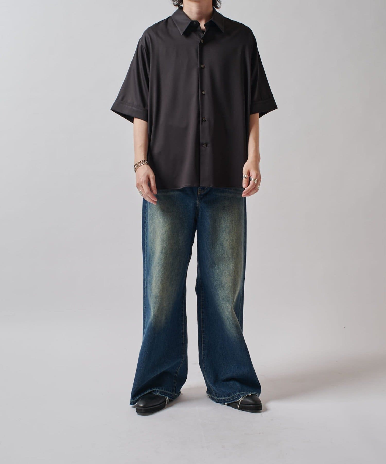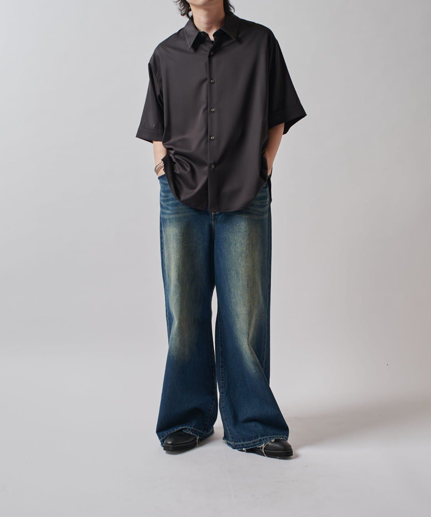 クリーンでミニマルな見た目のシャツなので、ワイドデニムやパラシュートパンツと組み合わせたキレイめカジュアルなスタイルがオススメ。